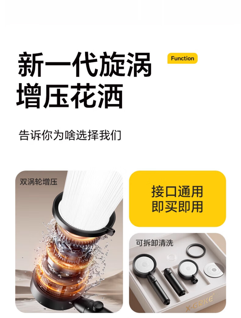 【甄选百货】通用淋浴花洒喷头增压大出水淋雨套装家用洗澡手持花 增压花洒【十年质保】 无规格