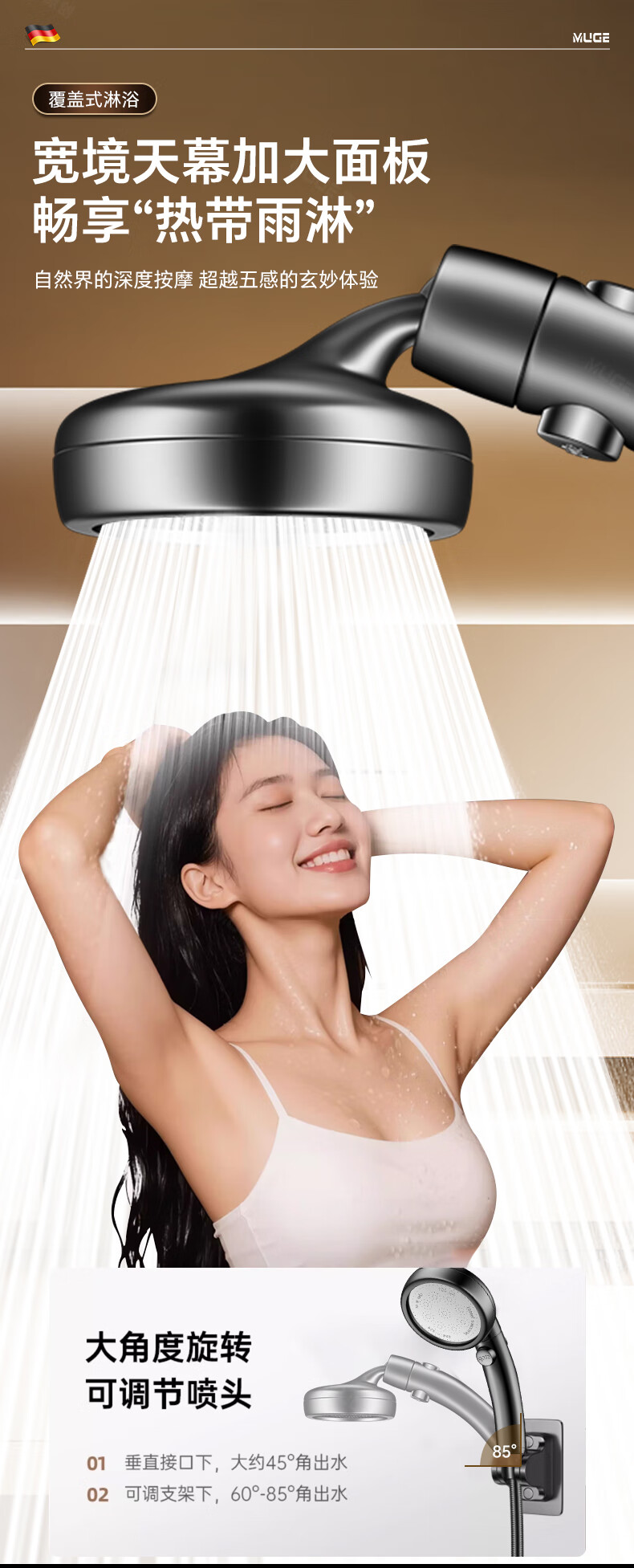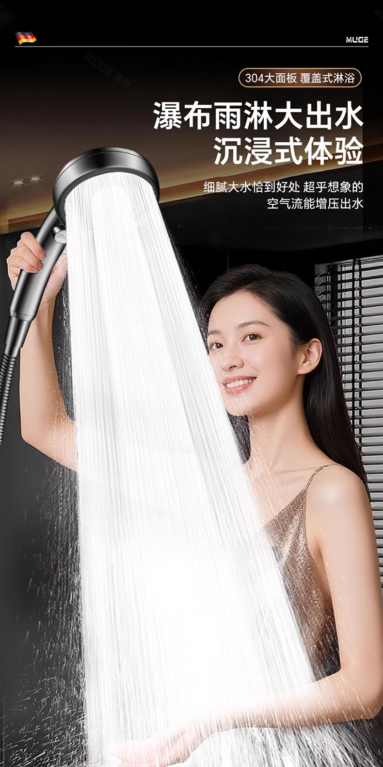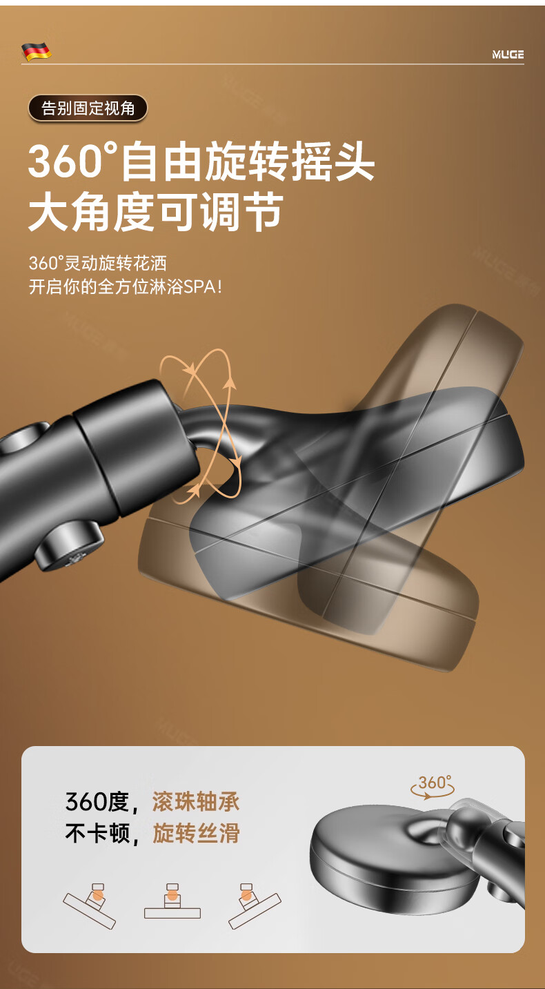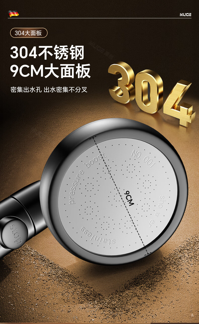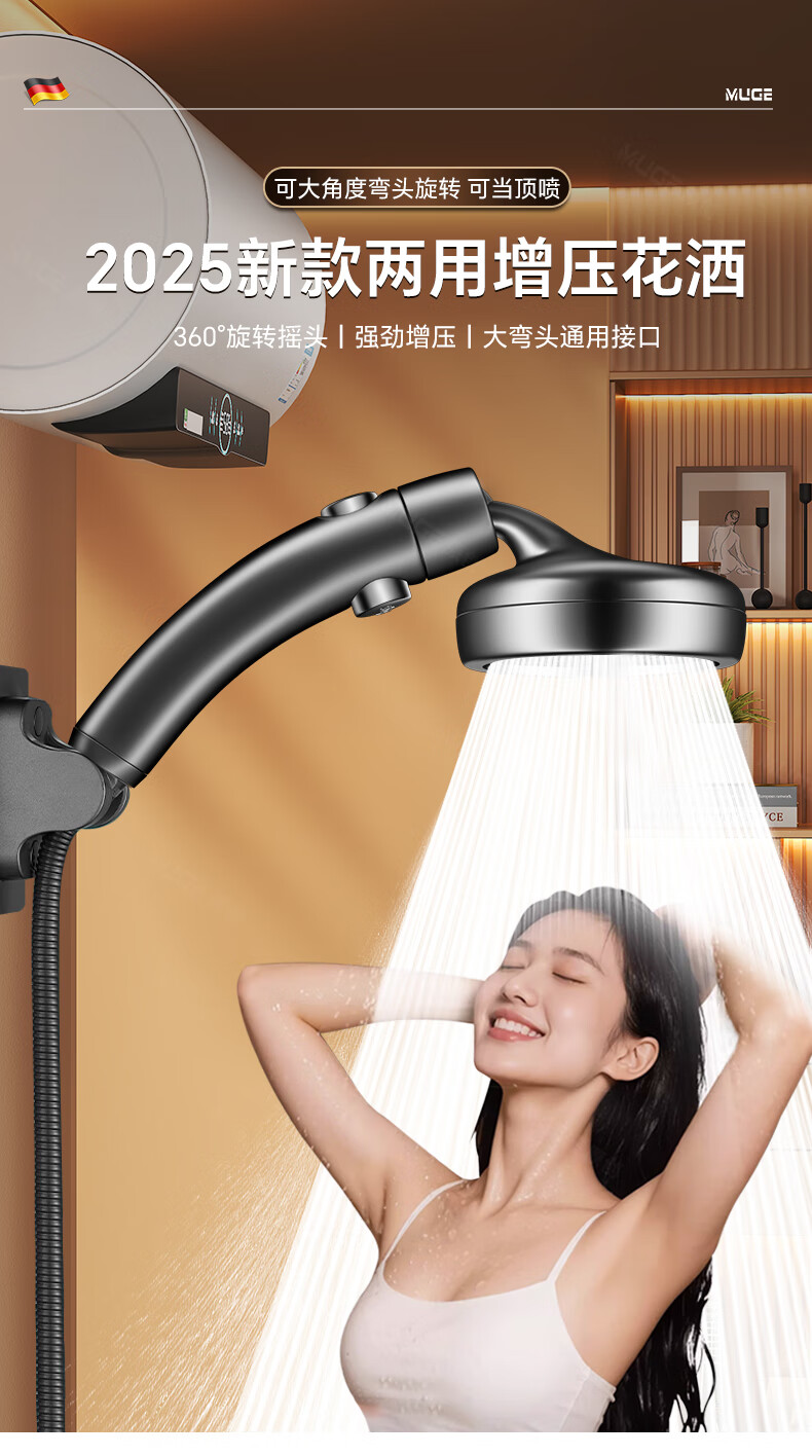 沐阁德国淋浴增压花洒喷头浴室浴霸通用高压淋雨莲蓬花洒头套装 升级款【轻奢灰】增压大出水|大水不刺痛|秒变顶喷