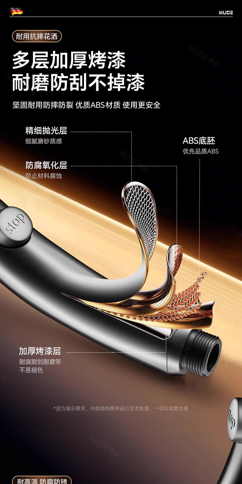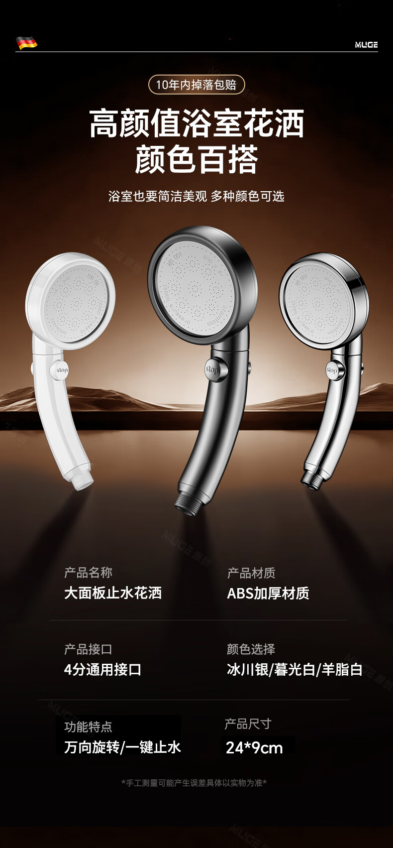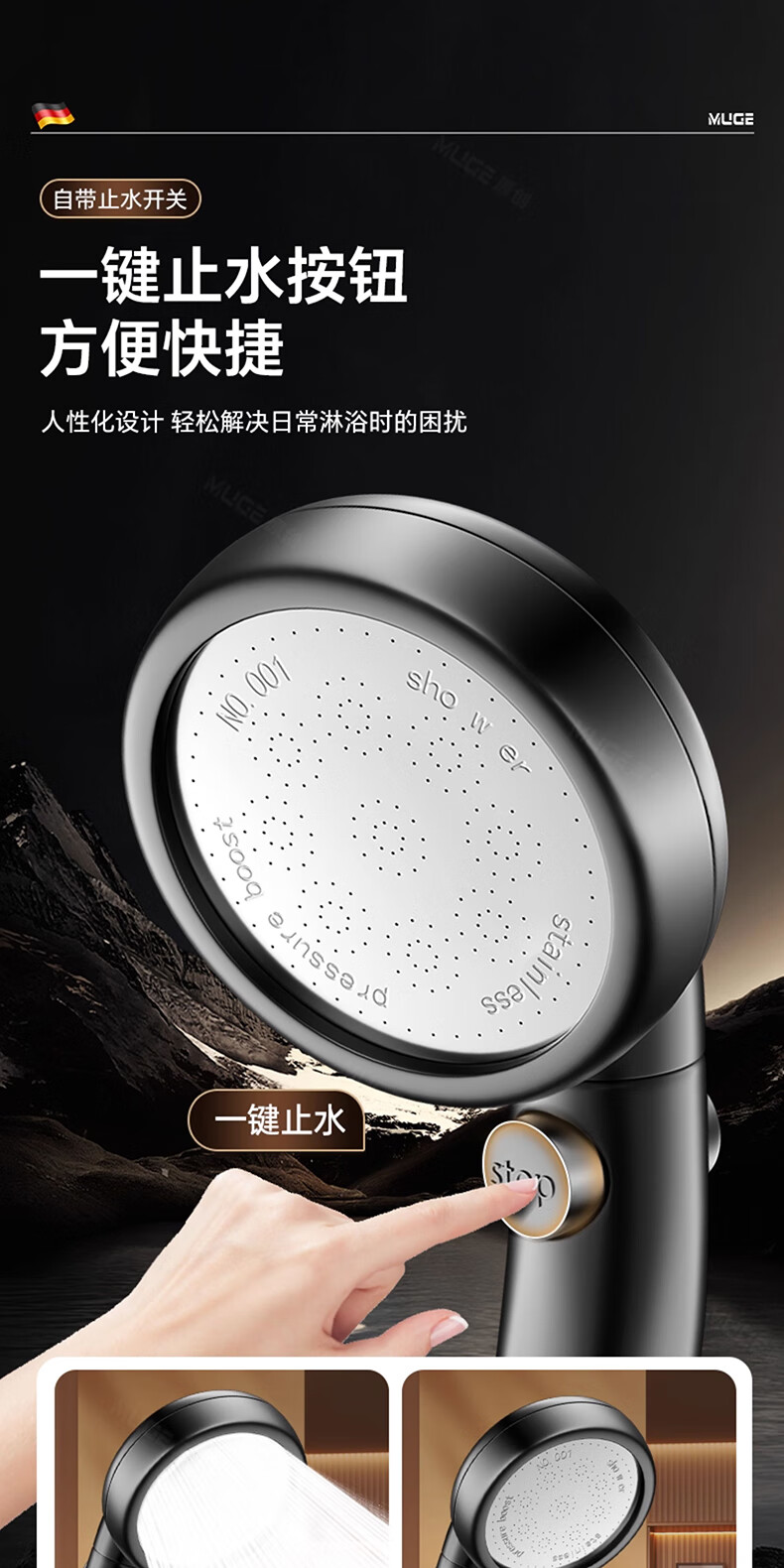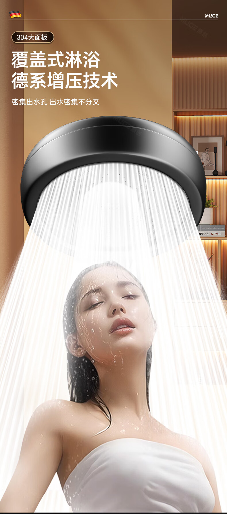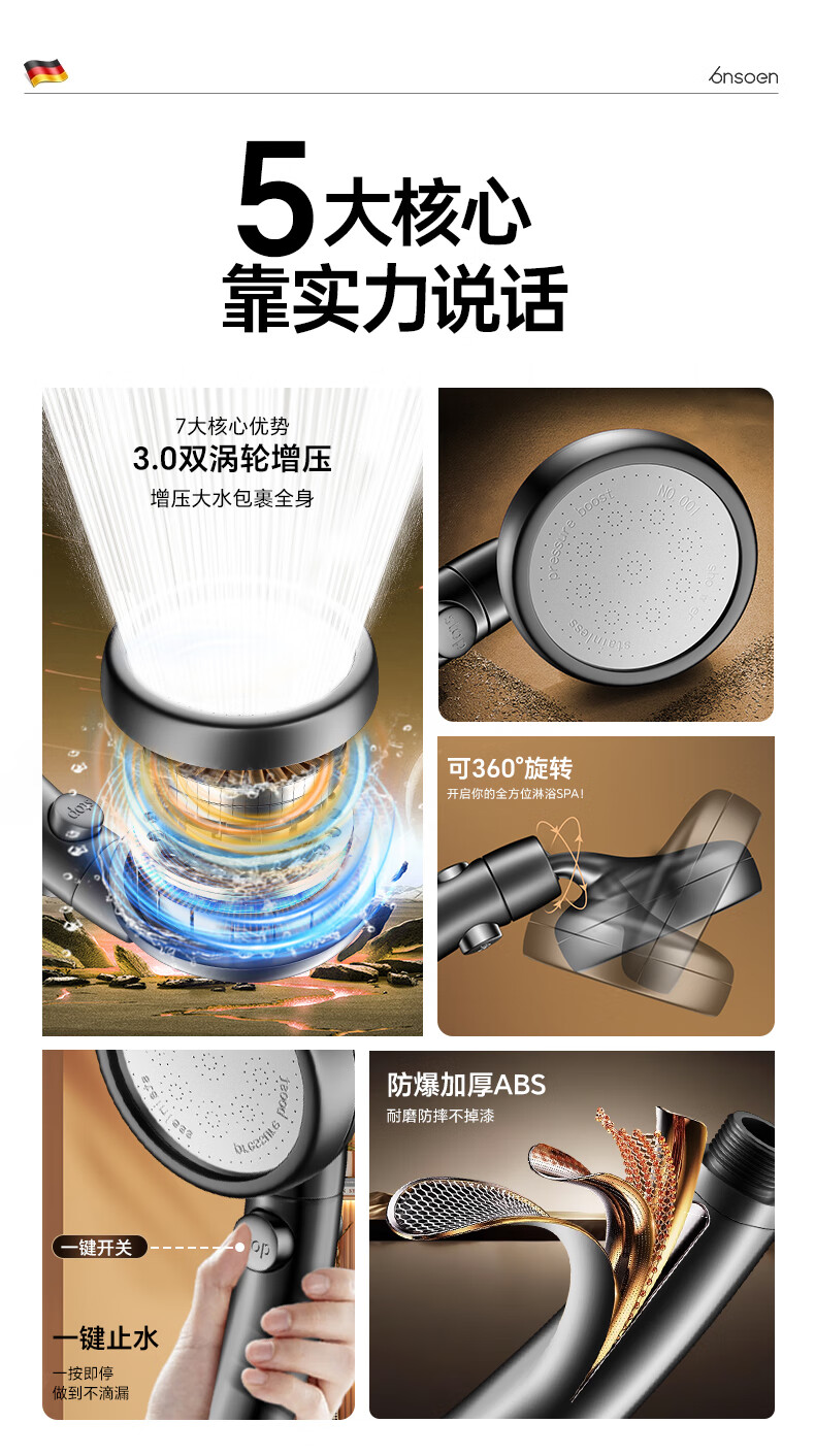 沐阁德国淋浴增压花洒喷头浴室浴霸通用高压淋雨莲蓬花洒头套装 升级款【轻奢灰】增压大出水|大水不刺痛|秒变顶喷