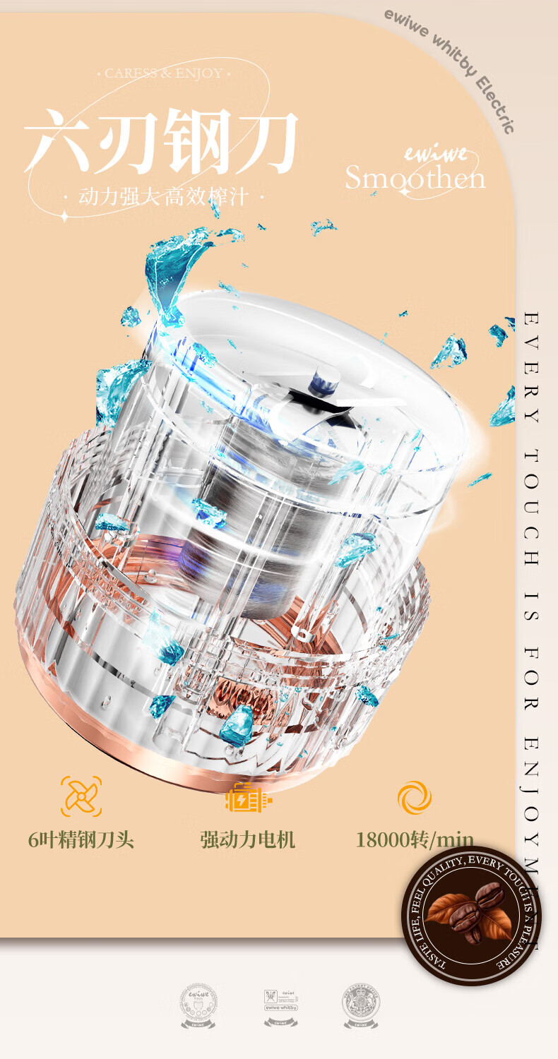 EWIWE榨汁杯小型便携式电动家用榨汁机无线充电新款多功能迷你水果汁机 榨汁杯/随行杯 月光白 充电款