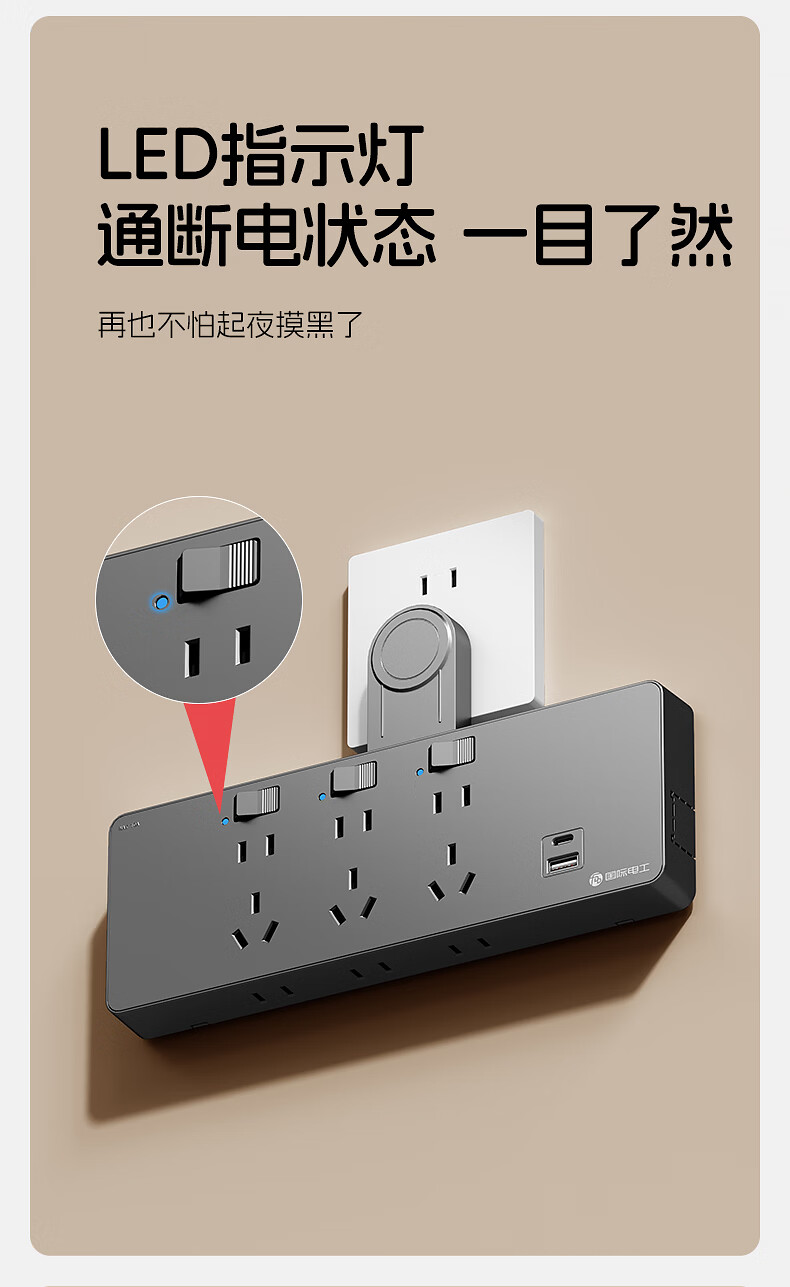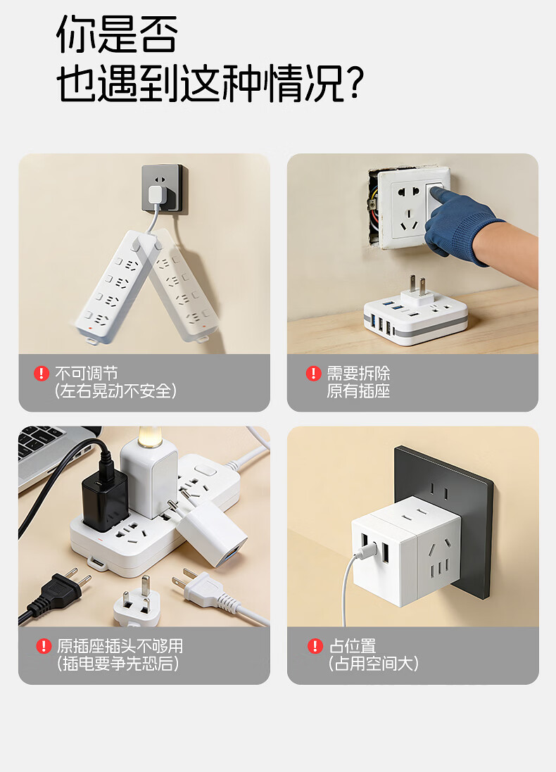国际电工扩展插座免接线多功能转换器升降调节排插35W快充USB+C电源插座 白色35W快充USB+C【向左扩展】三开21孔