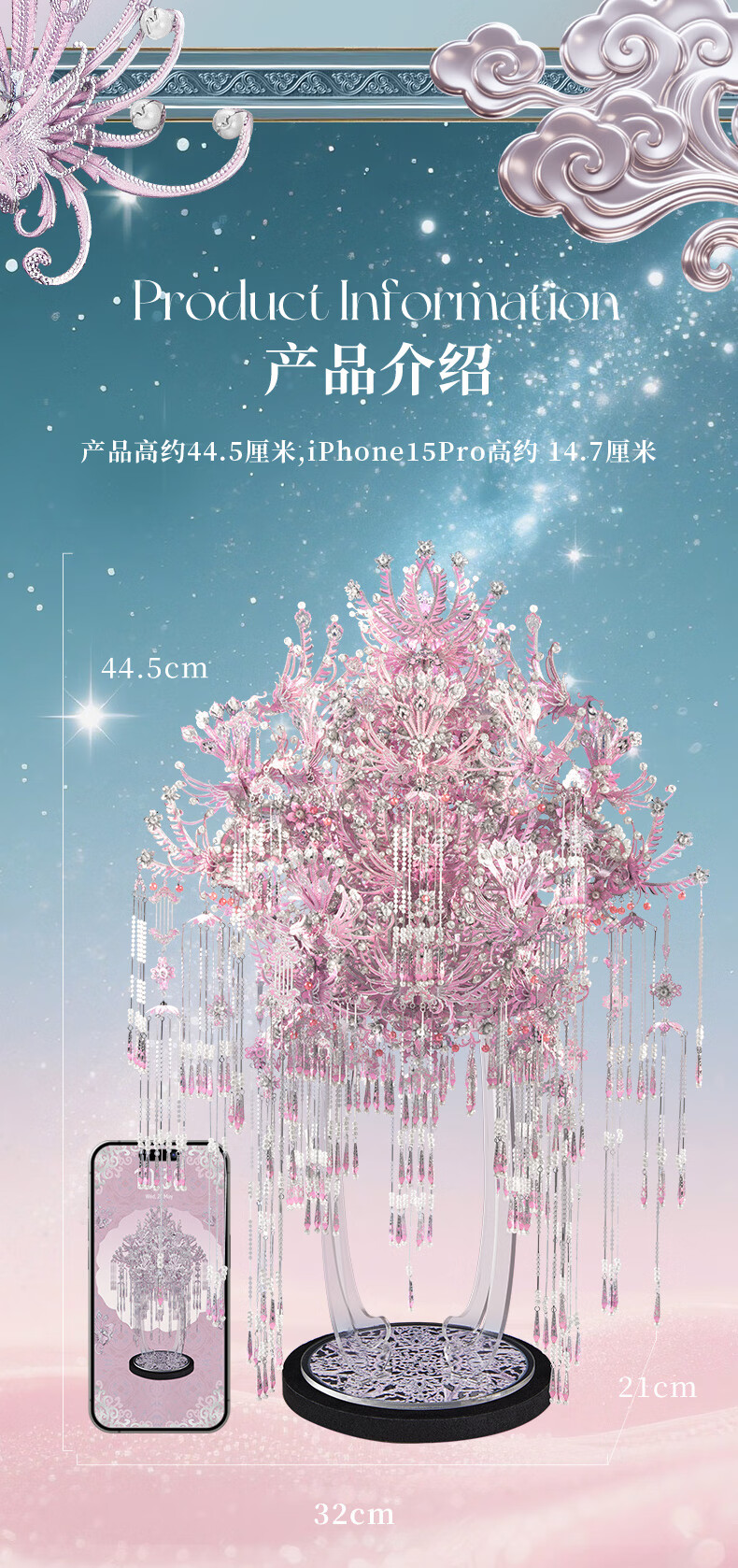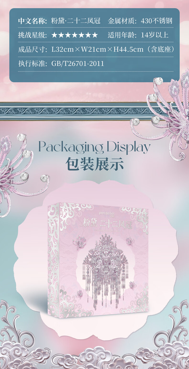 拼酷(piececool)粉黛二十二凤冠 粉冠粉红色凤冠3D立体拼图 生日结婚情人节礼物