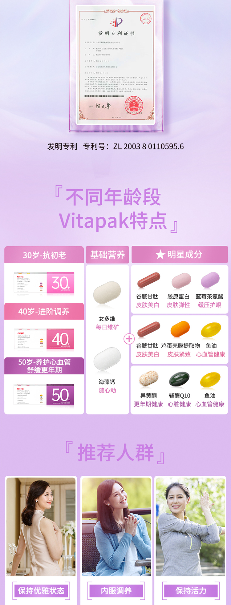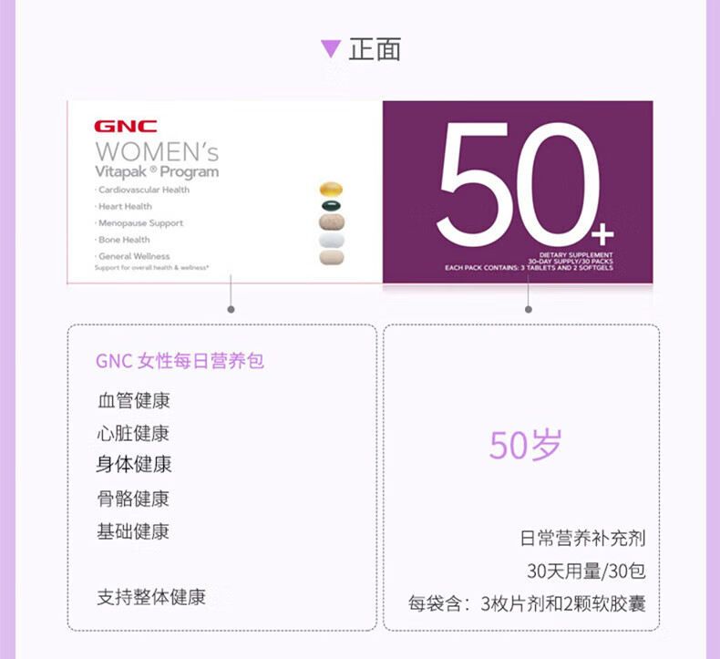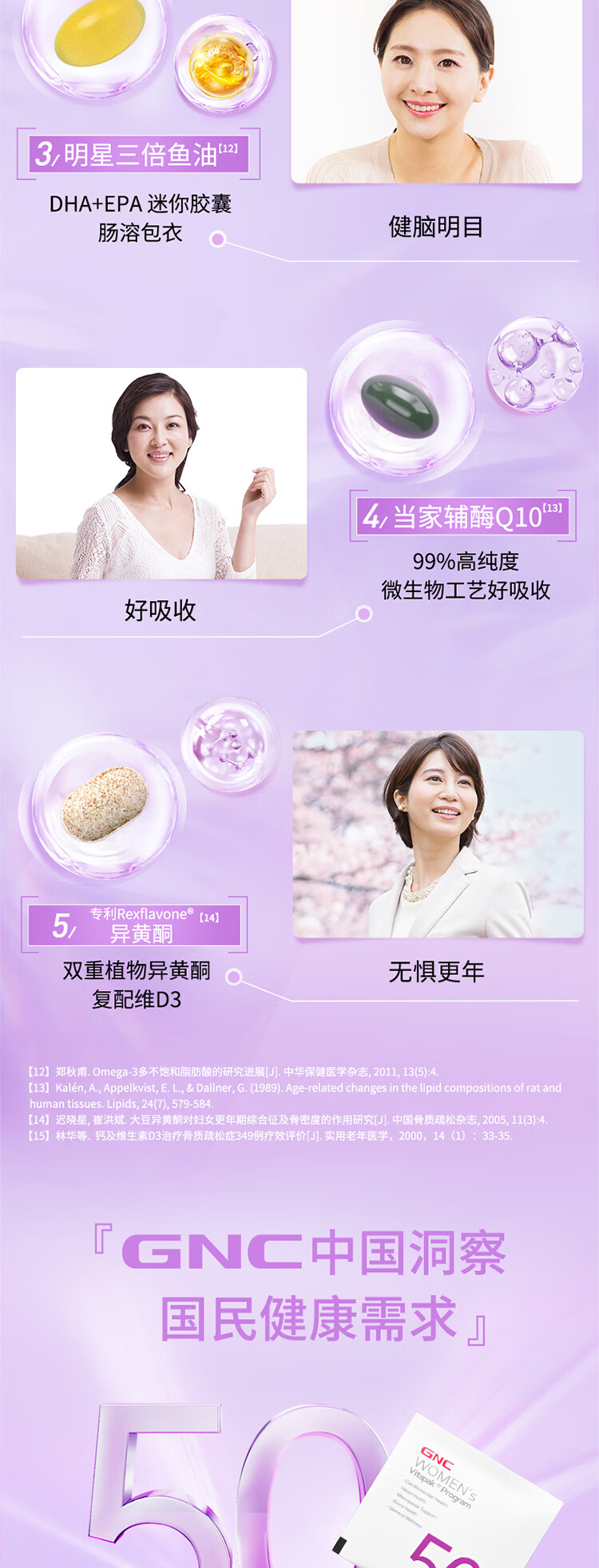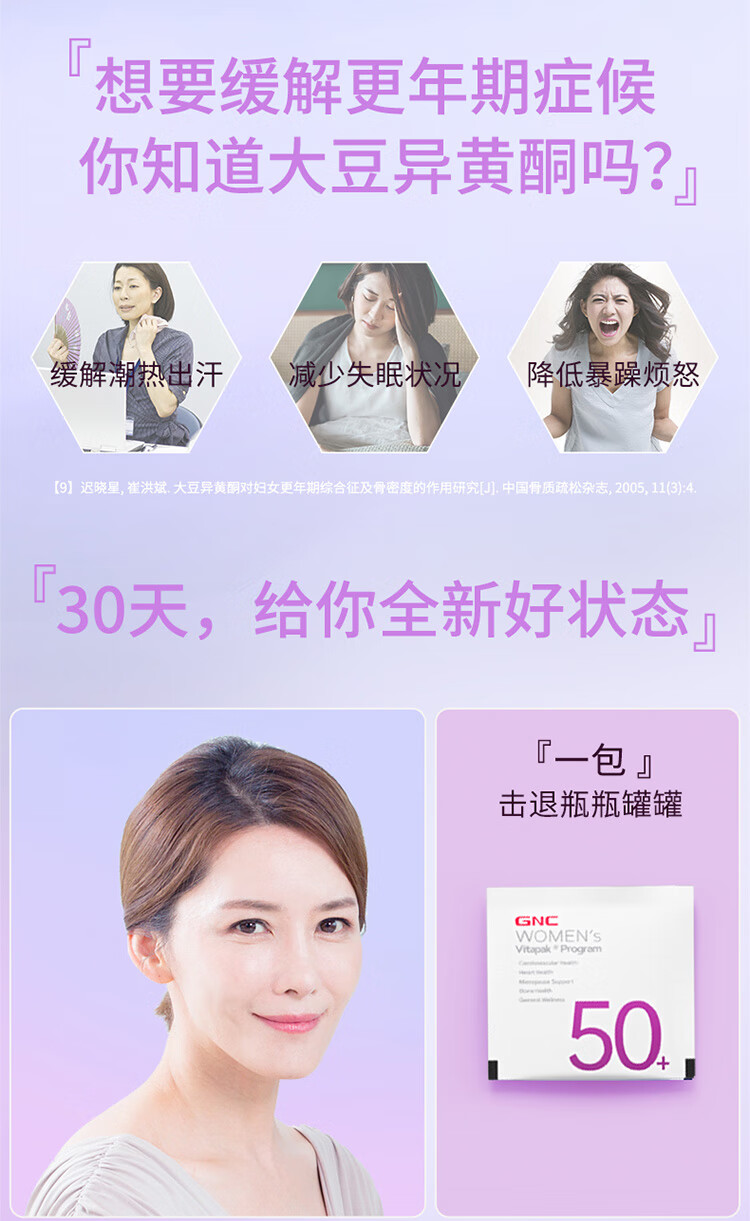 GNC健安喜女士营养包50+中老年复合维生素VD3辅酶大豆异黄酮30袋/盒