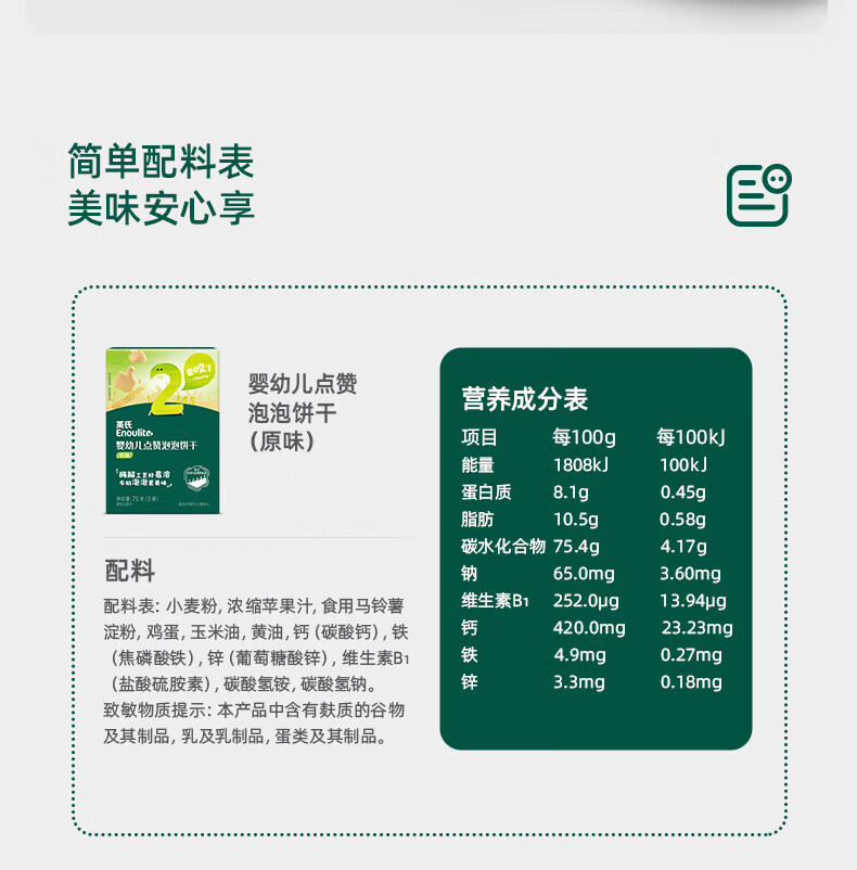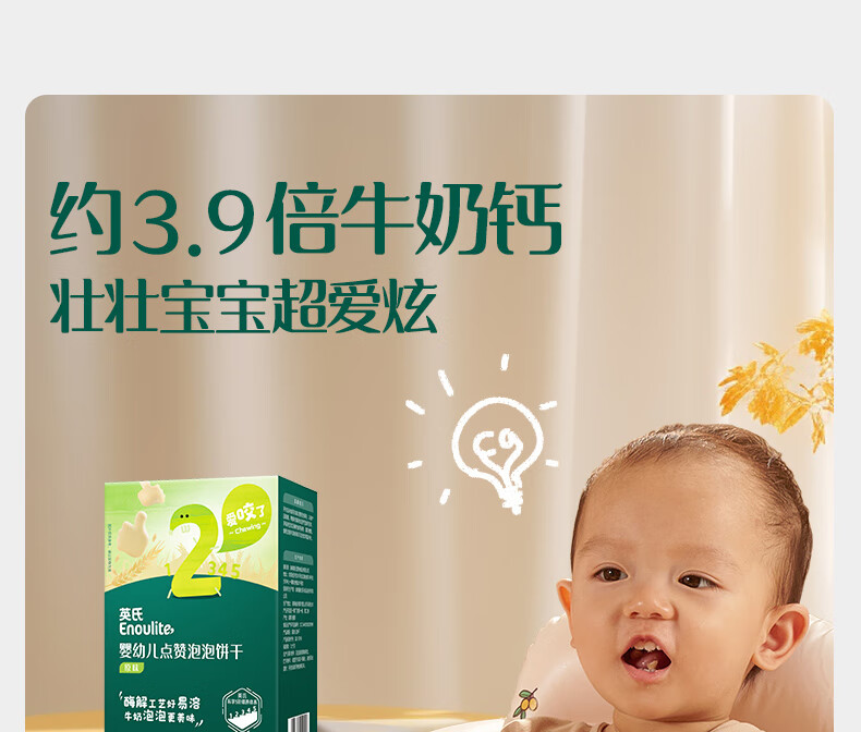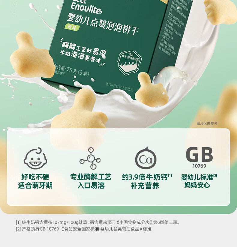 英氏(Engnice)婴幼儿点赞泡泡饼干原味 宝宝婴儿零食辅食牛奶钙磨牙饼干75g