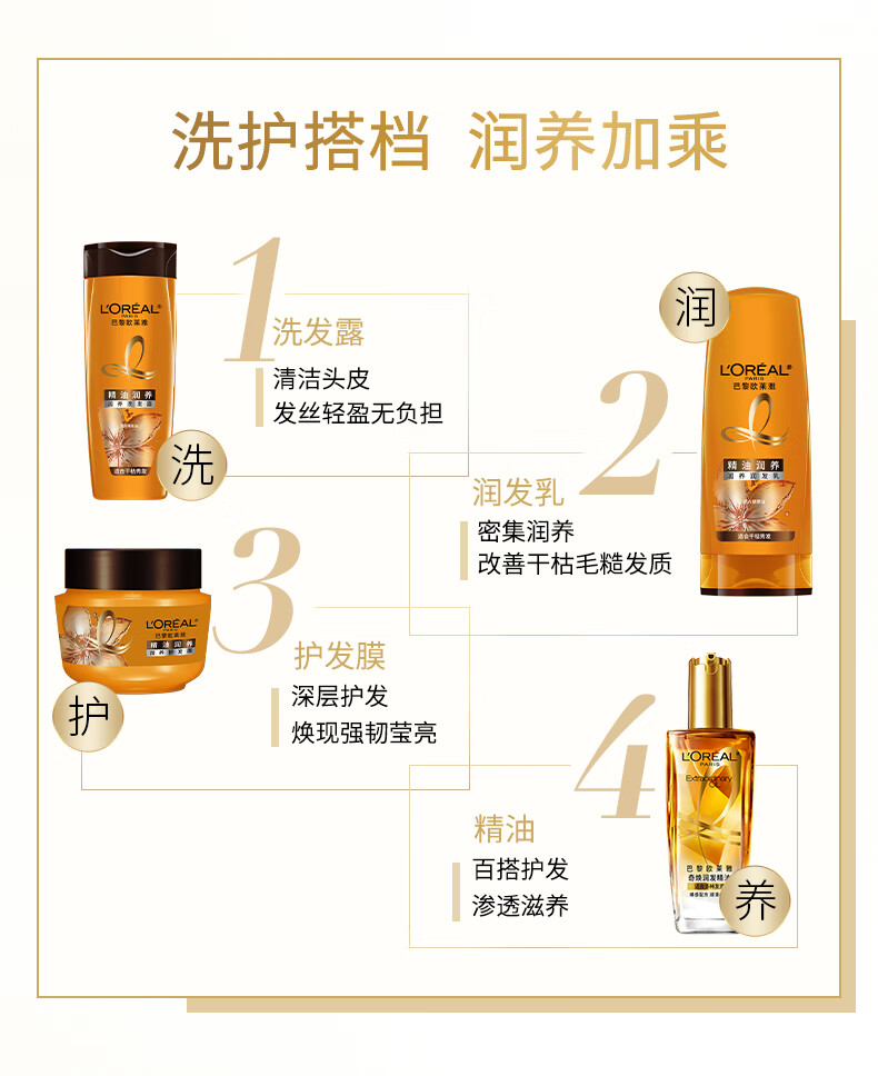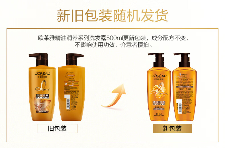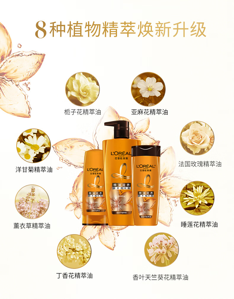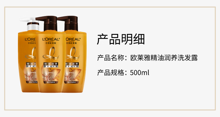 欧莱雅精油润养洗发水柔顺顺滑滋润头发洗发露洗护套装500ml*3