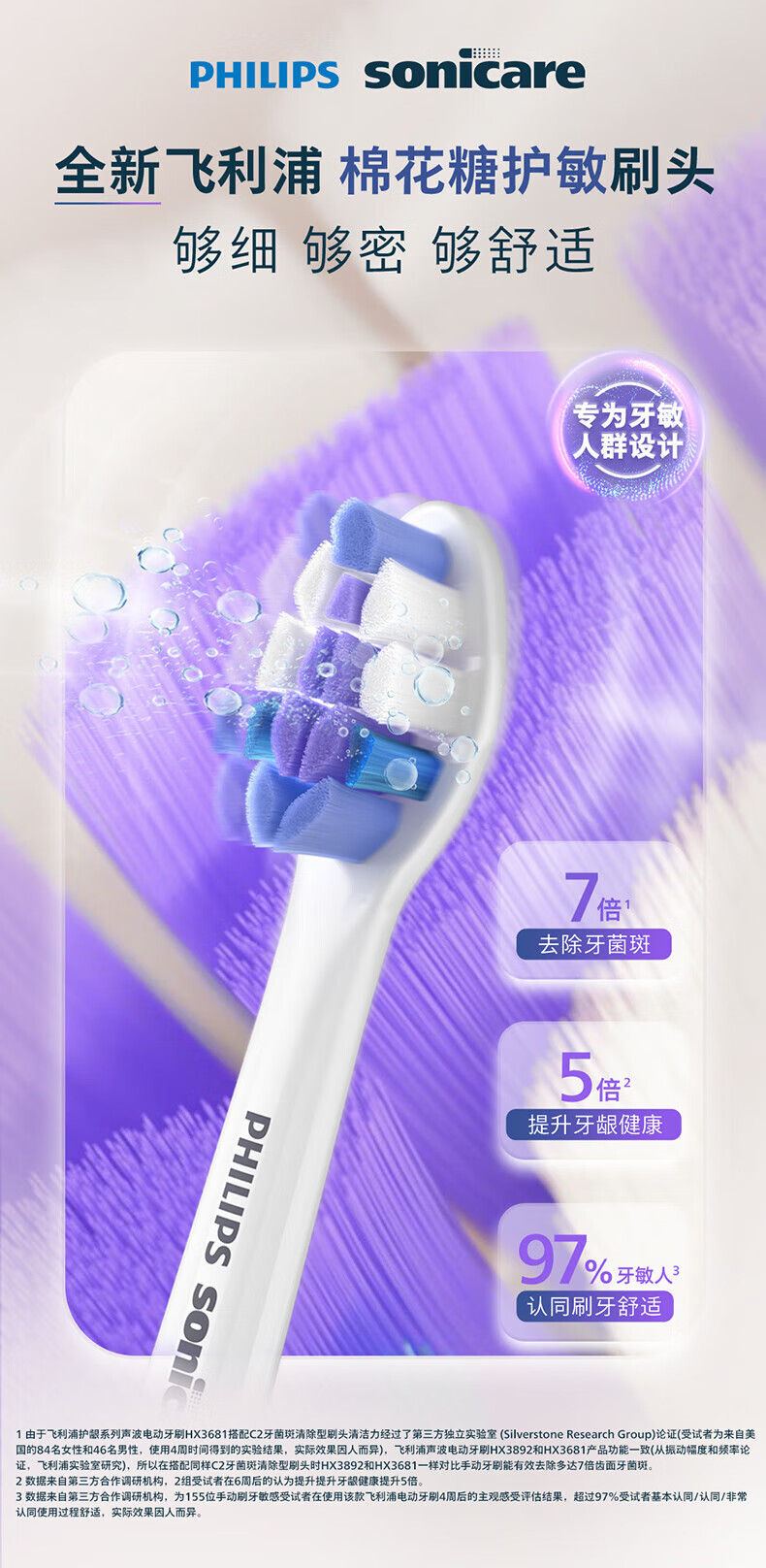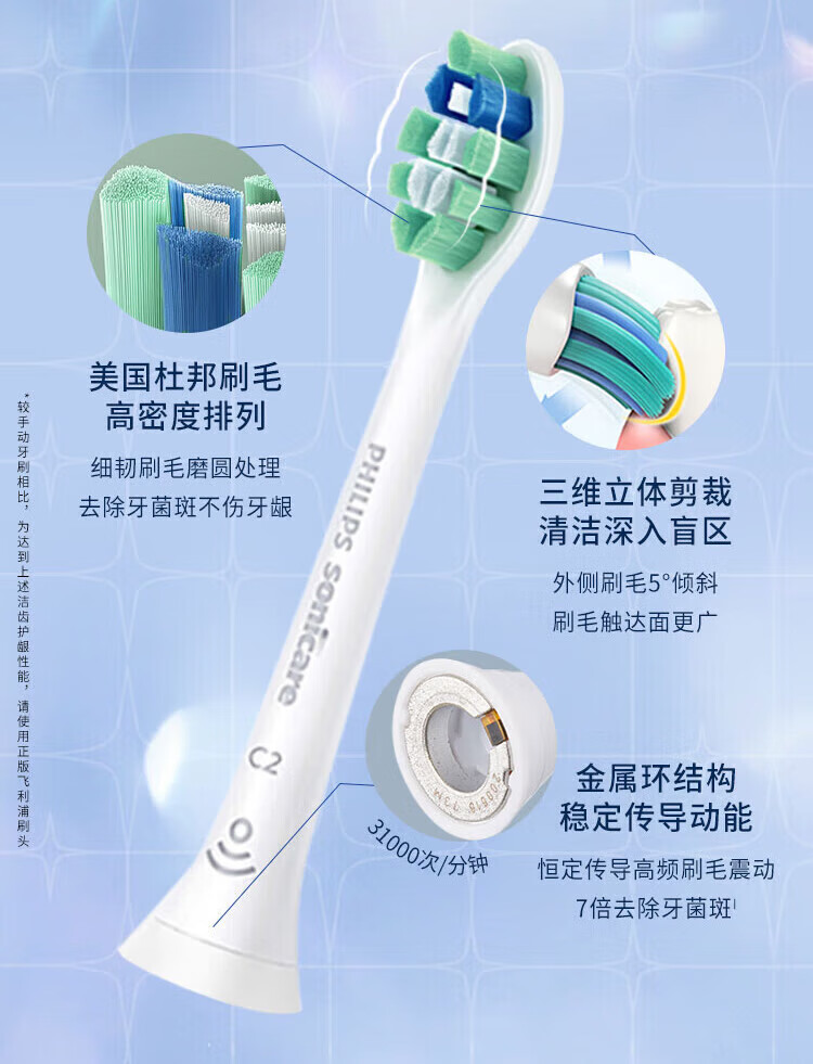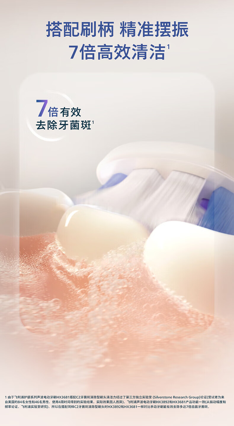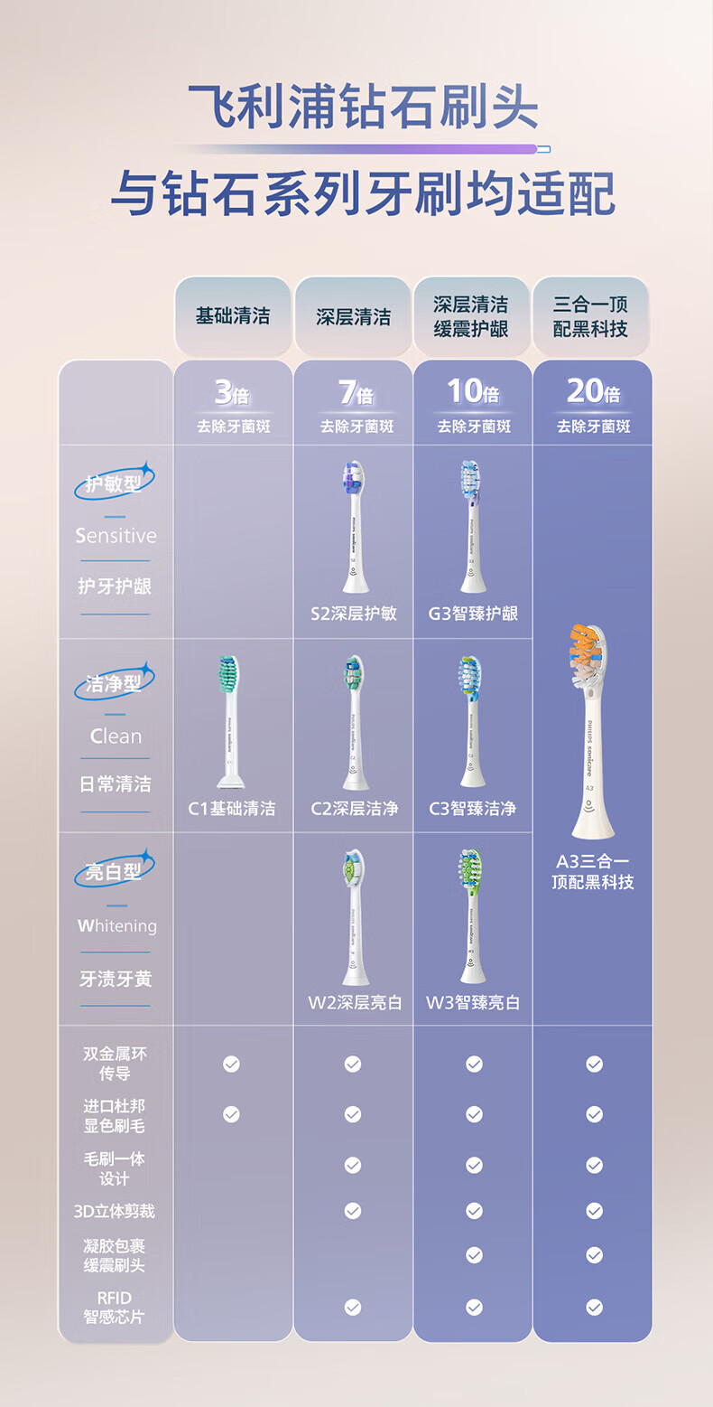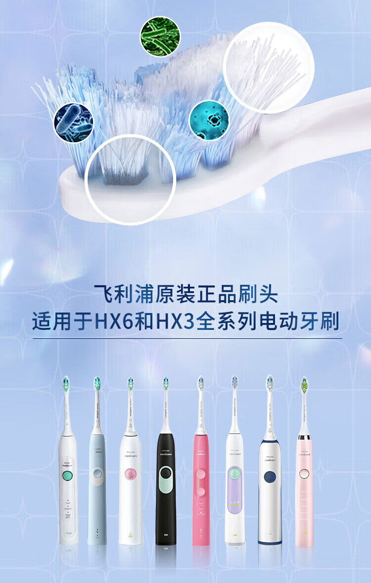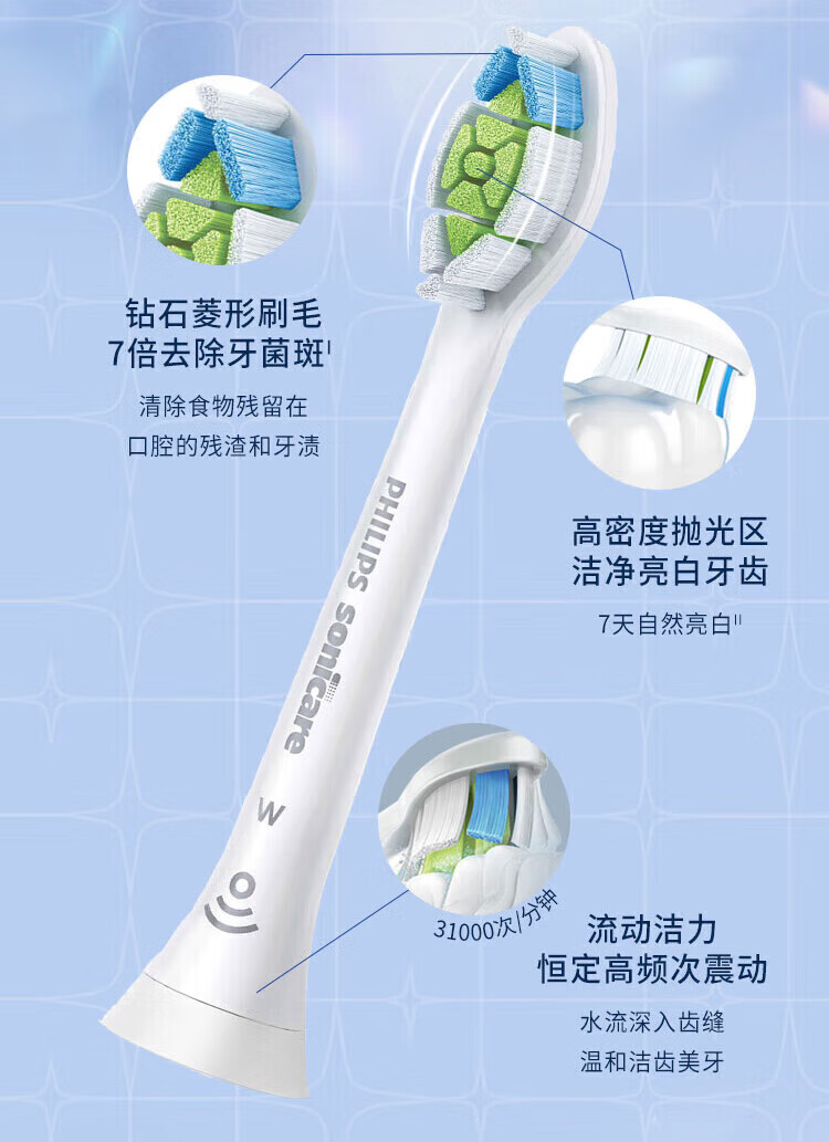飞利浦(PHILIPS)电动牙刷头 基础清洁 亮白 护龈 清除牙菌斑 杜邦进口刷毛 适配HX3系列HX6系列HX9系列 3支 牙菌斑防御型 3支拆盒 HX9023/67