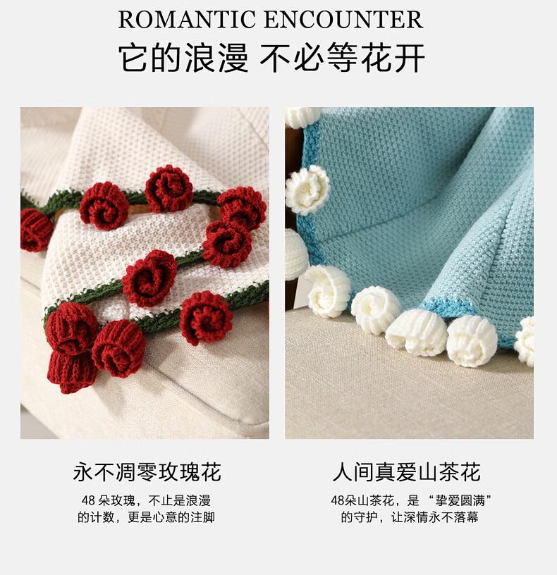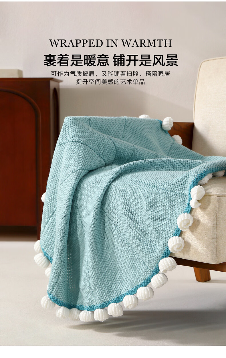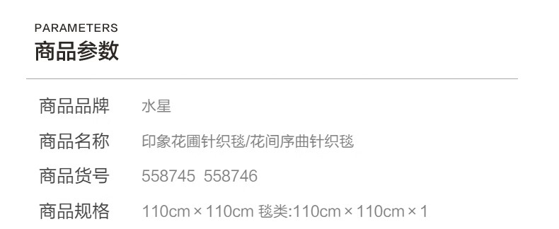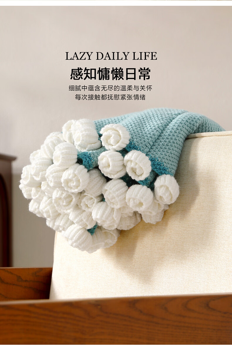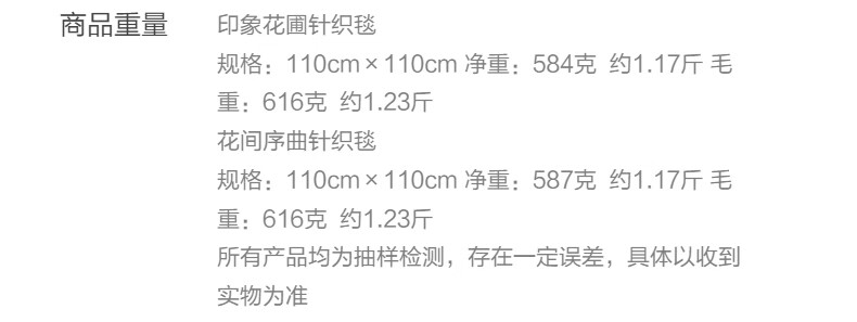 水星家纺印象花圃针织毯/花间序曲针织毯 印象花圃针织毯(挪威蓝) 110cm×110cm