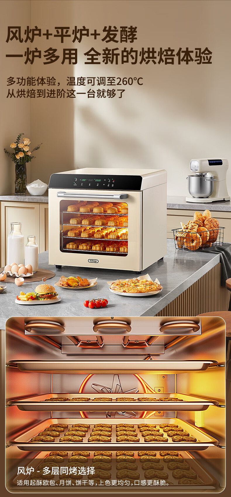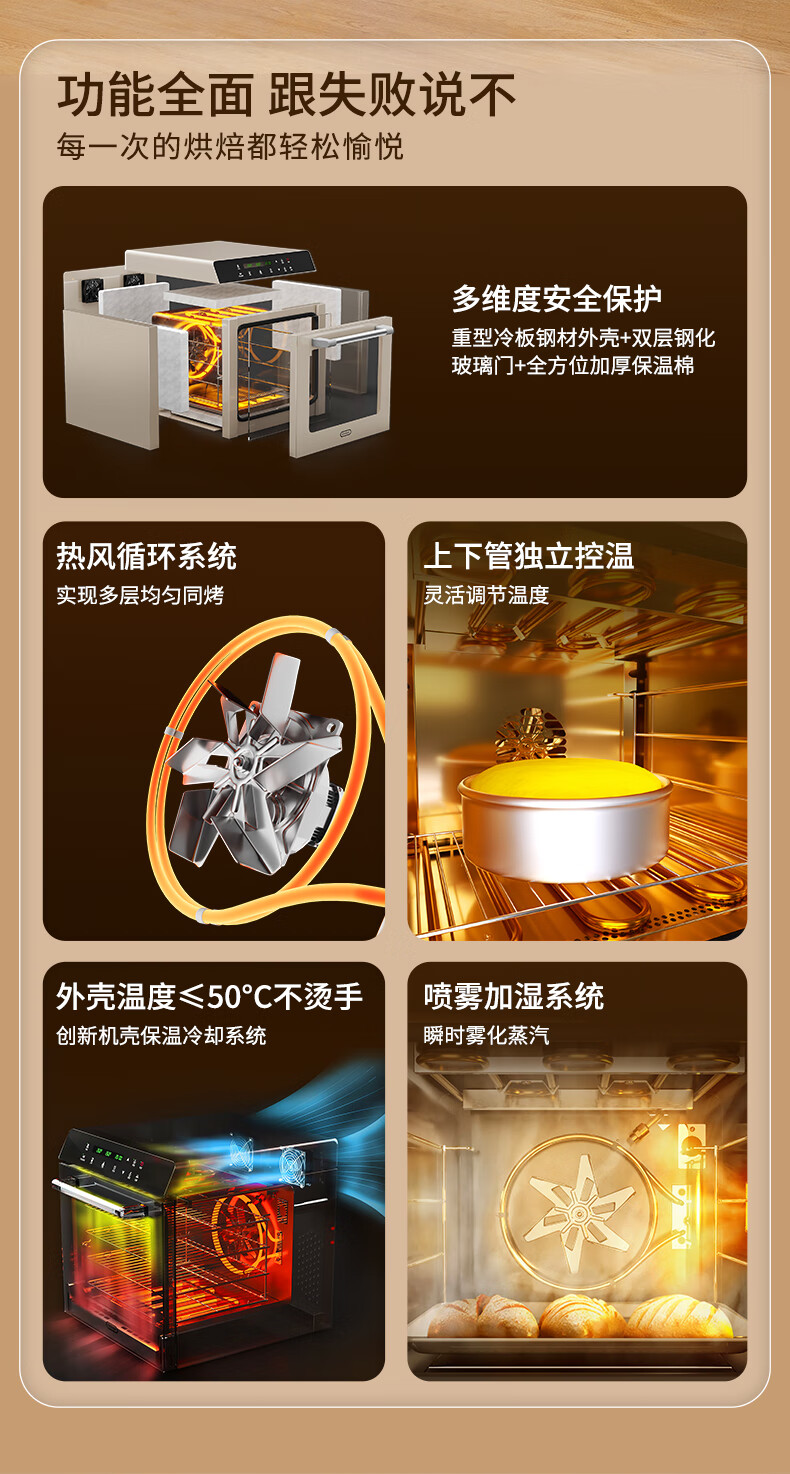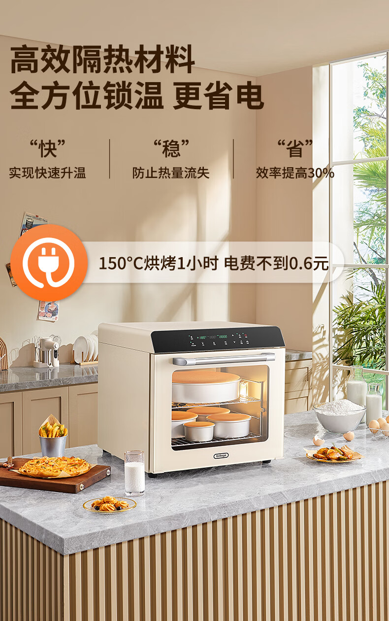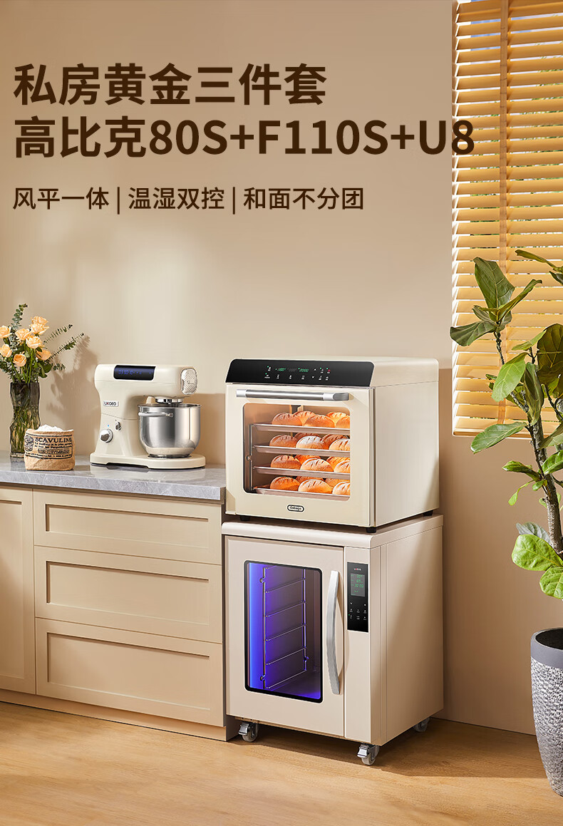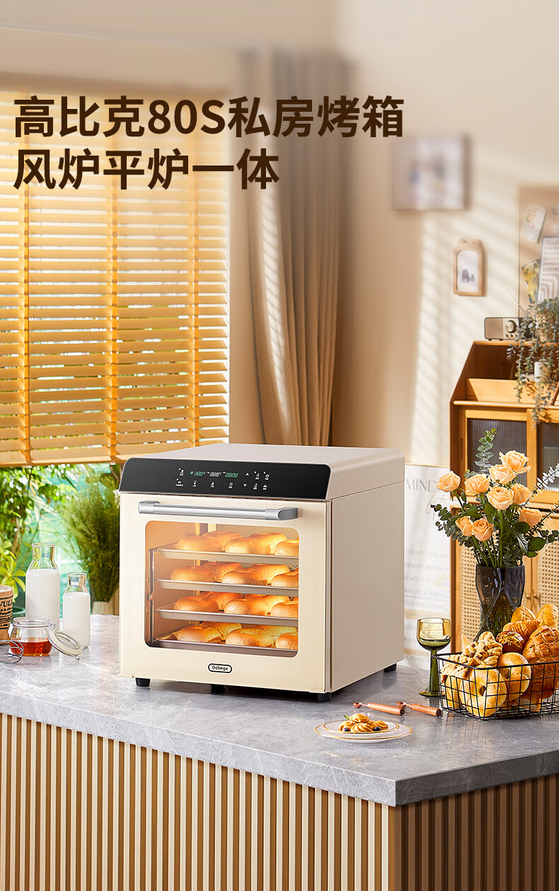 高比克(UKOEO)80S风平一体家用烤箱私房烘焙大容量独立温控不锈钢内胆米白色56L
