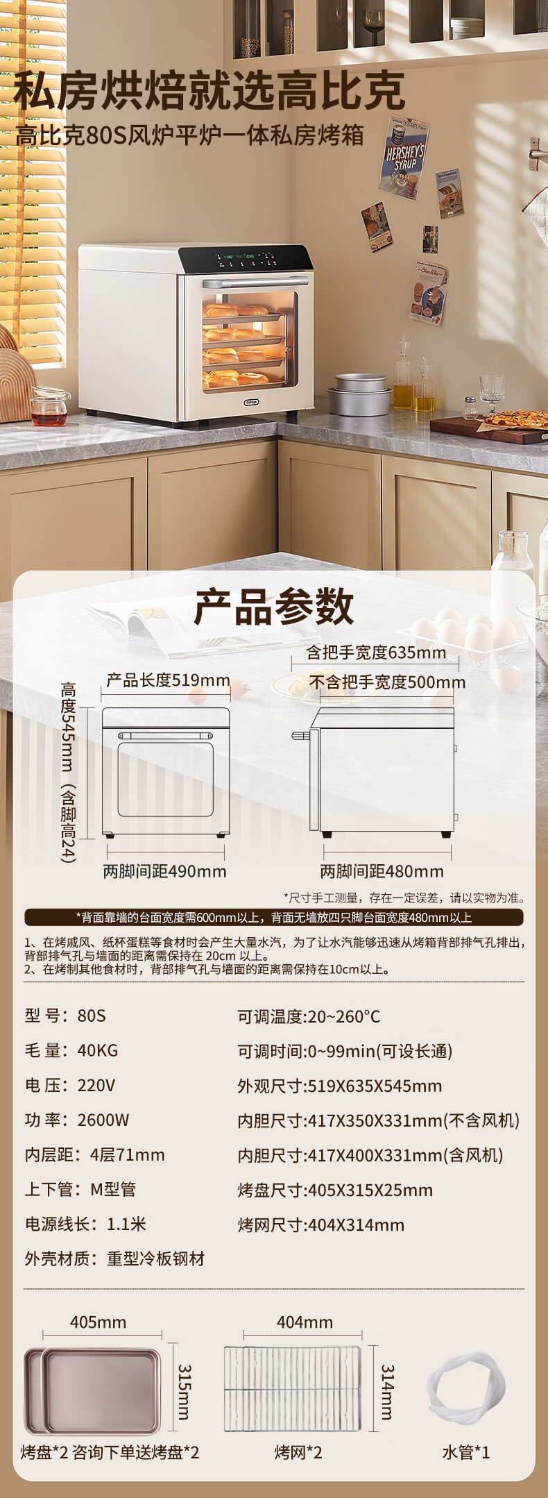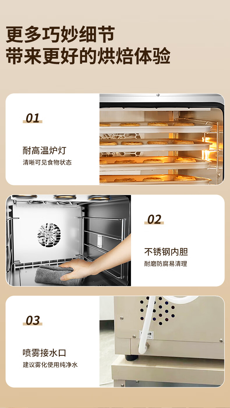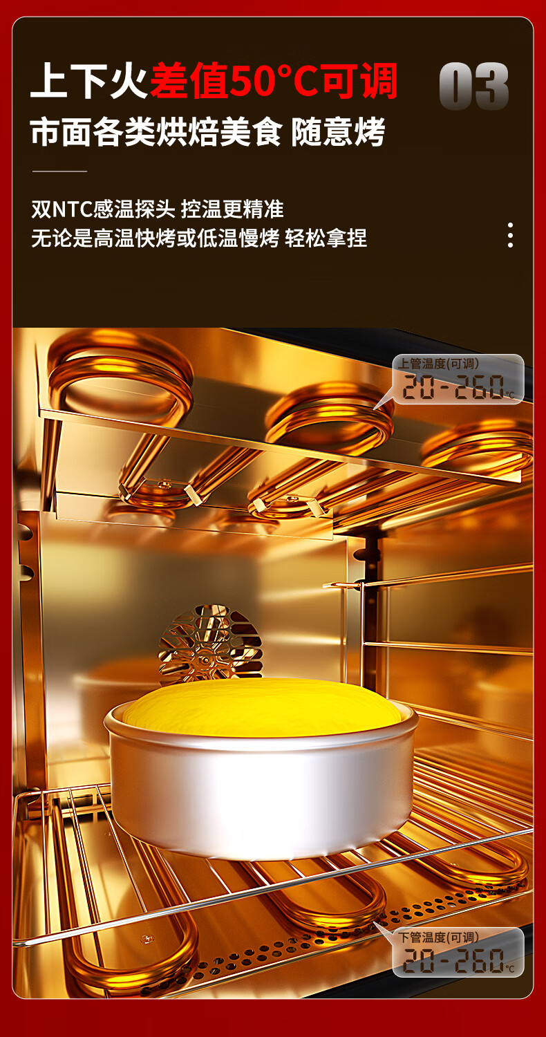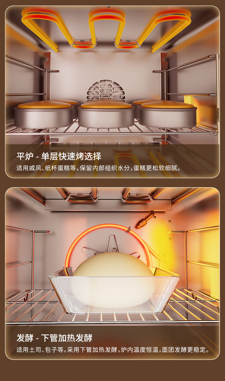 高比克(UKOEO)80S风平一体家用烤箱私房烘焙大容量独立温控不锈钢内胆米白色56L