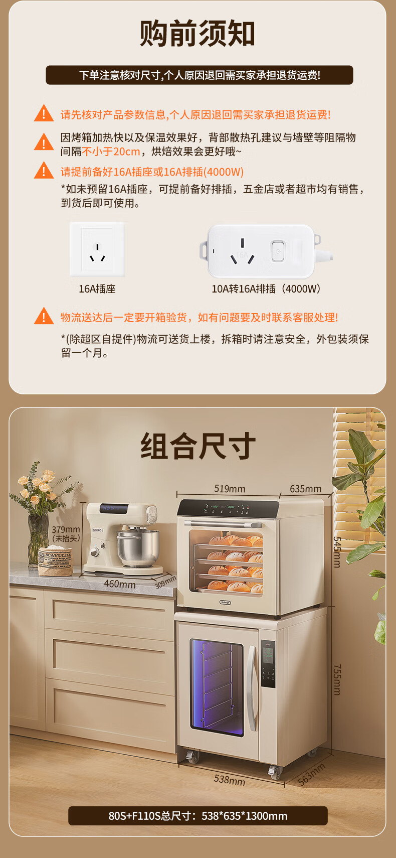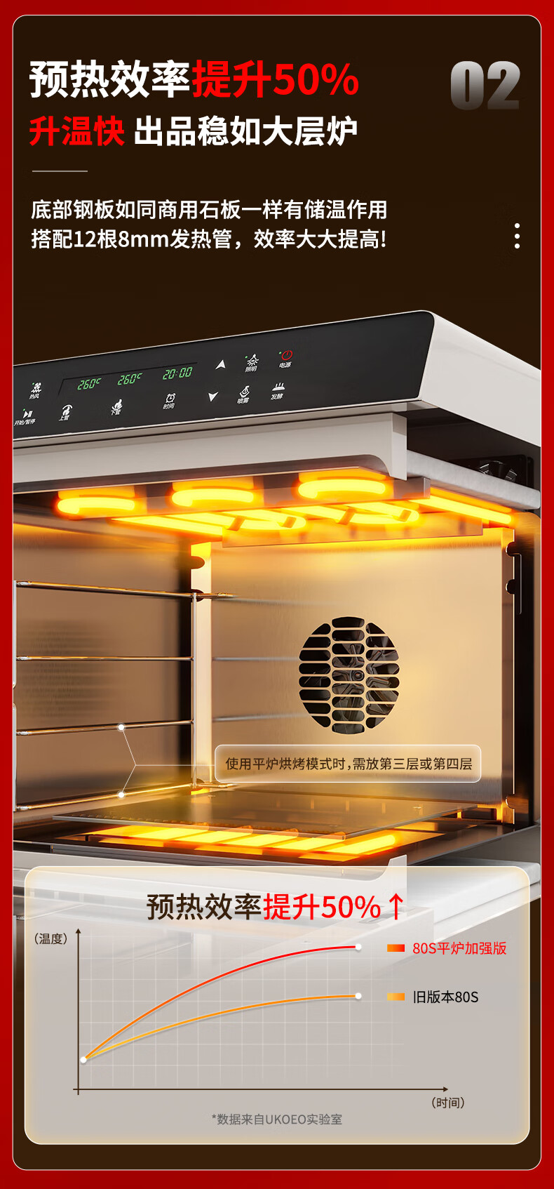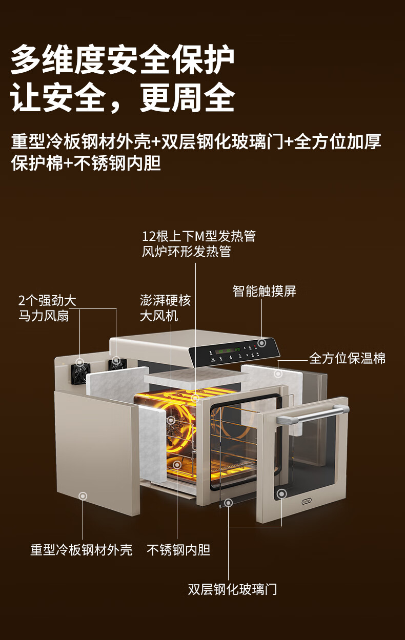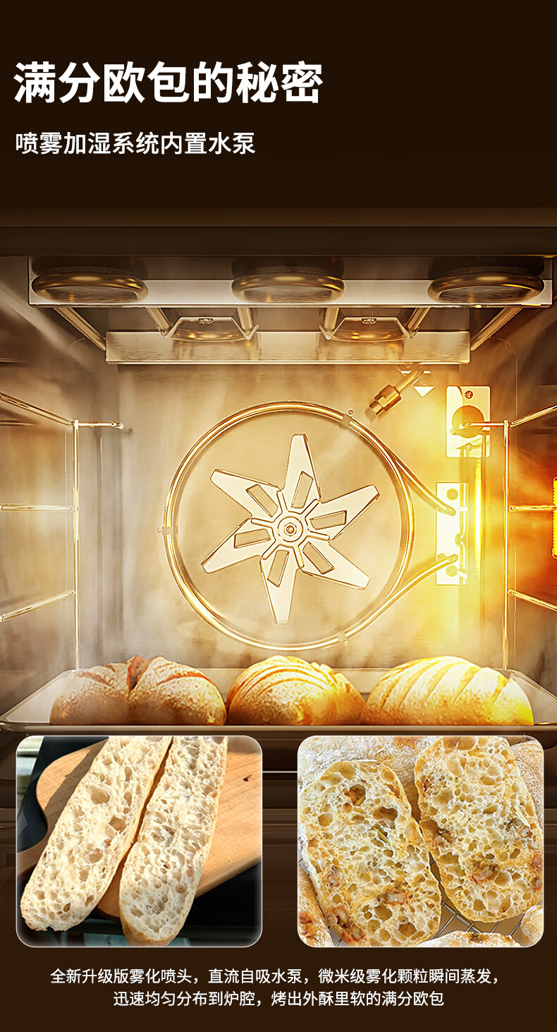 高比克(UKOEO)80S风平一体家用烤箱私房烘焙大容量独立温控不锈钢内胆米白色56L