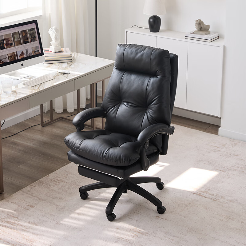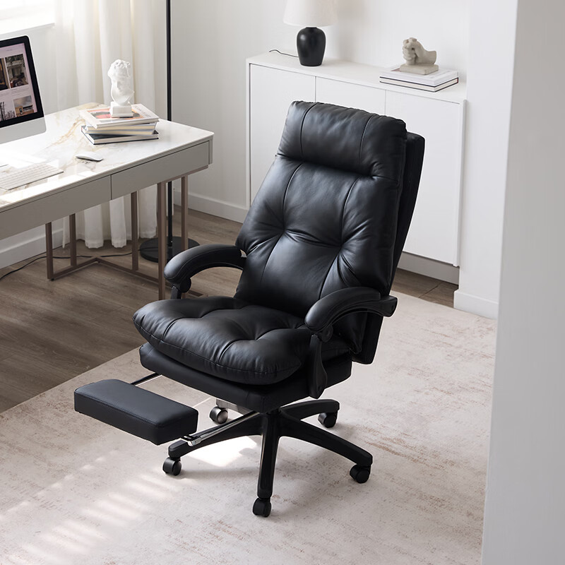 顾家家居老板椅舒适弹簧包久坐人体工学椅午休可躺电脑椅家用办公书房椅子 经典黑 猫抓皮 弹簧包座垫