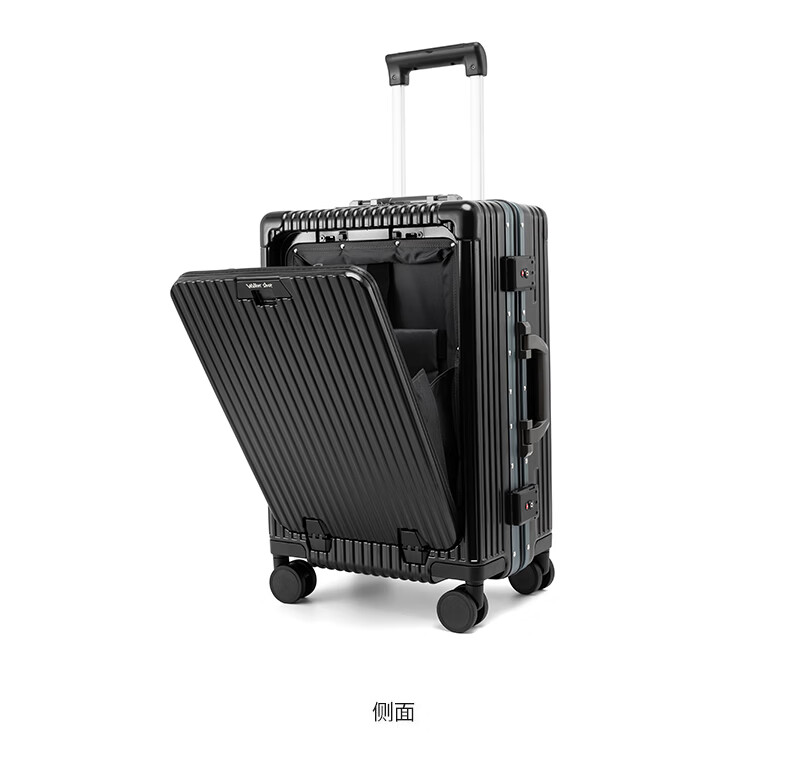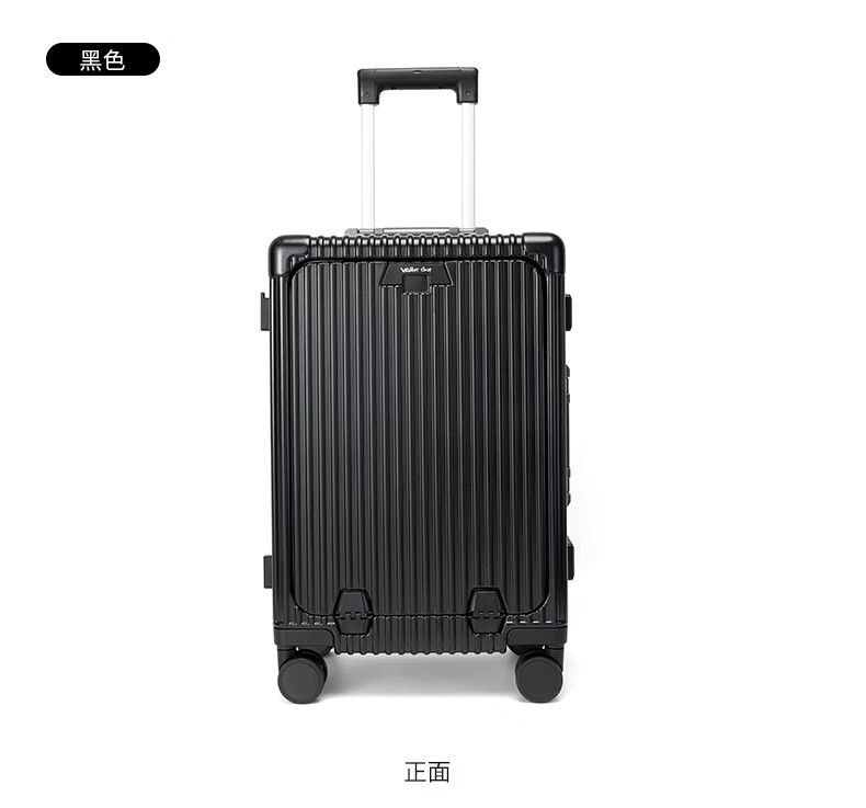 Walker Shop行李箱2026新款前开盖登机拉杆箱结实耐用多功能旅行箱 黑色 【前开盖+杯架+刹车轮】 20英寸 【现货直发/登机箱】