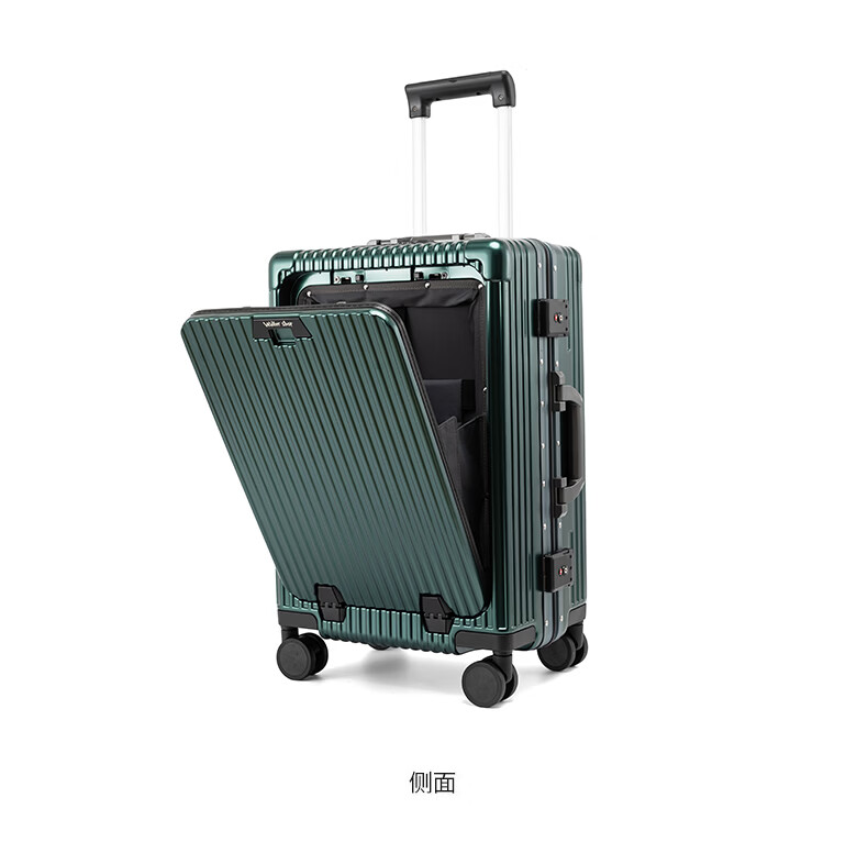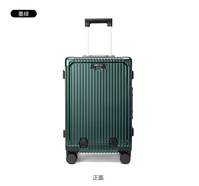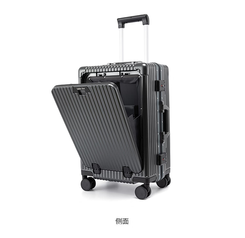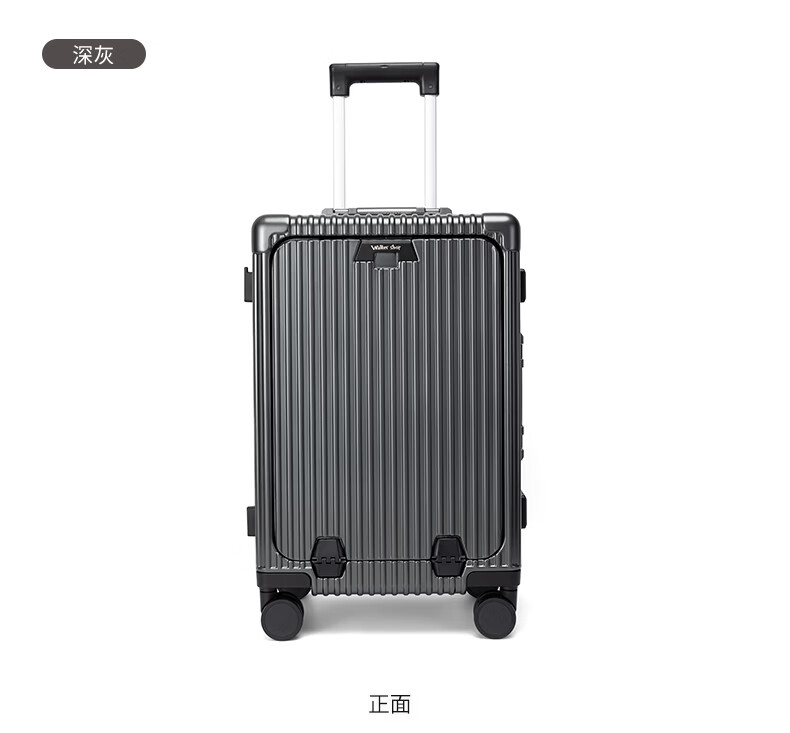 Walker Shop轻奢品牌登机箱铝框拉杆箱小型轻便商务旅行箱前置开口行李箱子 深灰色 20英寸 【竖版登机箱】