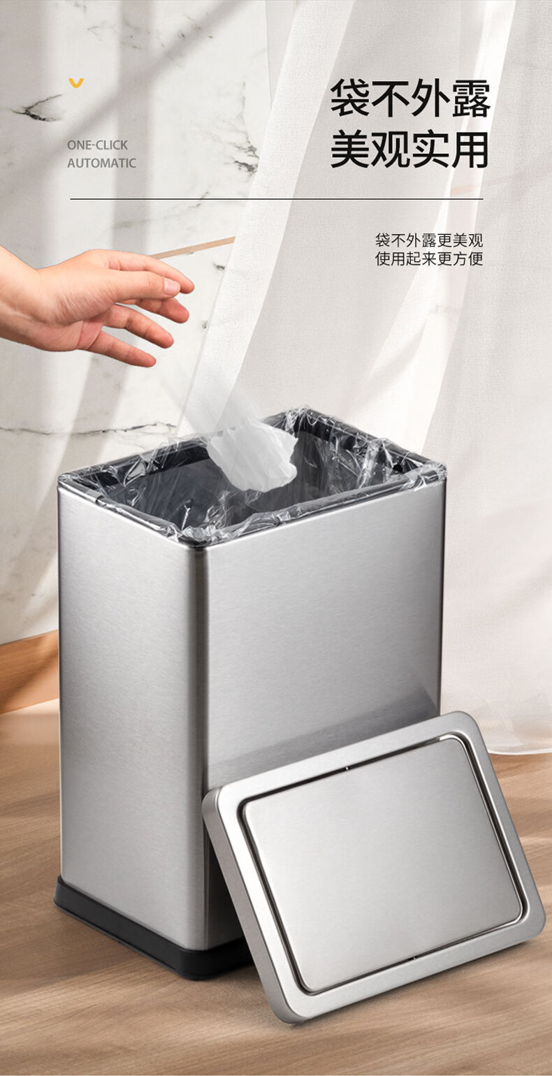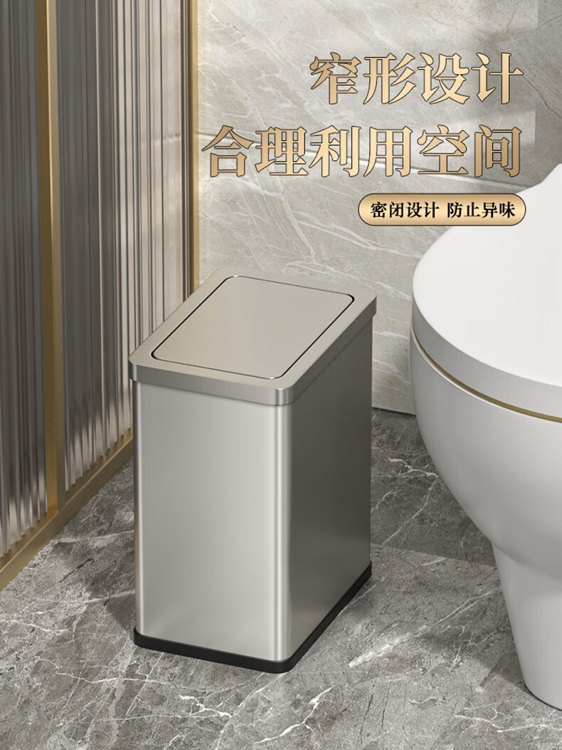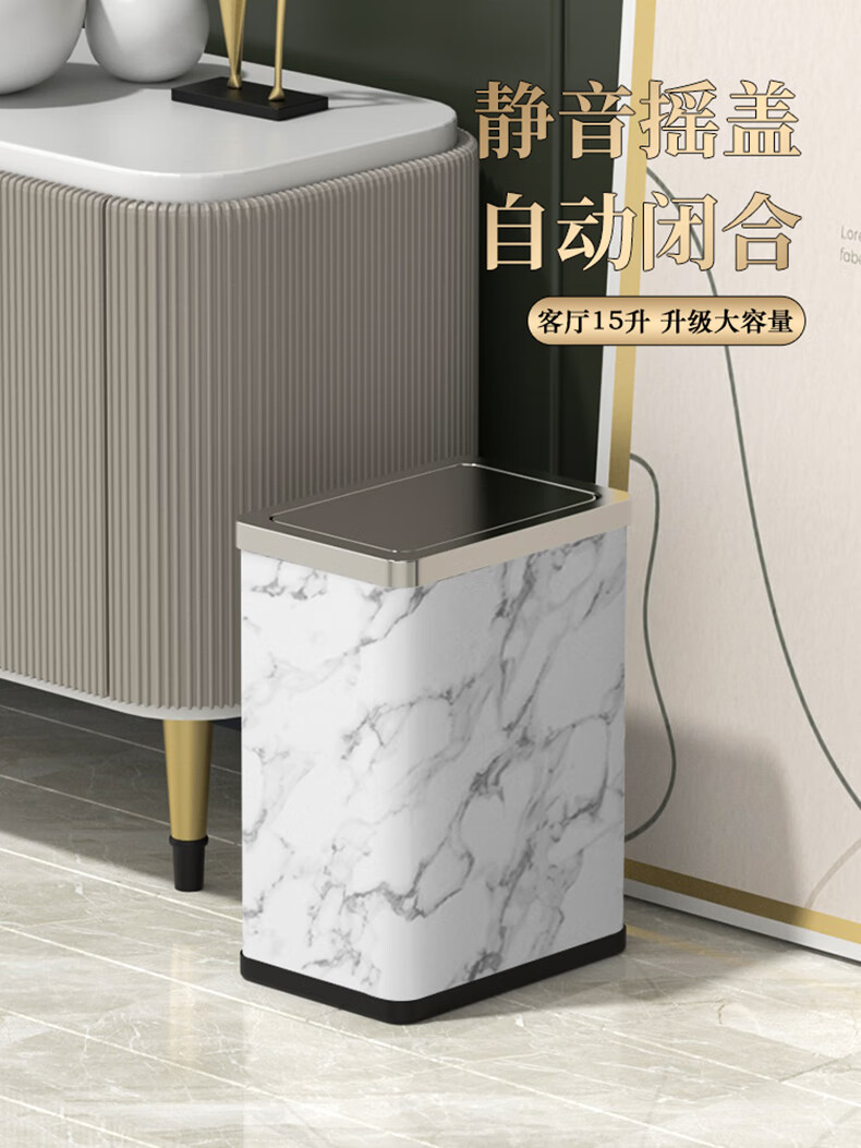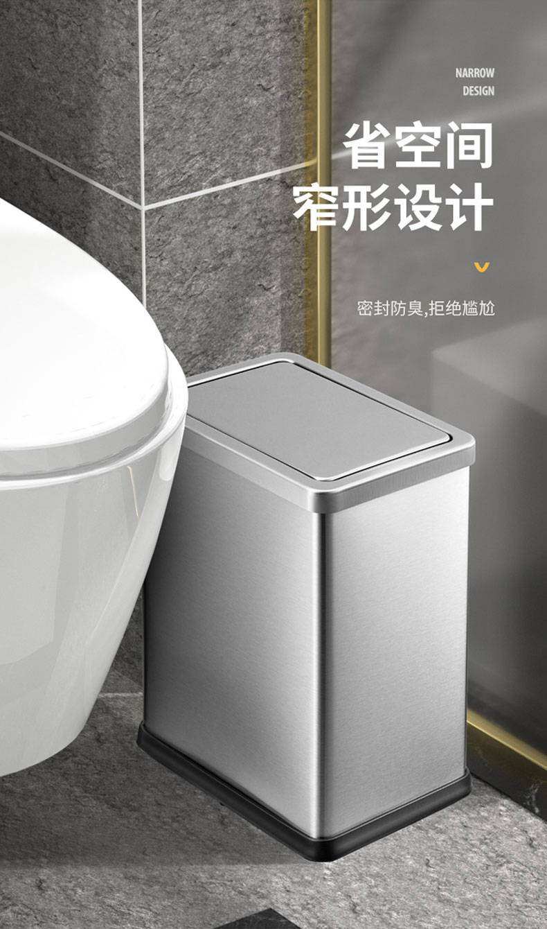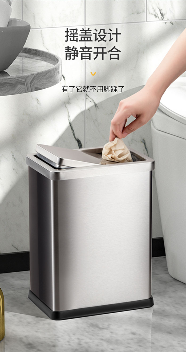 帝梵长方形翻盖不锈钢垃圾桶欧式家用卫生间厕所摇盖带盖客厅大号 15L方形摇盖【不锈钢】