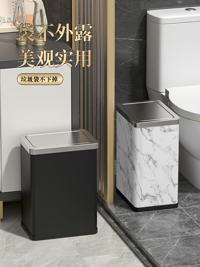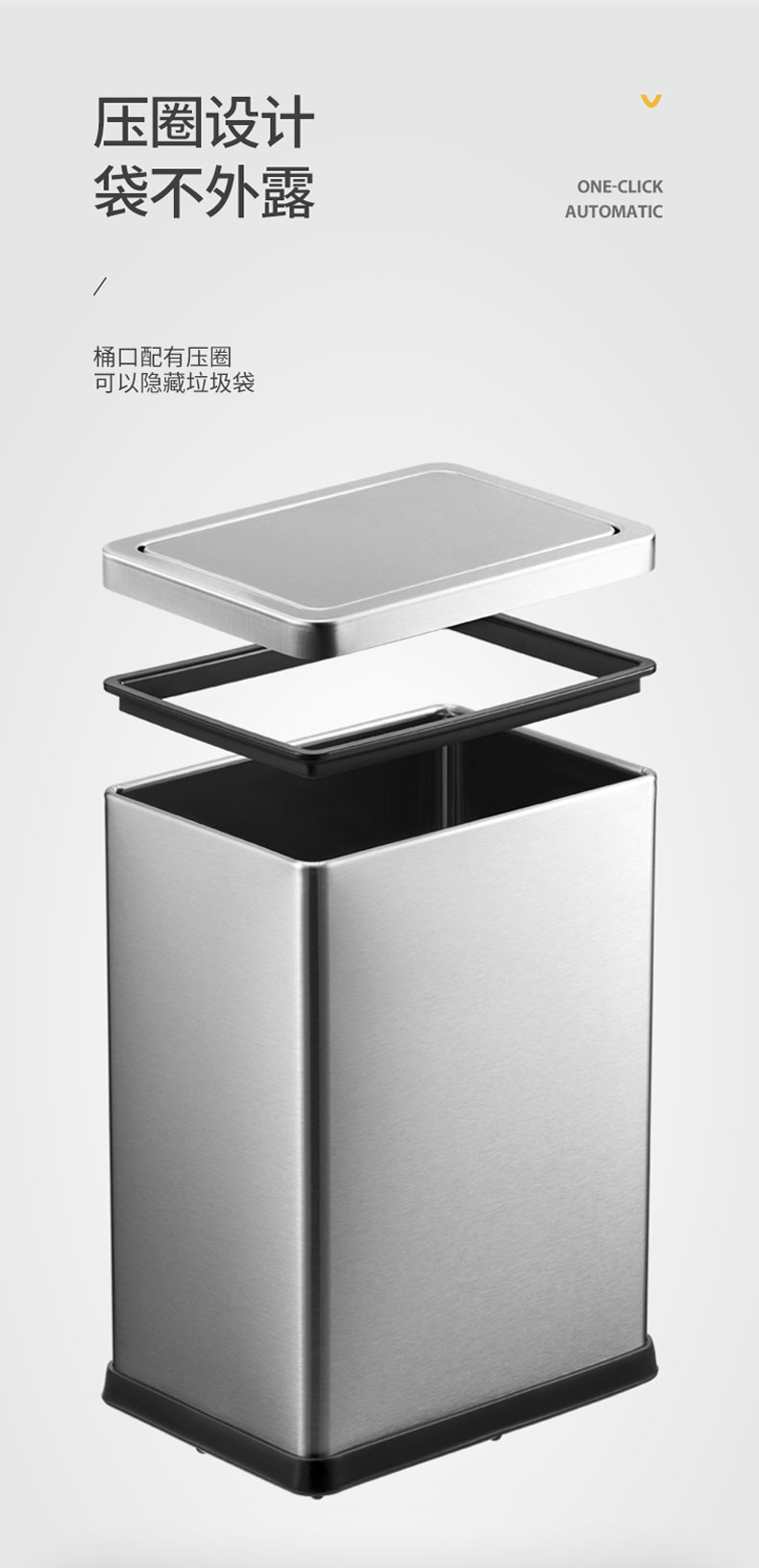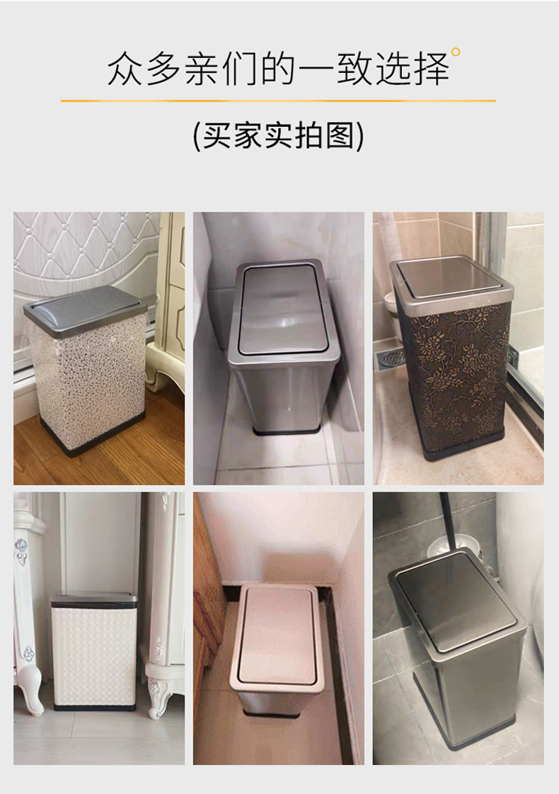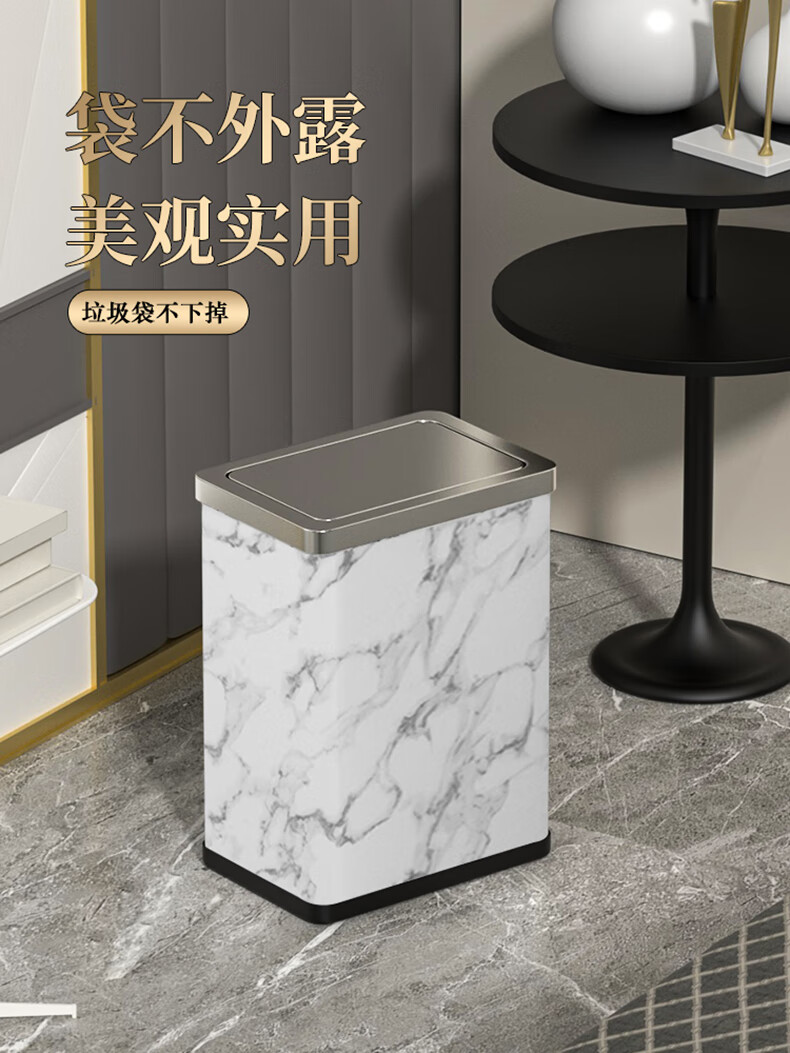 帝梵长方形翻盖不锈钢垃圾桶欧式家用卫生间厕所摇盖带盖客厅大号 15L方形摇盖【不锈钢】
