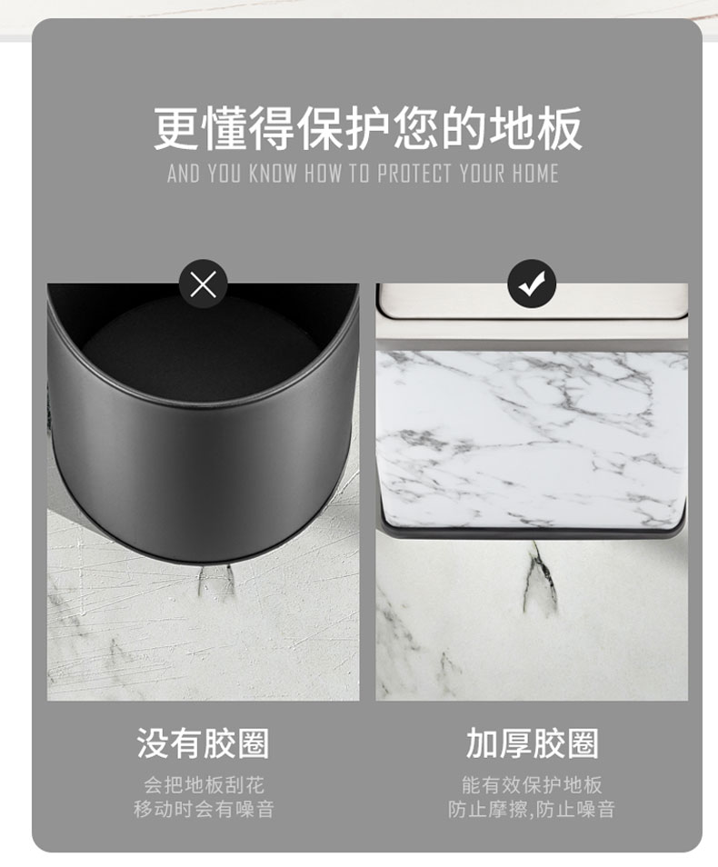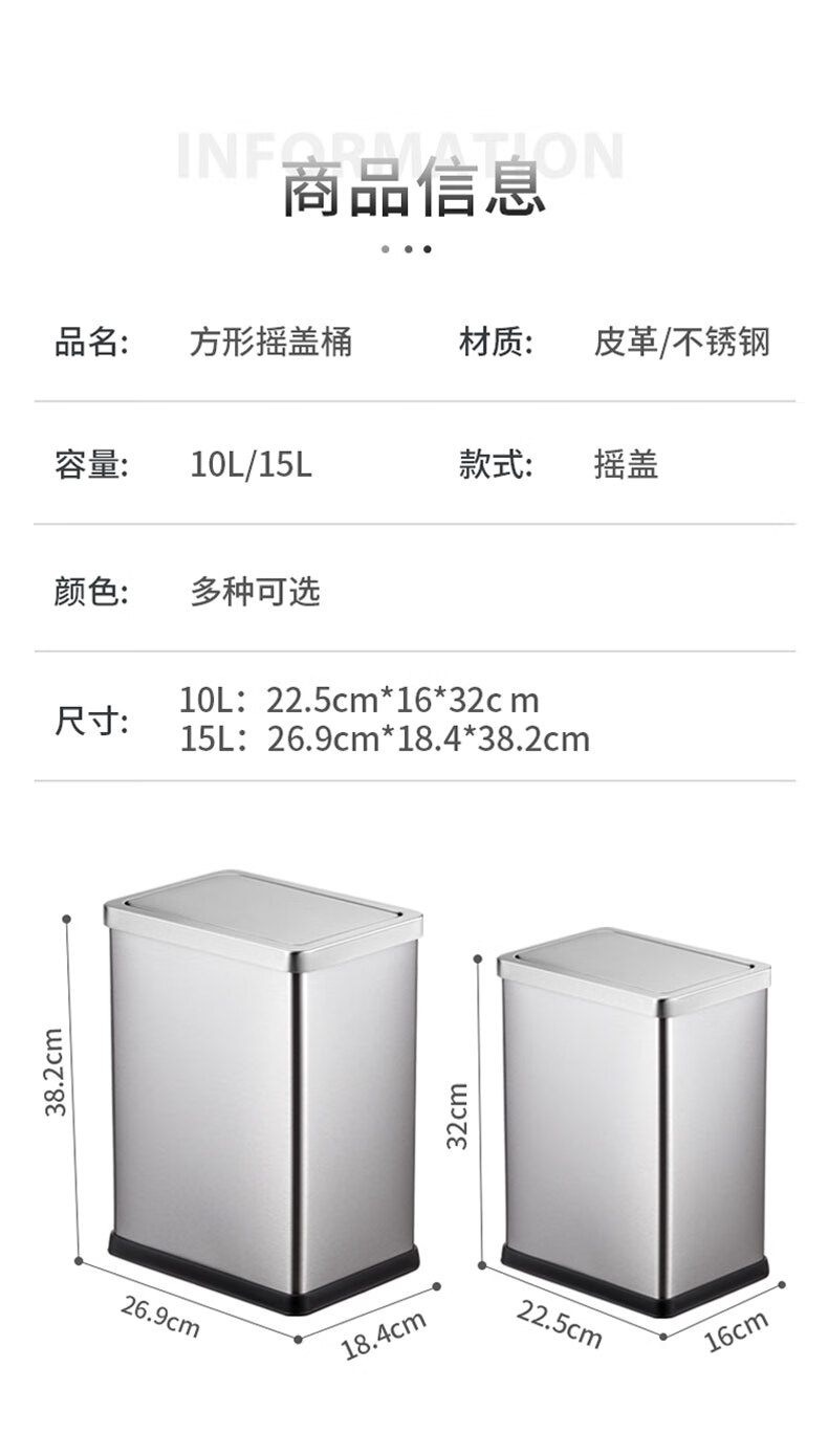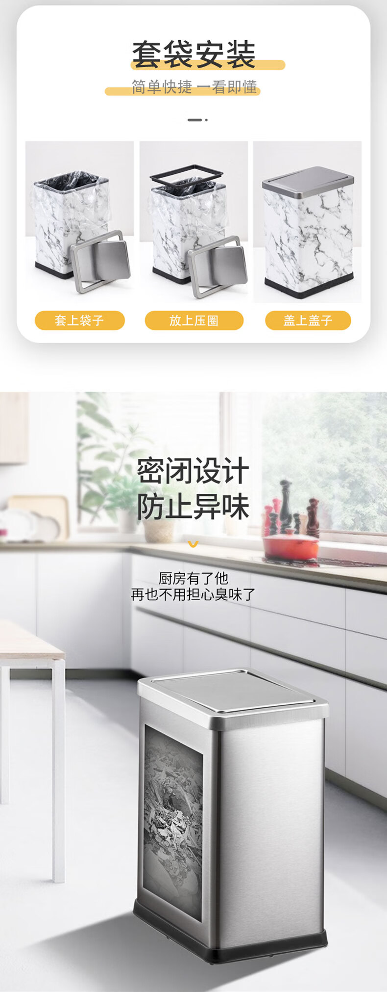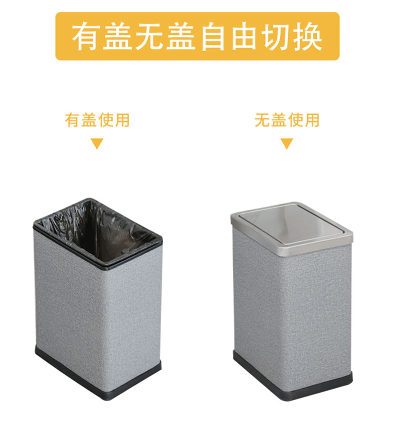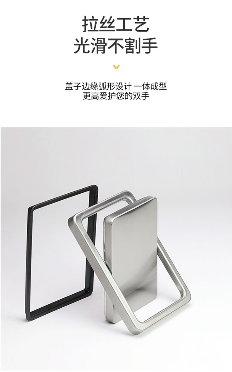 帝梵长方形翻盖不锈钢垃圾桶欧式家用卫生间厕所摇盖带盖客厅大号 15L方形摇盖【不锈钢】