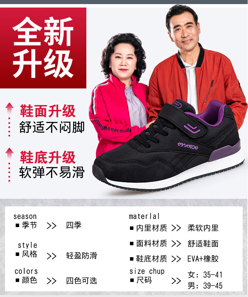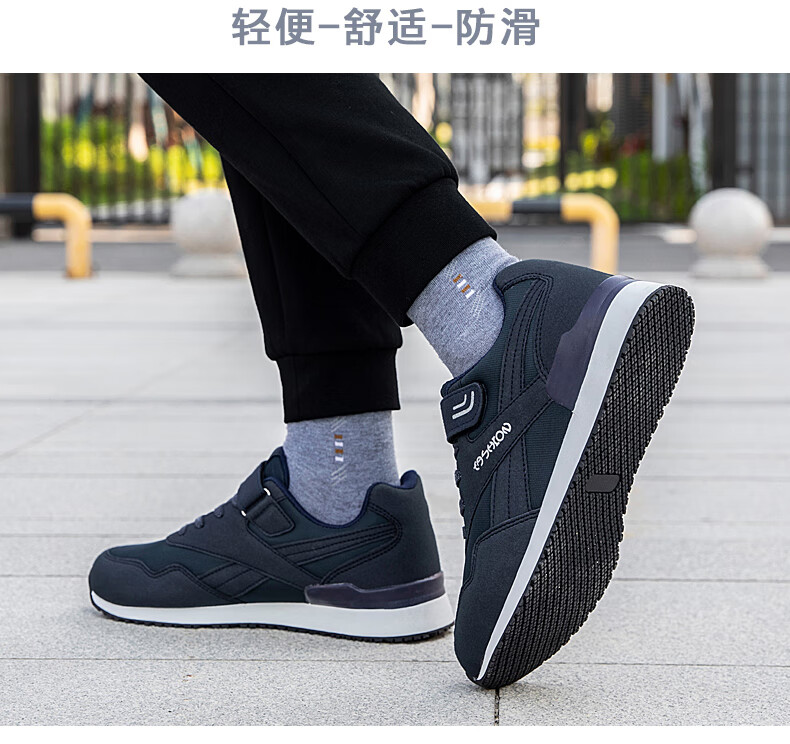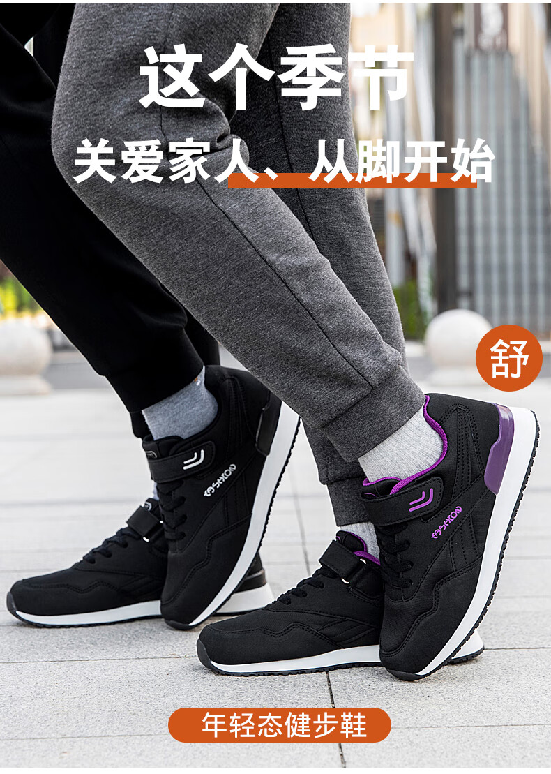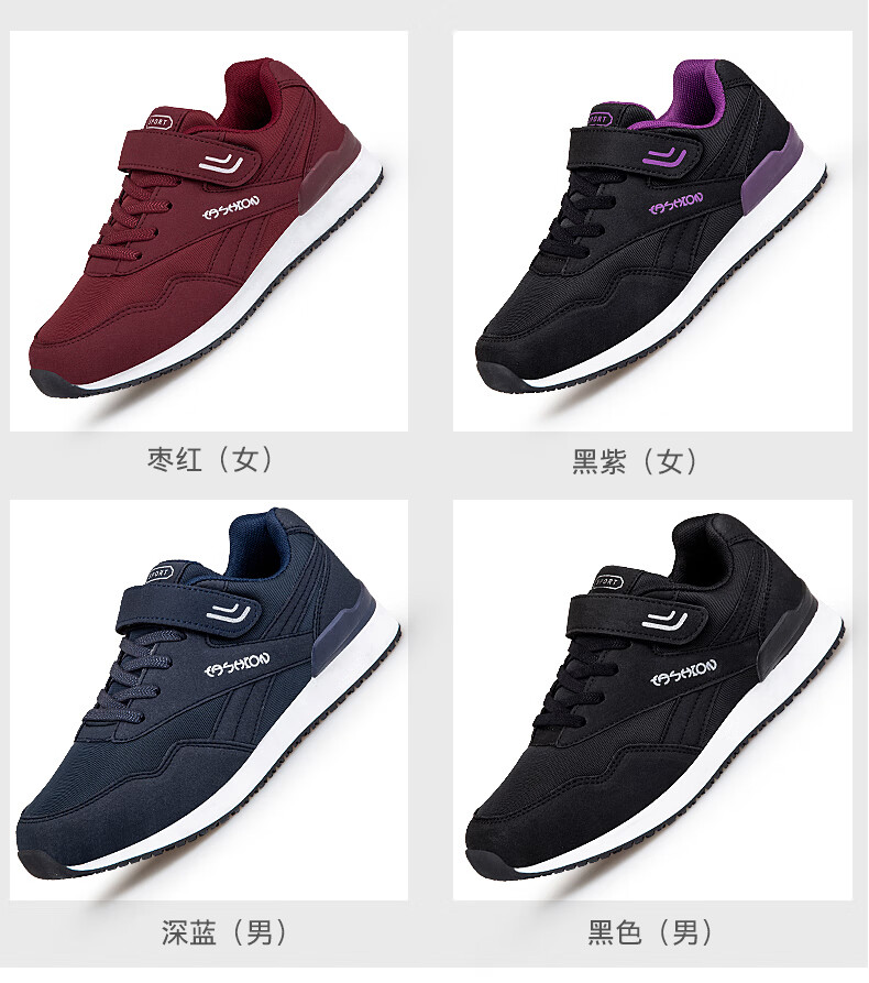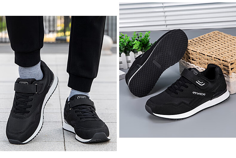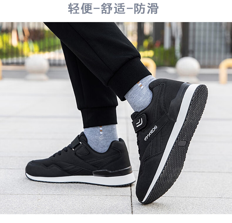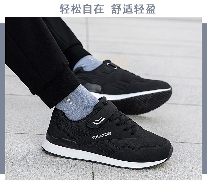 吊带兔老人鞋男秋冬季防滑软底爸爸鞋中老年休闲运动鞋女网面透气妈妈鞋 1800黑色男款 35