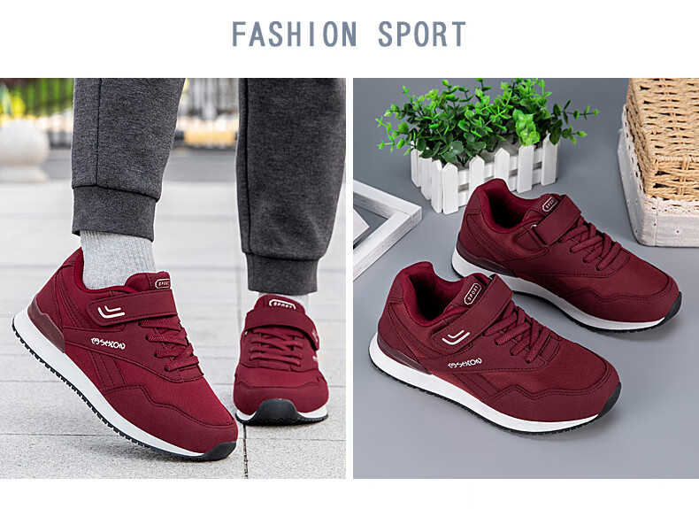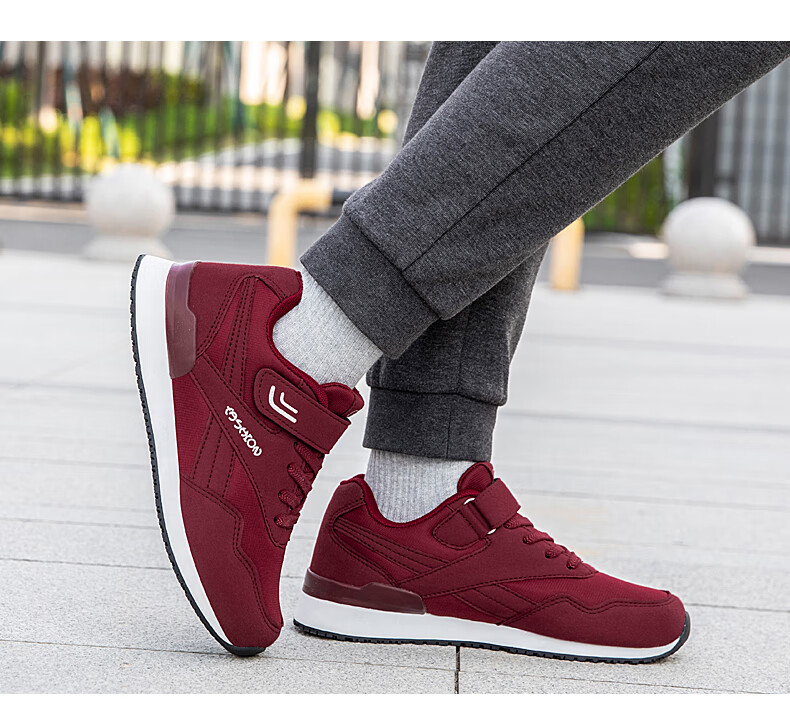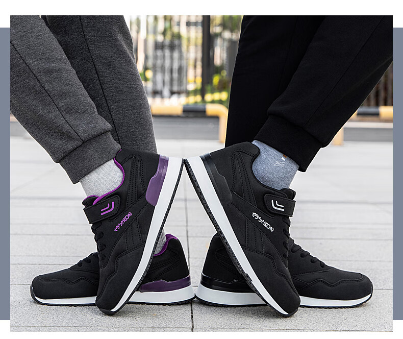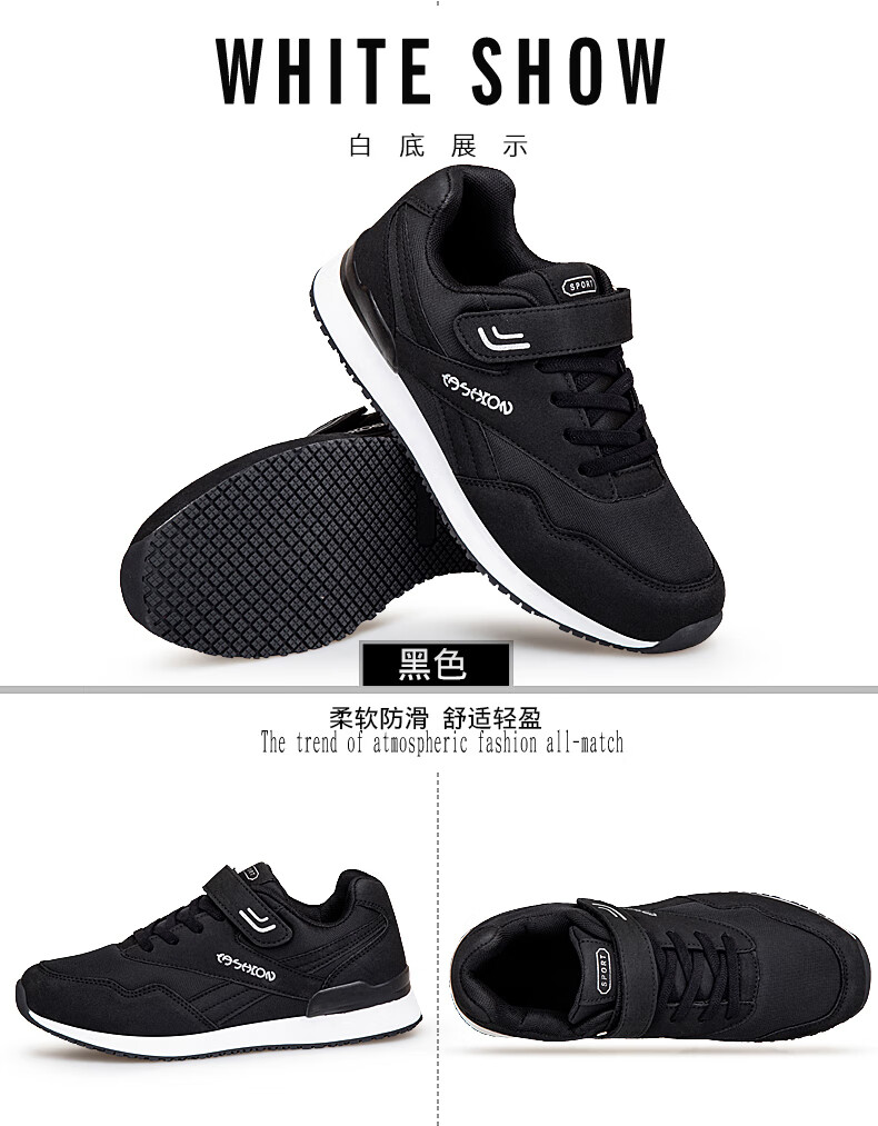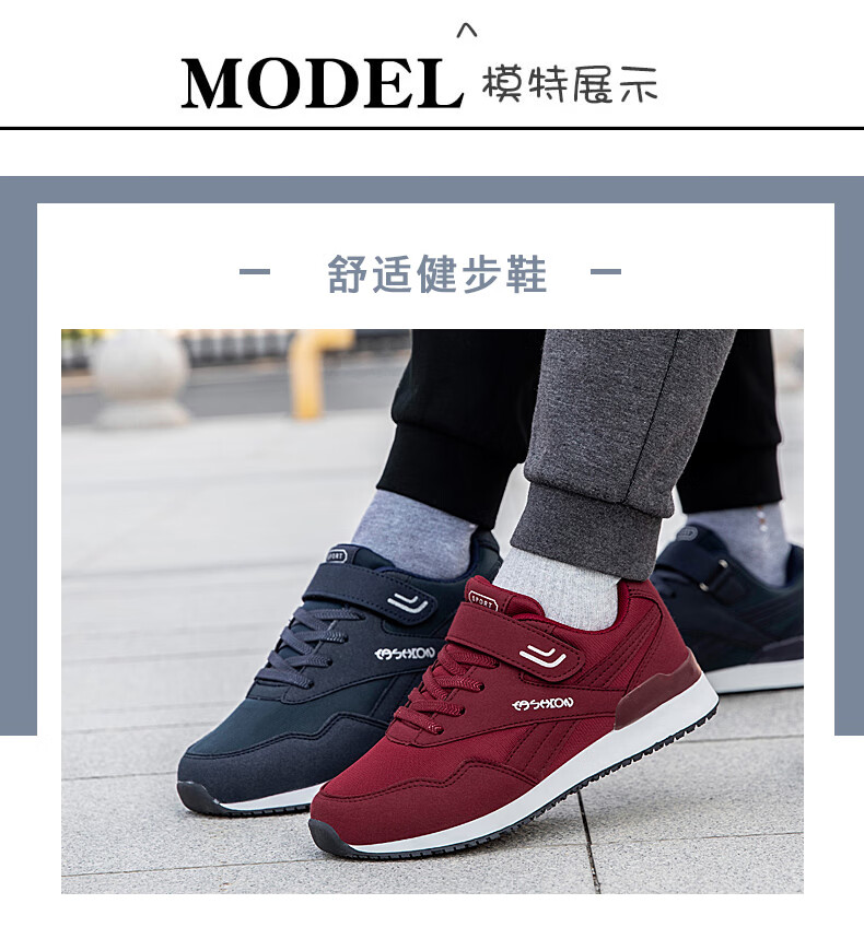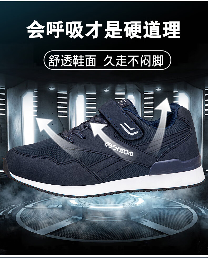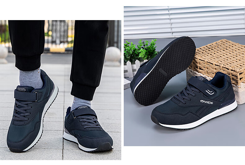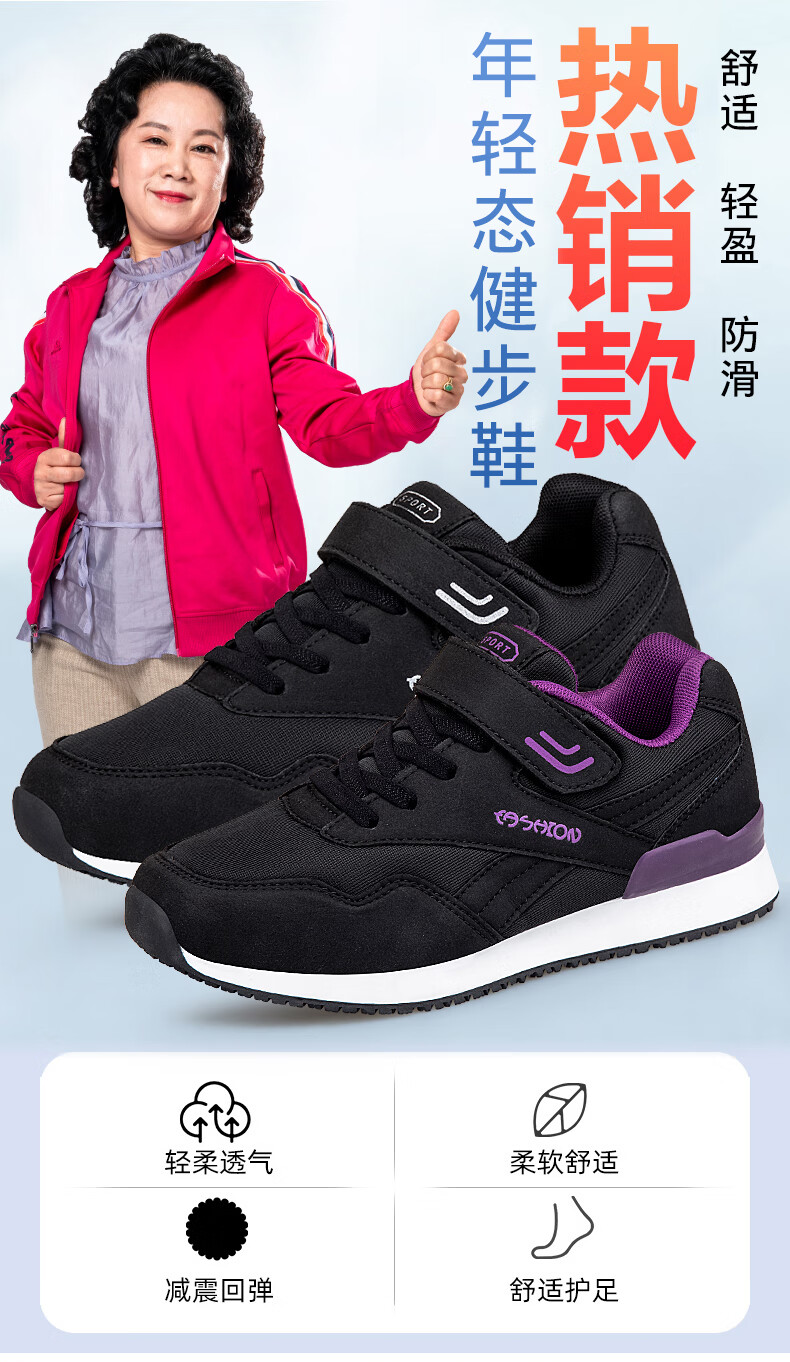 吊带兔老人鞋男秋冬季防滑软底爸爸鞋中老年休闲运动鞋女网面透气妈妈鞋 1800黑色男款 35
