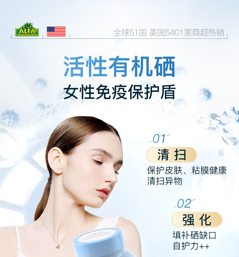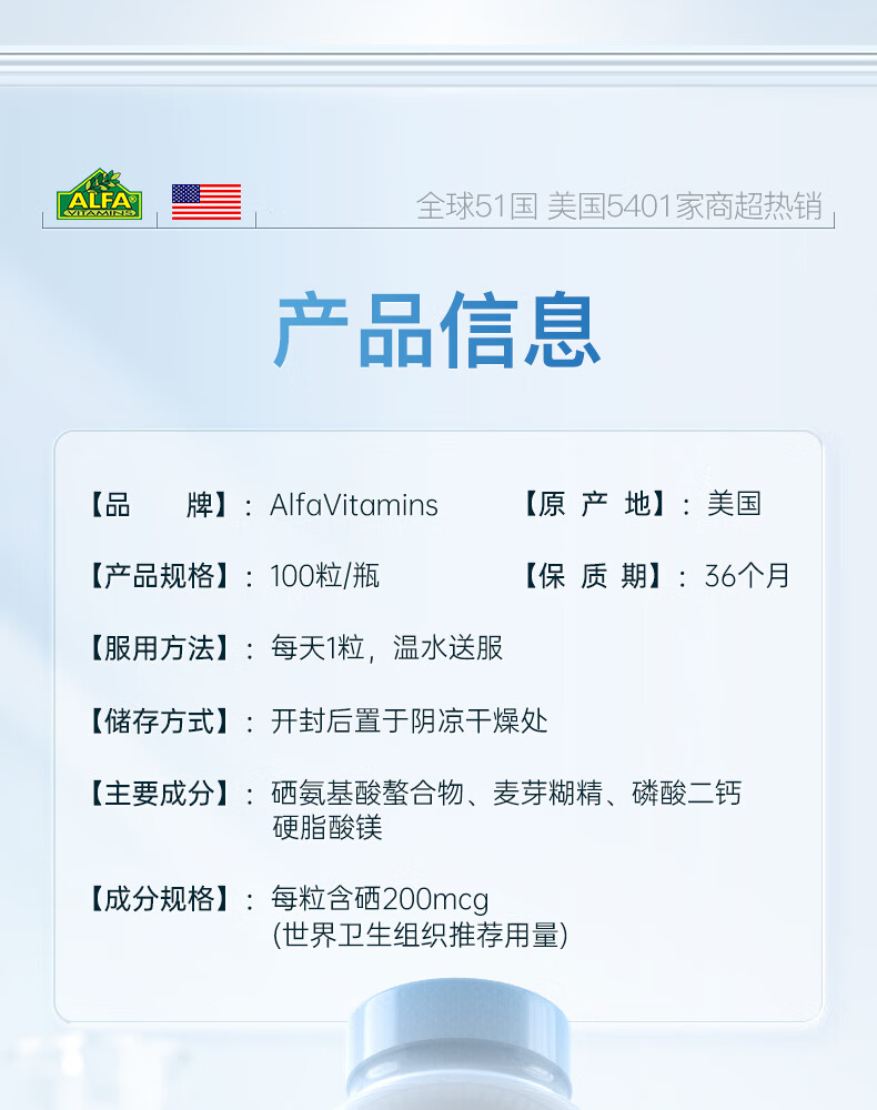 氨基酸硒美国进口硒片女性补硒元素官方免疫力非麦芽硒 100粒*1瓶