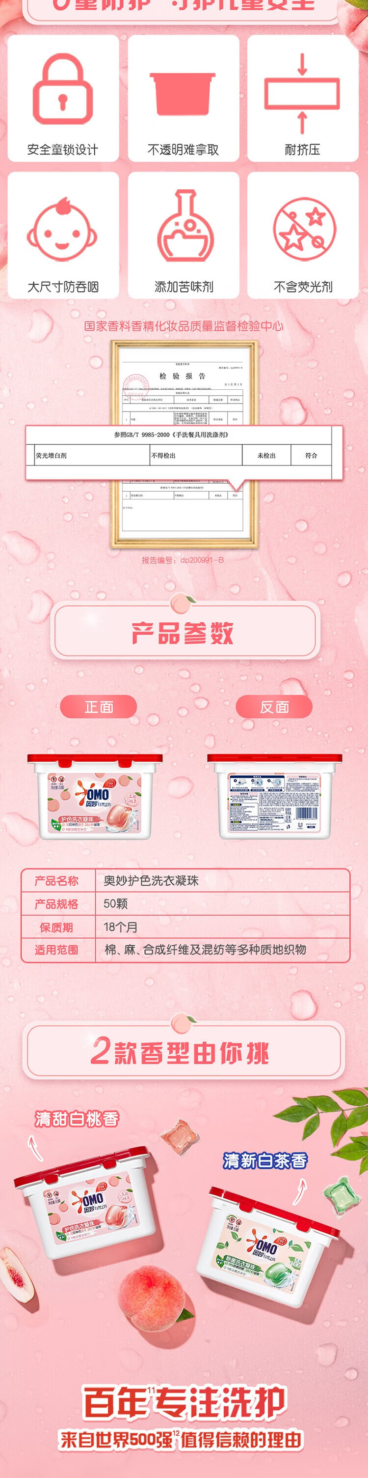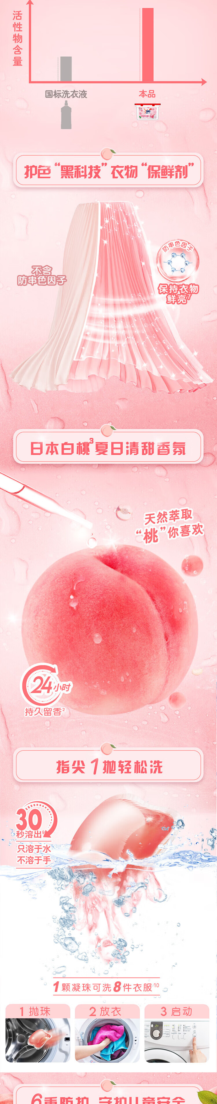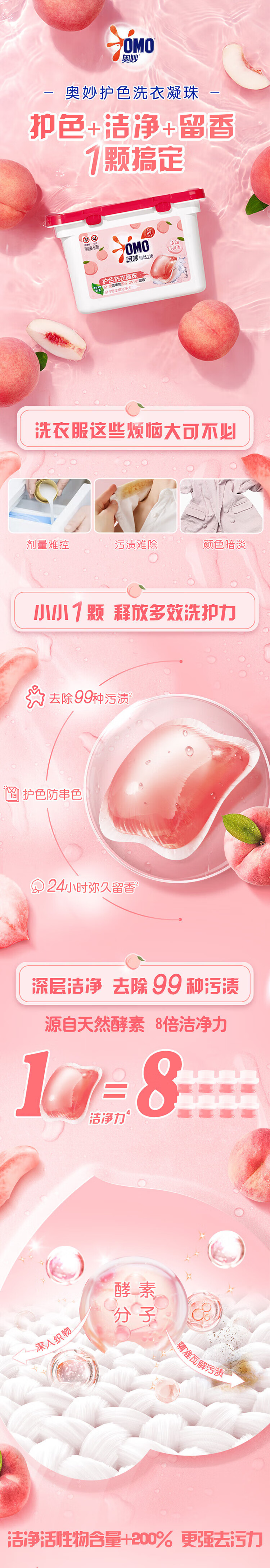 奥妙洗衣凝珠柔护洗衣液 白桃护色浓缩洗衣珠 除菌除螨洗衣球留香 【共150颗】清甜白桃香*3盒
