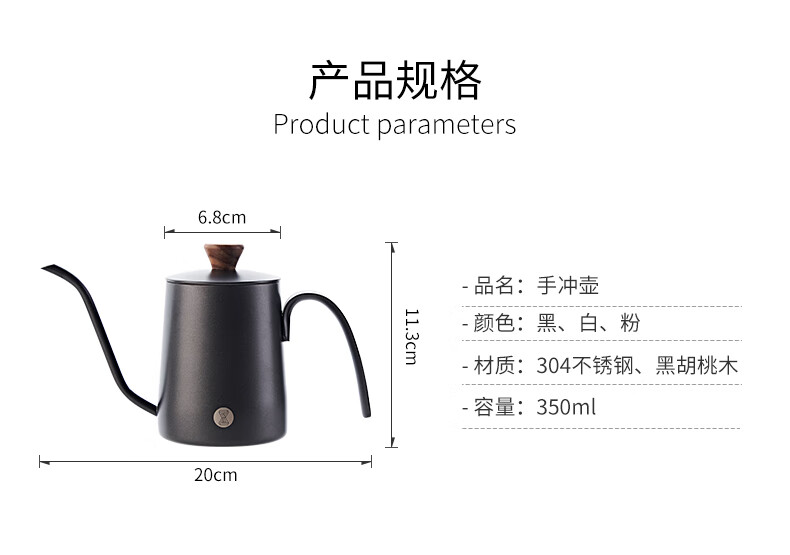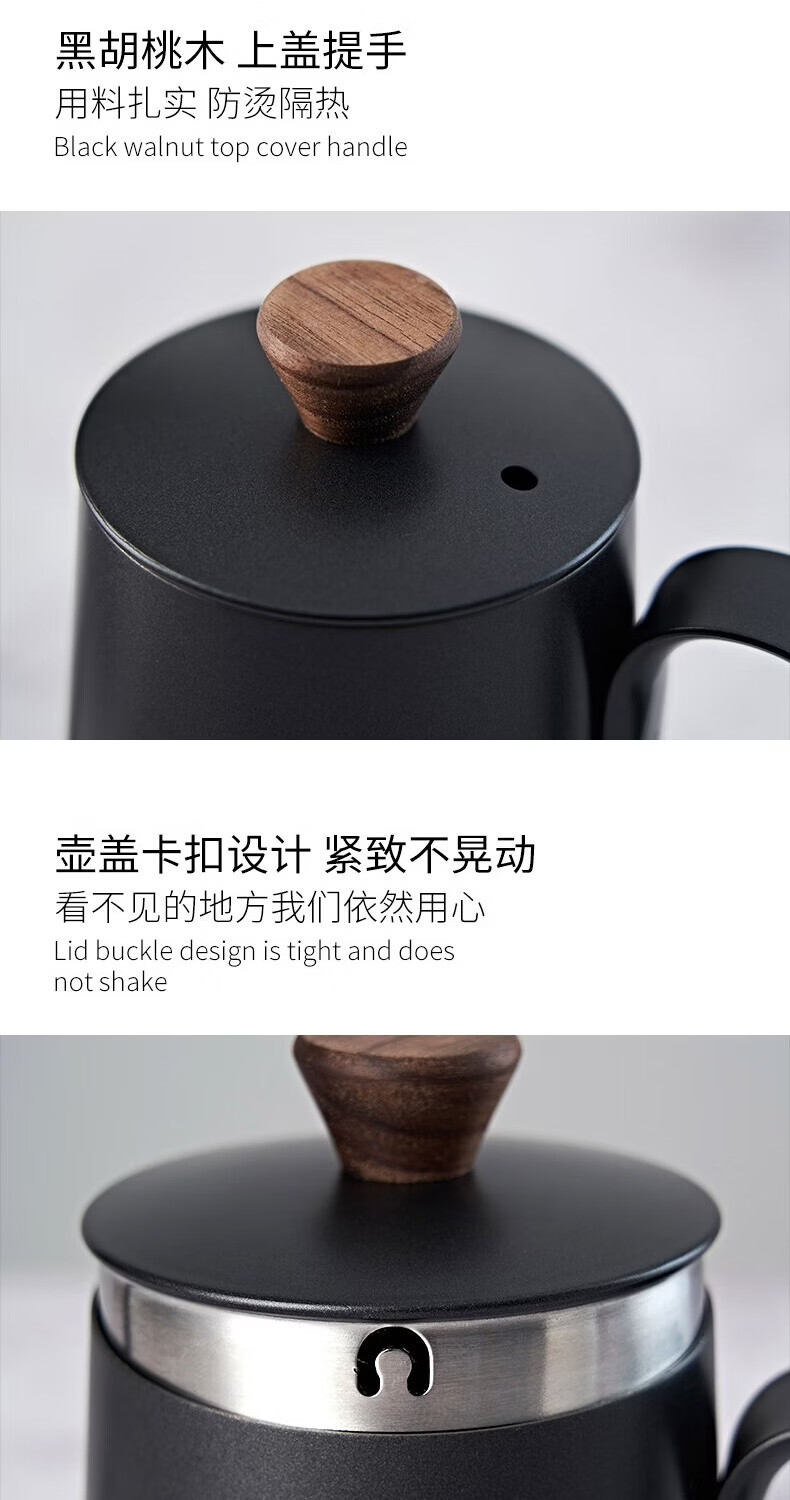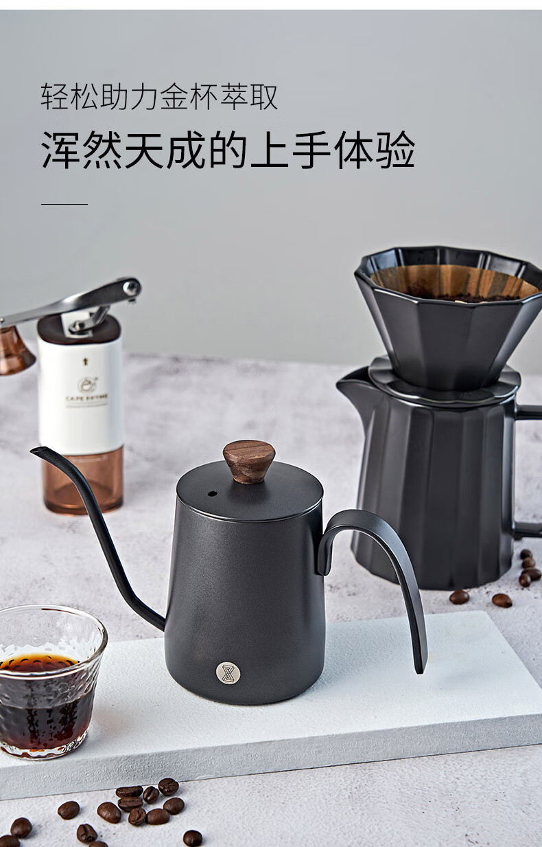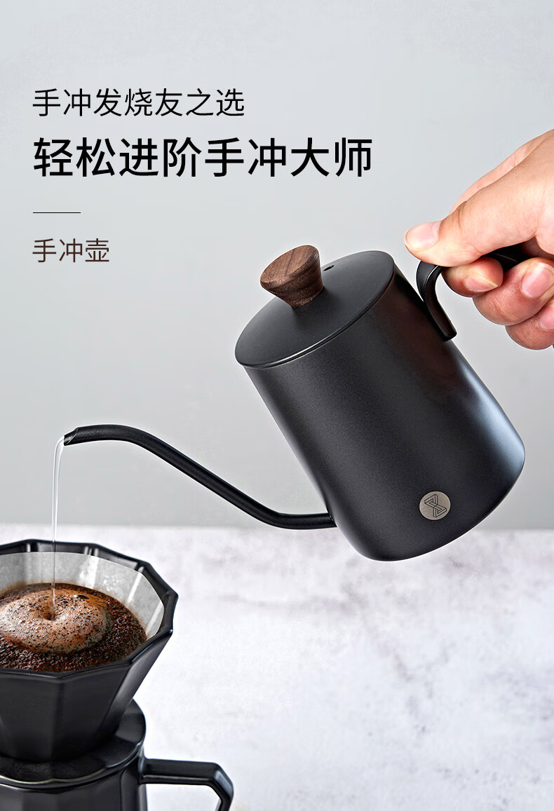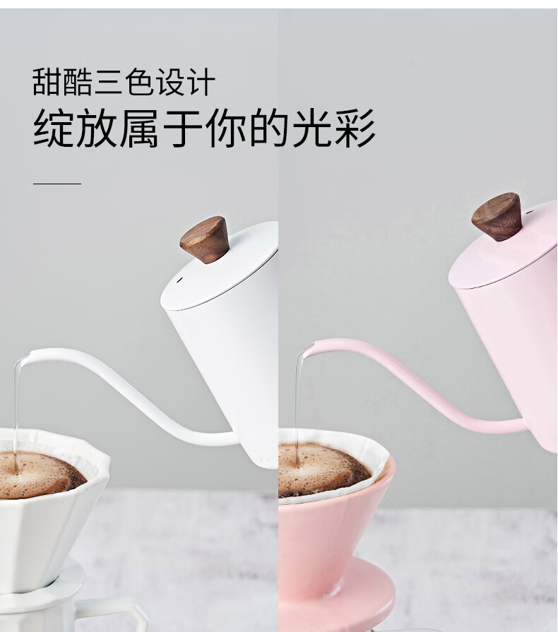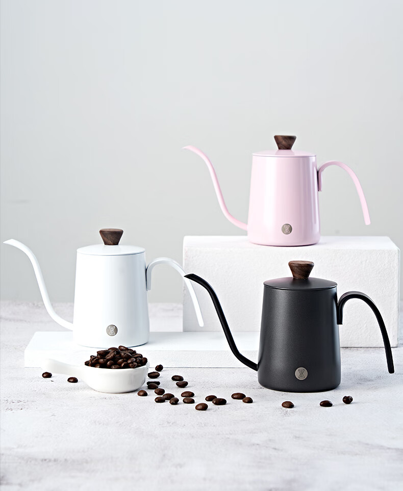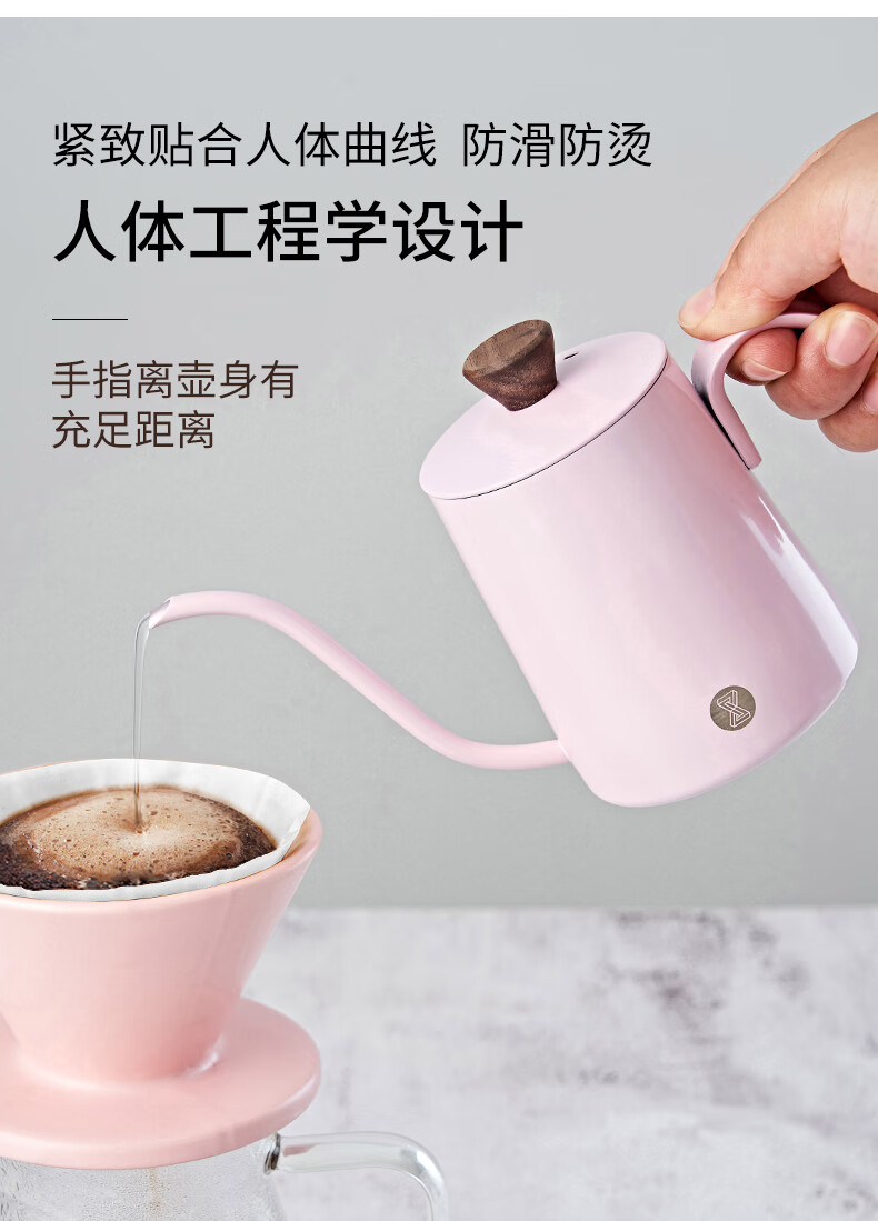 臻航手冲咖啡壶家用迷你挂耳咖啡手冲壶304不锈钢长嘴细口滴漏过滤壶 S03PRO带盖350ML粉色