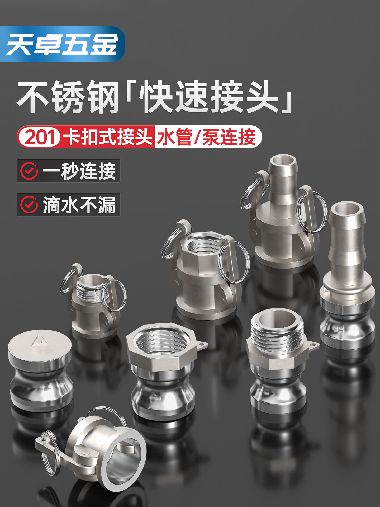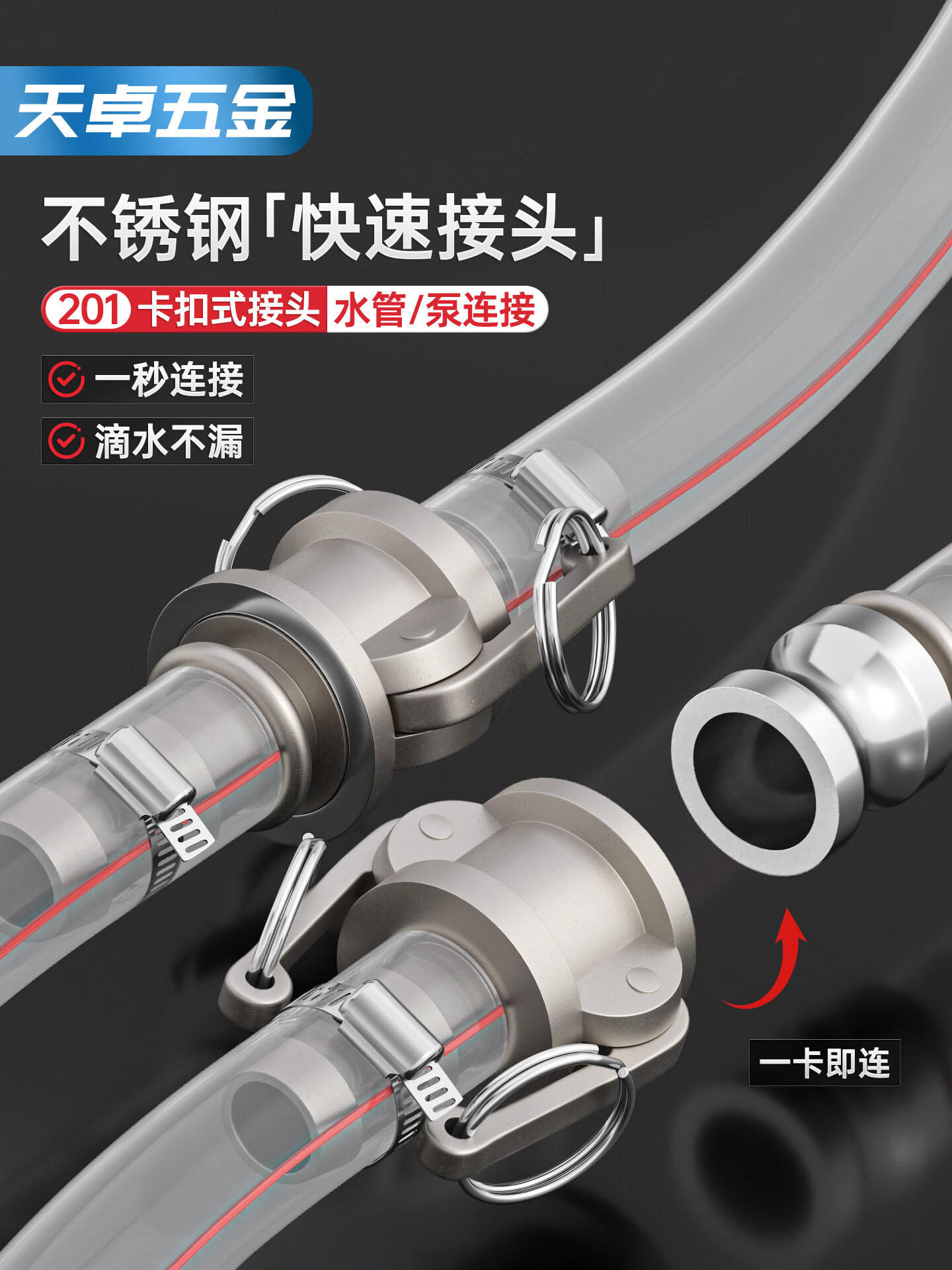 天卓五金201不锈钢快速接头卡扣式活接4/6分1/2/3寸水泵水管接头组合大全 ---以下为A+B型---
