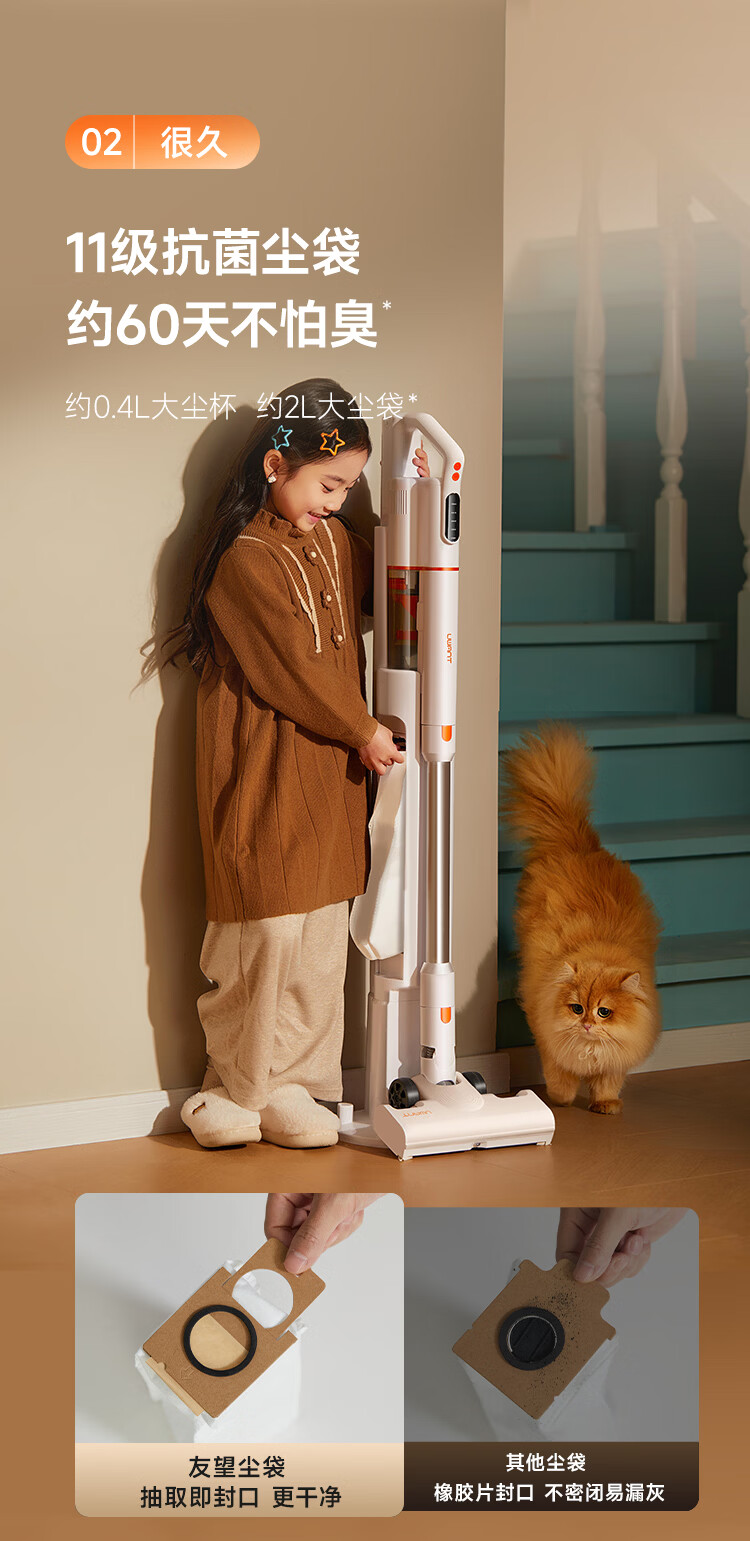 UWANT友望吸尘器大橘Pro自集尘【专利防缠 仿生刮环自清洁】小型车载家用大吸力无线吸尘器手持大功率