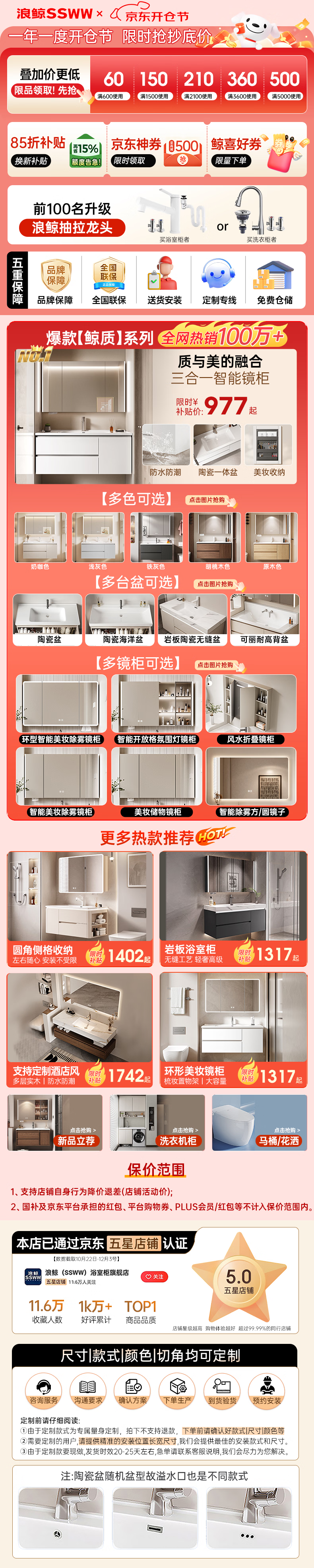 浪鲸浴室柜定制链接台面/颜色/配置/切角均可定制 定制C