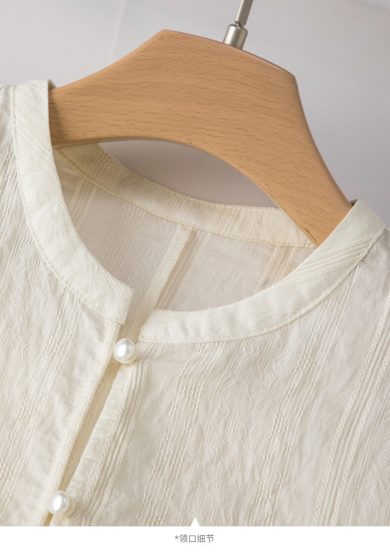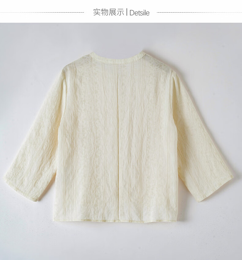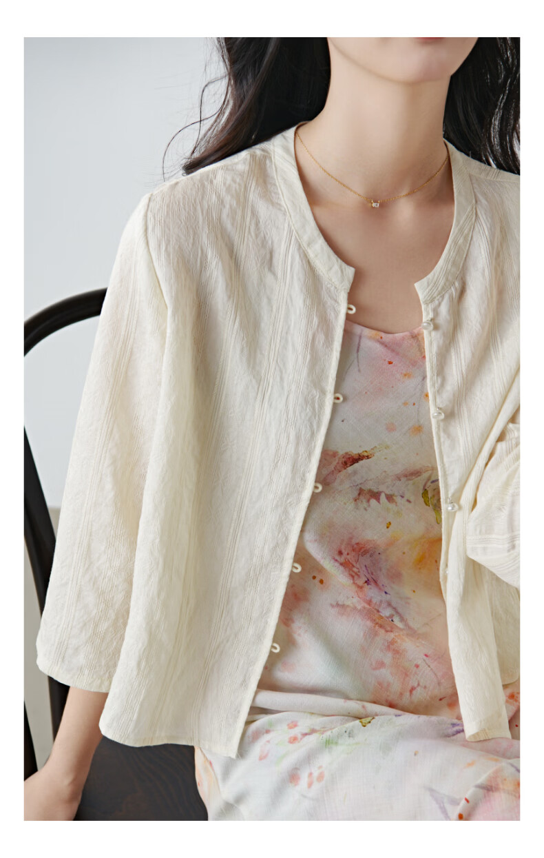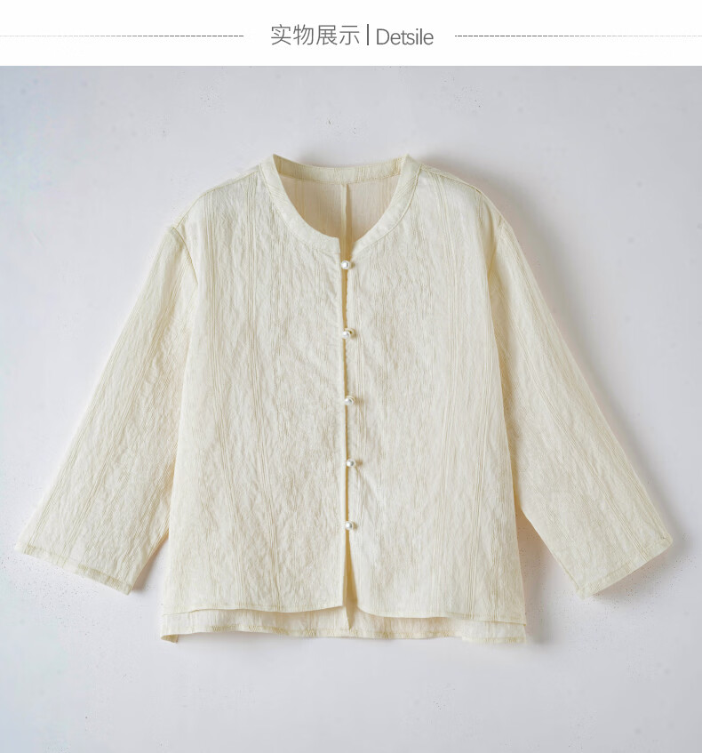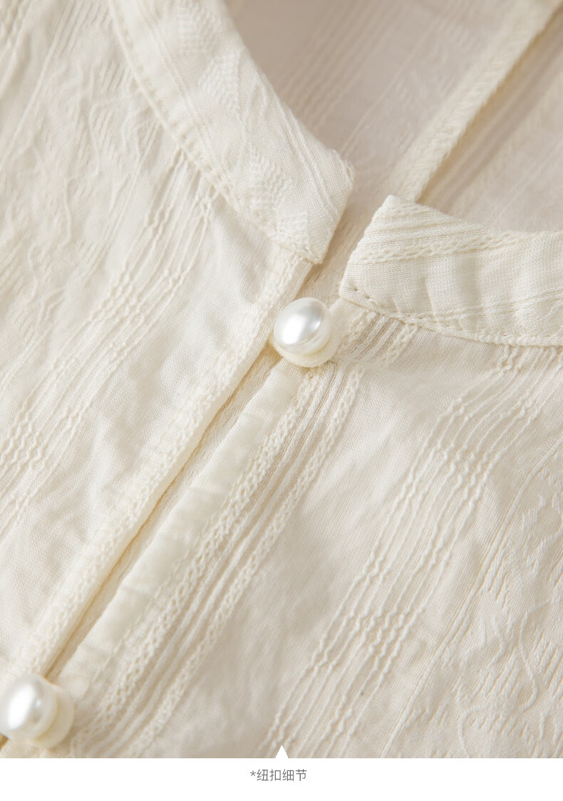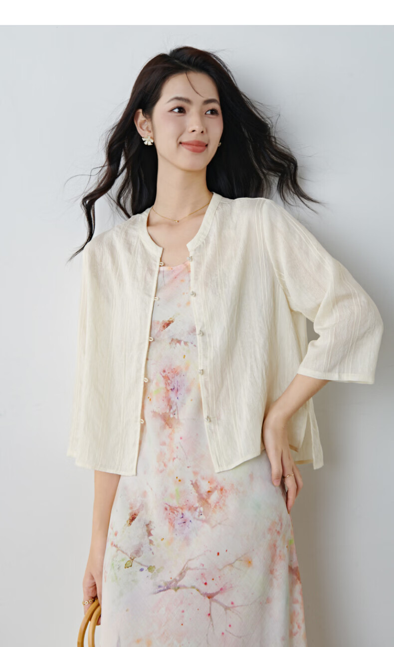 晚白2026春款新中式轻薄绘花麻感上衣宽松廓形古典国风盘扣轻盈衬衫女 米杏色 M