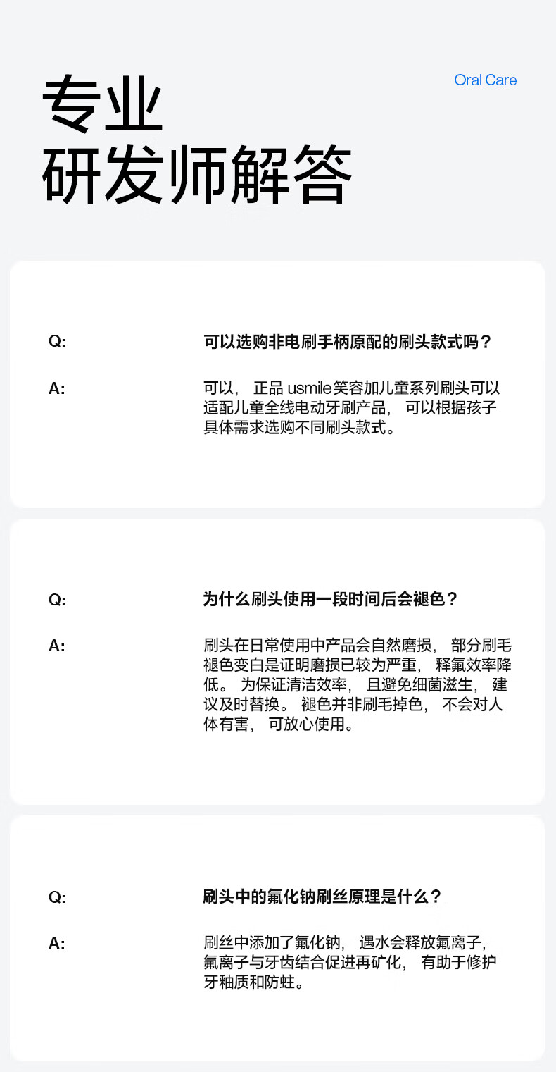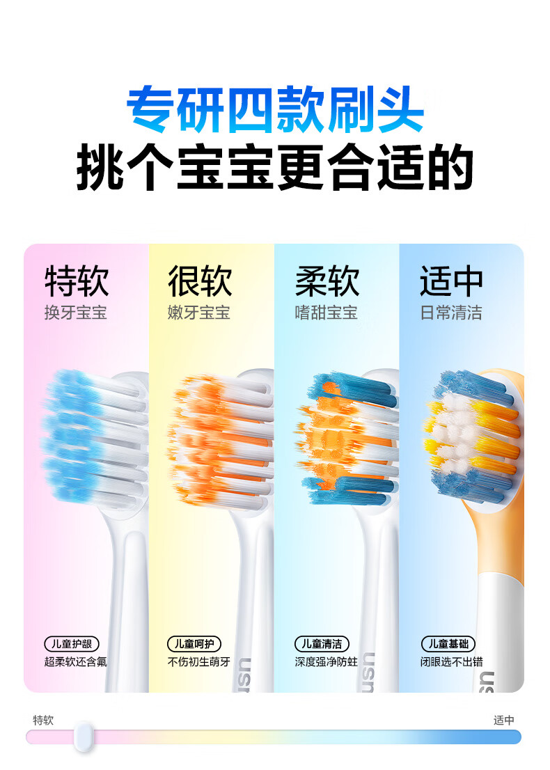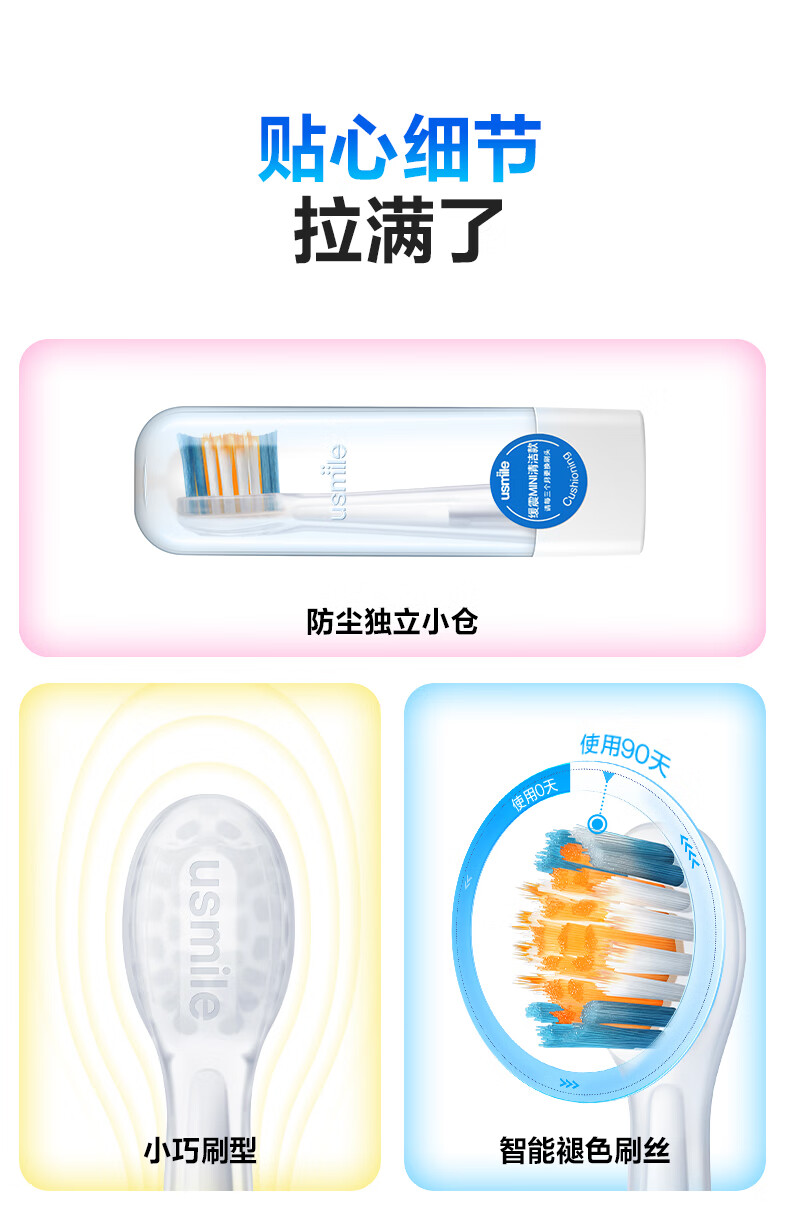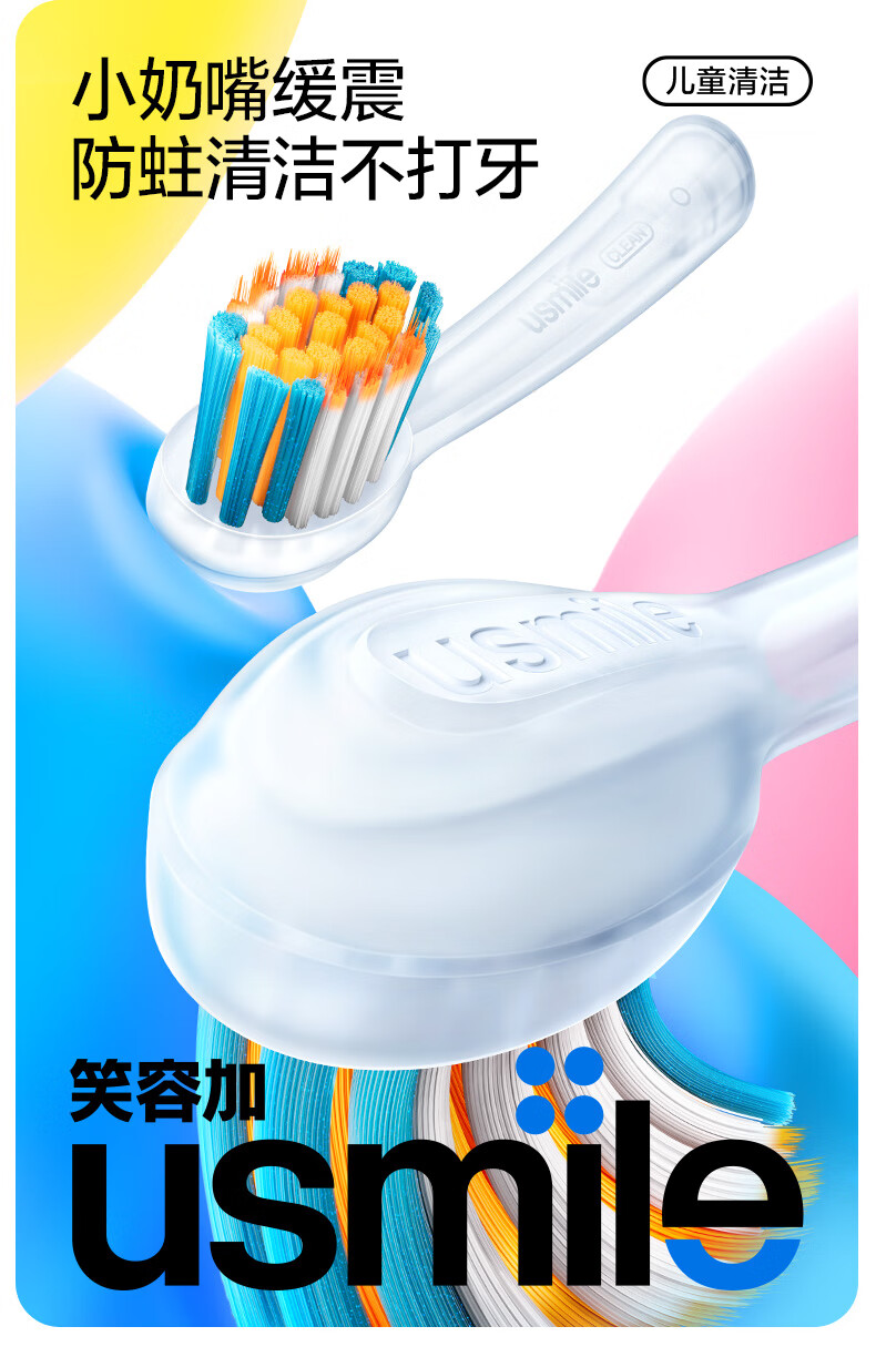 usmile笑容加电动牙刷头 呵护儿童牙齿 mini缓震清洁牙刷头-2支装