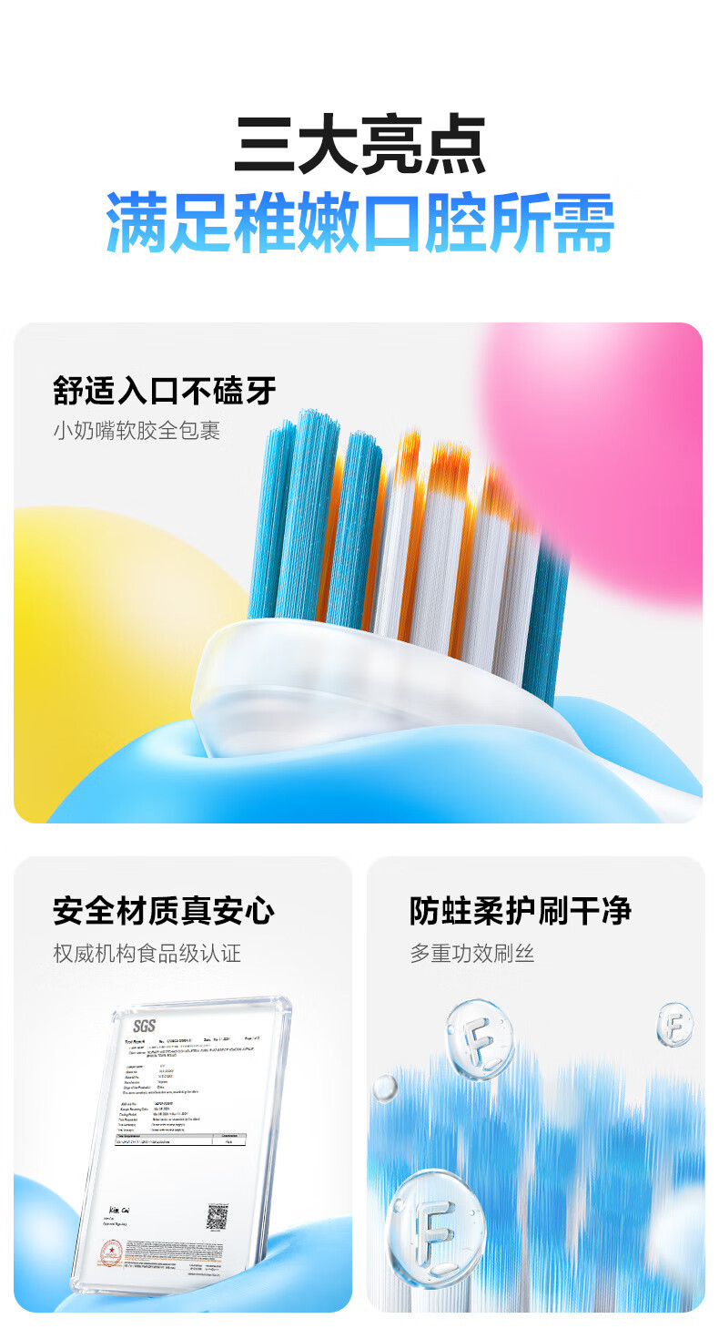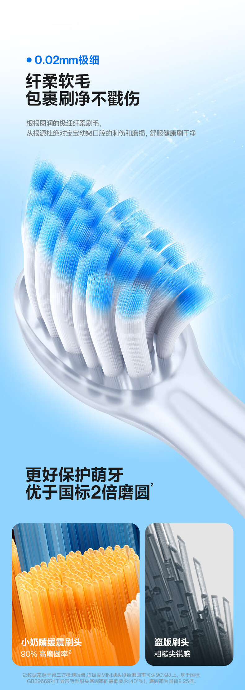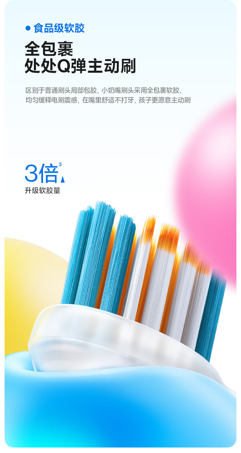 usmile笑容加电动牙刷头 呵护儿童牙齿 mini缓震清洁牙刷头-2支装