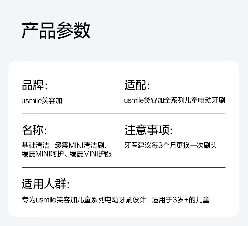 usmile笑容加 电动牙刷头 呵护儿童稚嫩牙龈 儿童MINI基础洁齿款-2支装 适配usmile儿童牙刷
