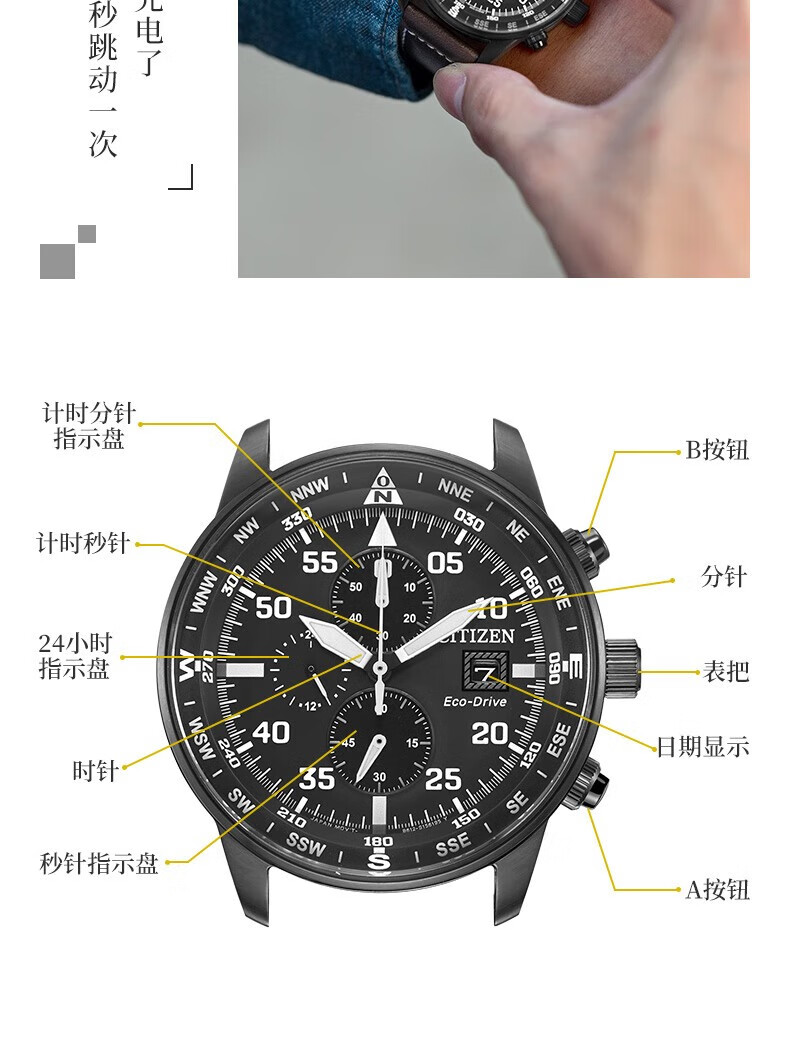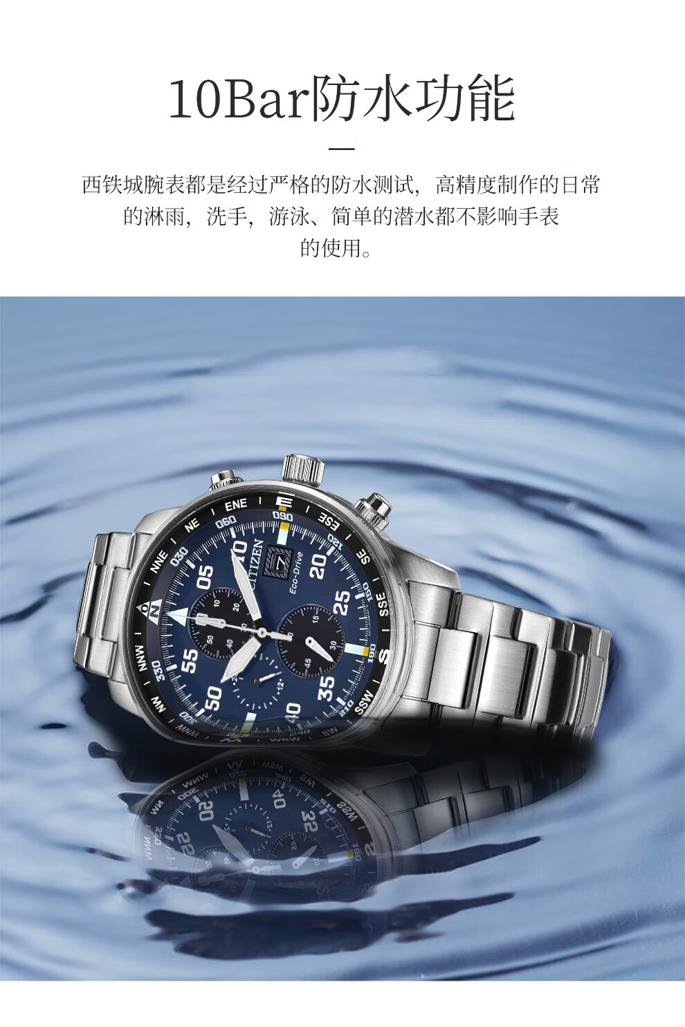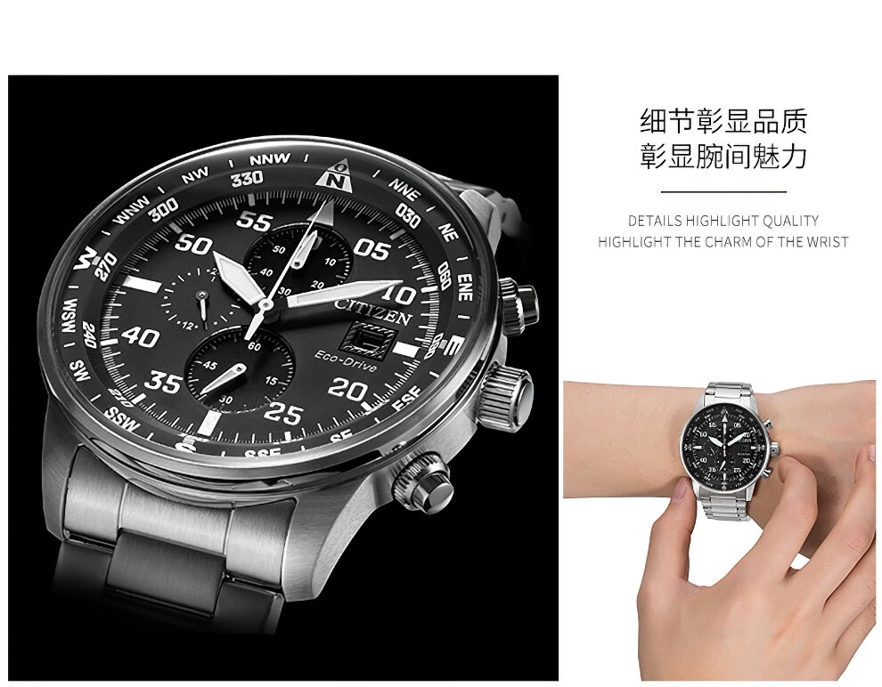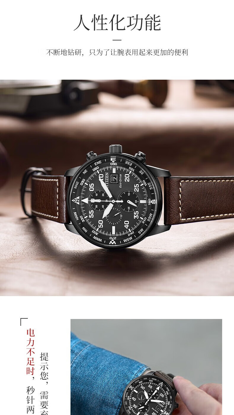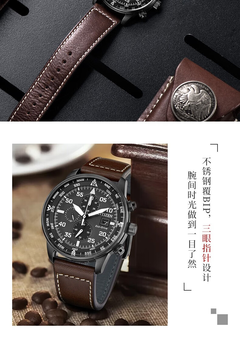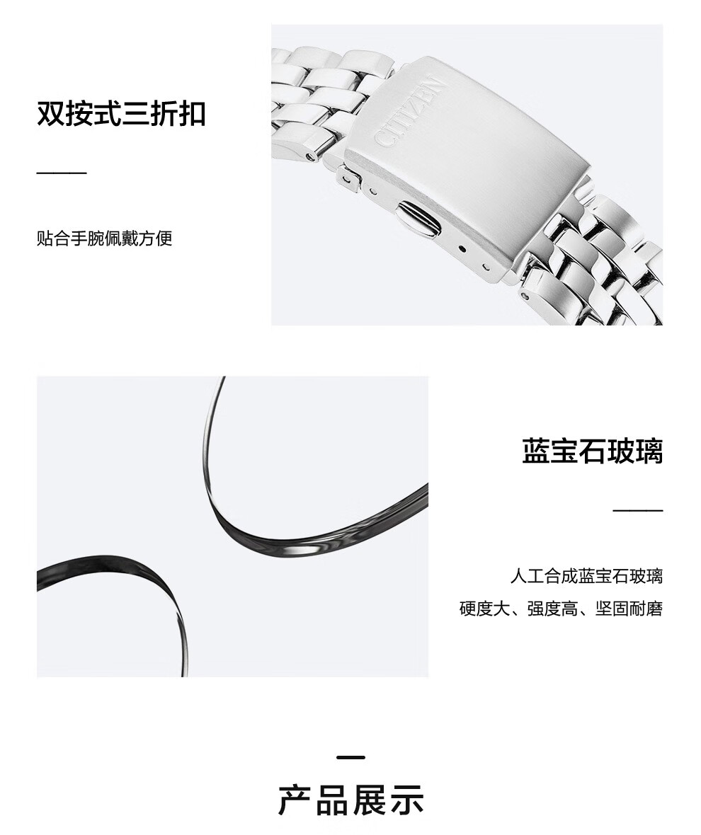 西铁城(CITIZEN)三眼计时防水光动能腕表商务运动休闲钢带/皮带男士手表 新款三眼蓝盘钢带AT2570-56L