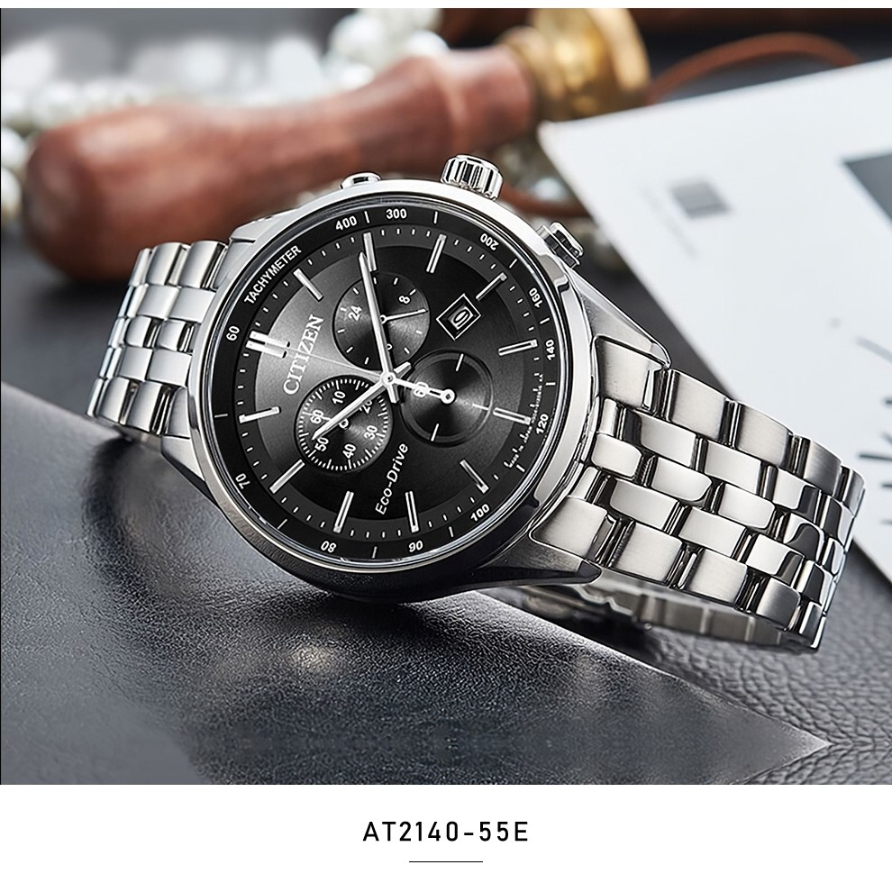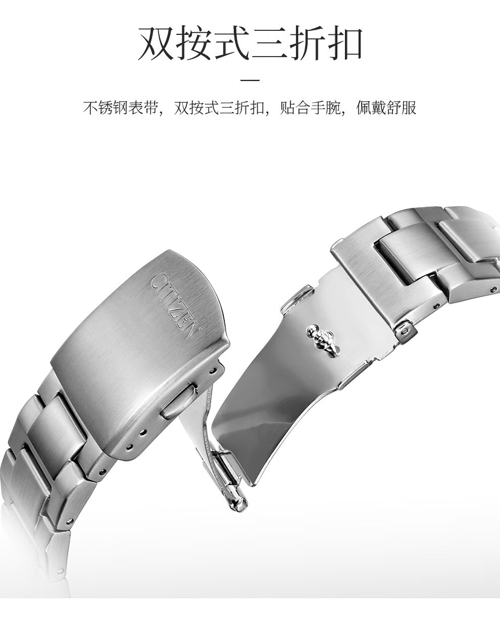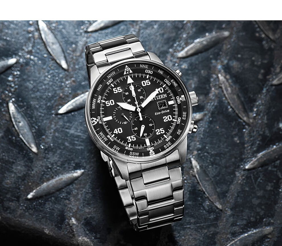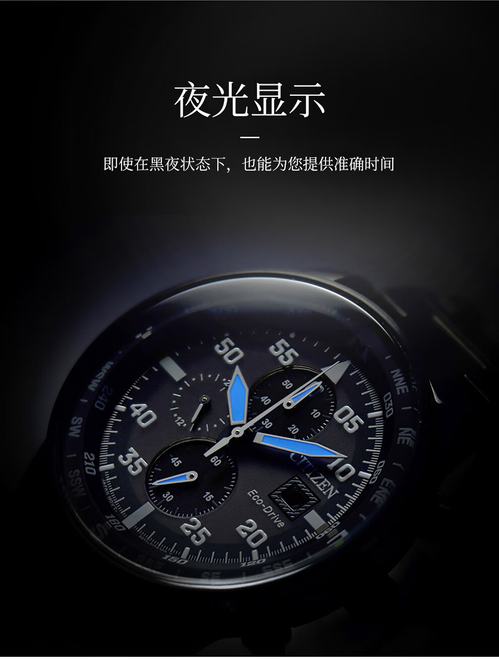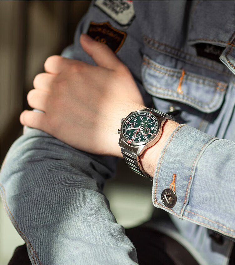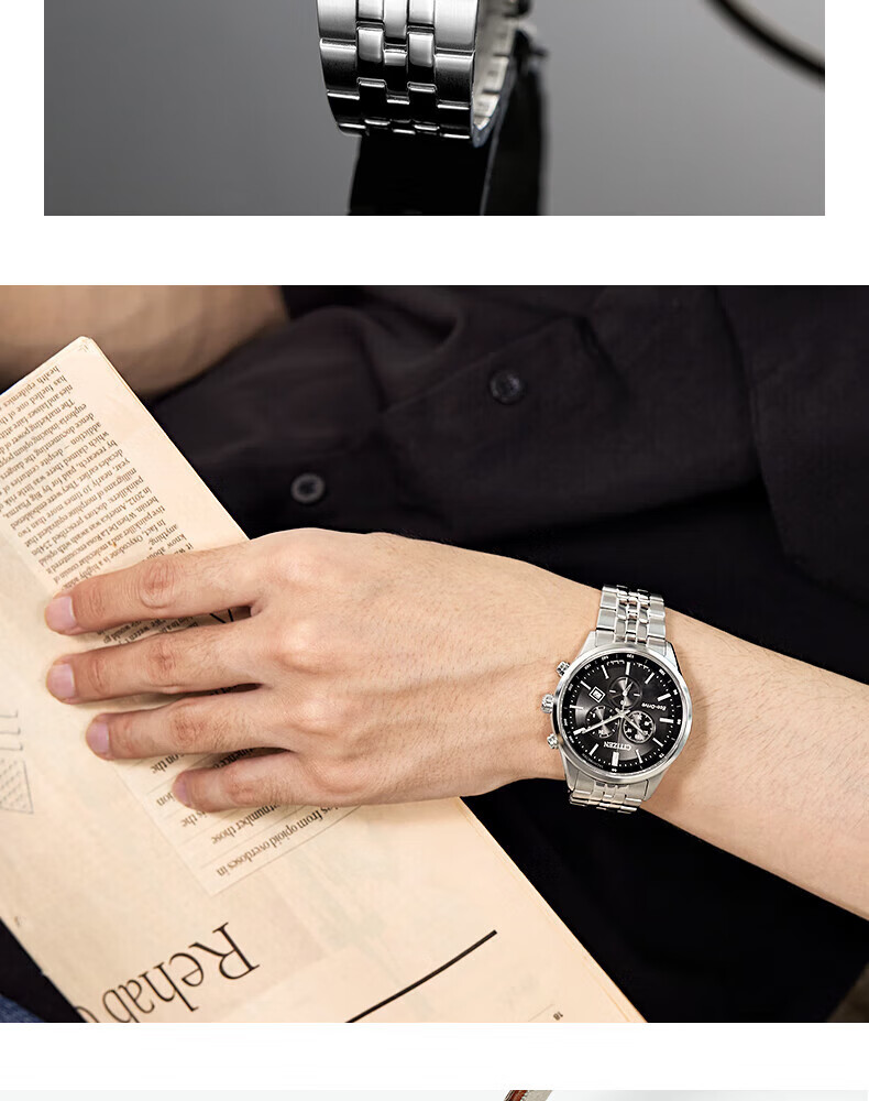 西铁城(CITIZEN)三眼计时防水光动能腕表商务运动休闲钢带/皮带男士手表 新款三眼蓝盘钢带AT2570-56L