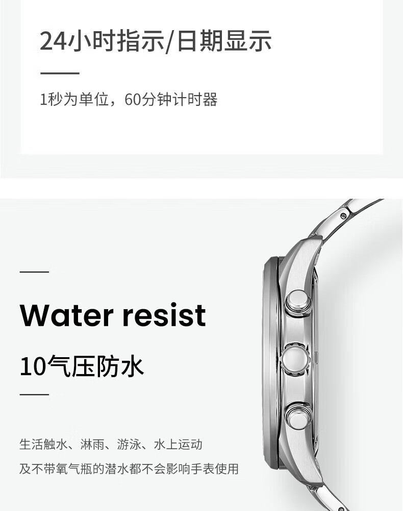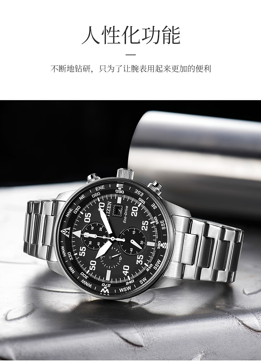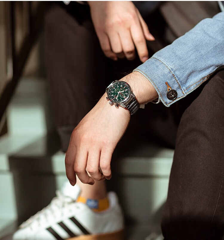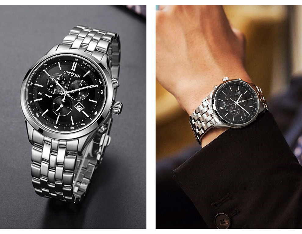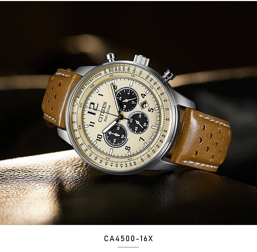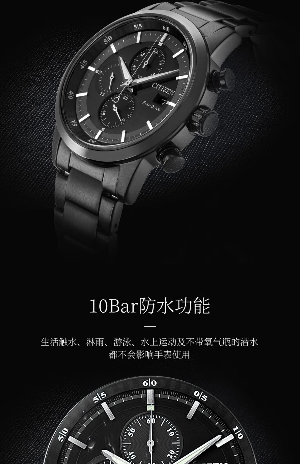 西铁城(CITIZEN)三眼计时防水光动能腕表商务运动休闲钢带/皮带男士手表 新款三眼蓝盘钢带AT2570-56L
