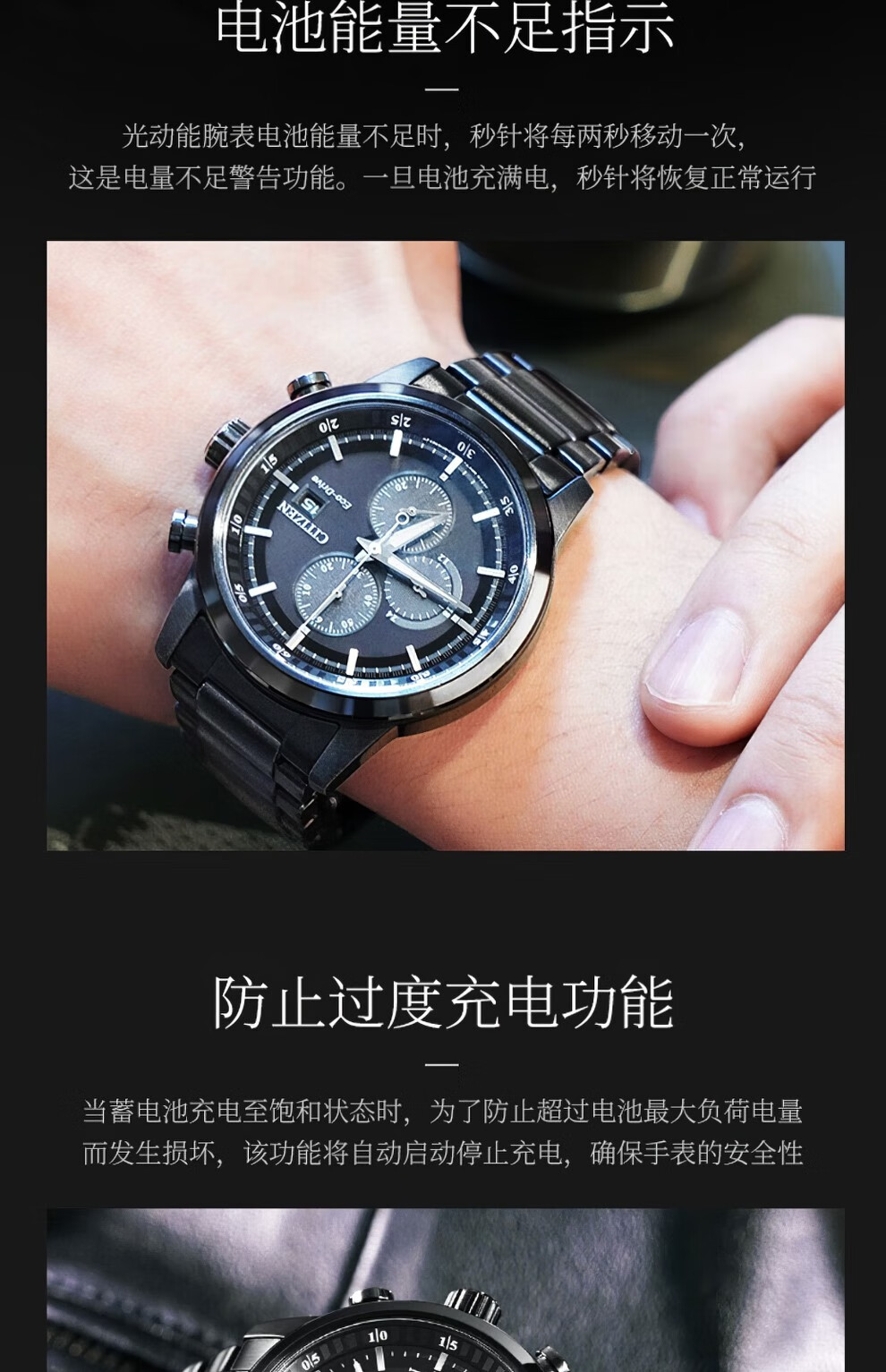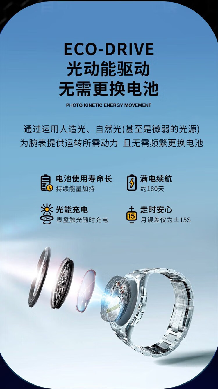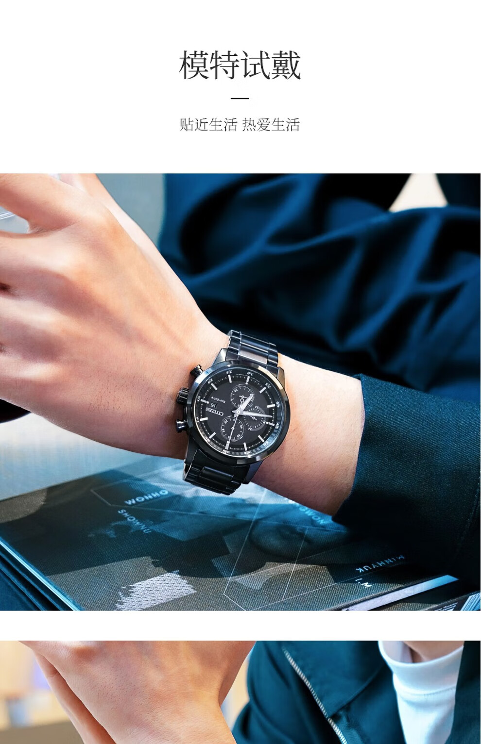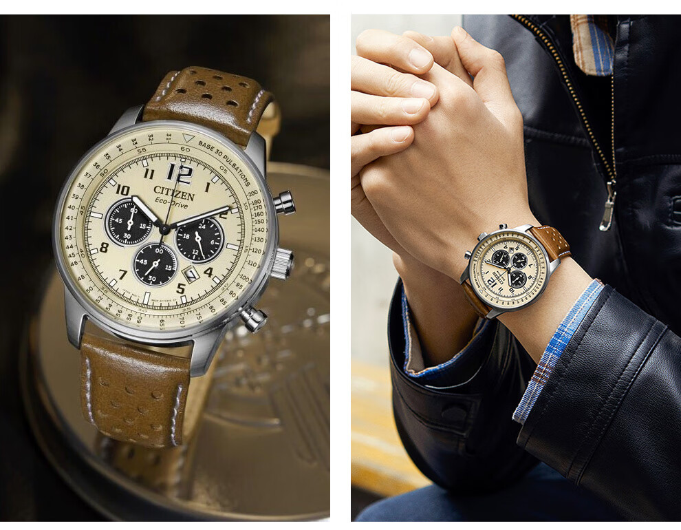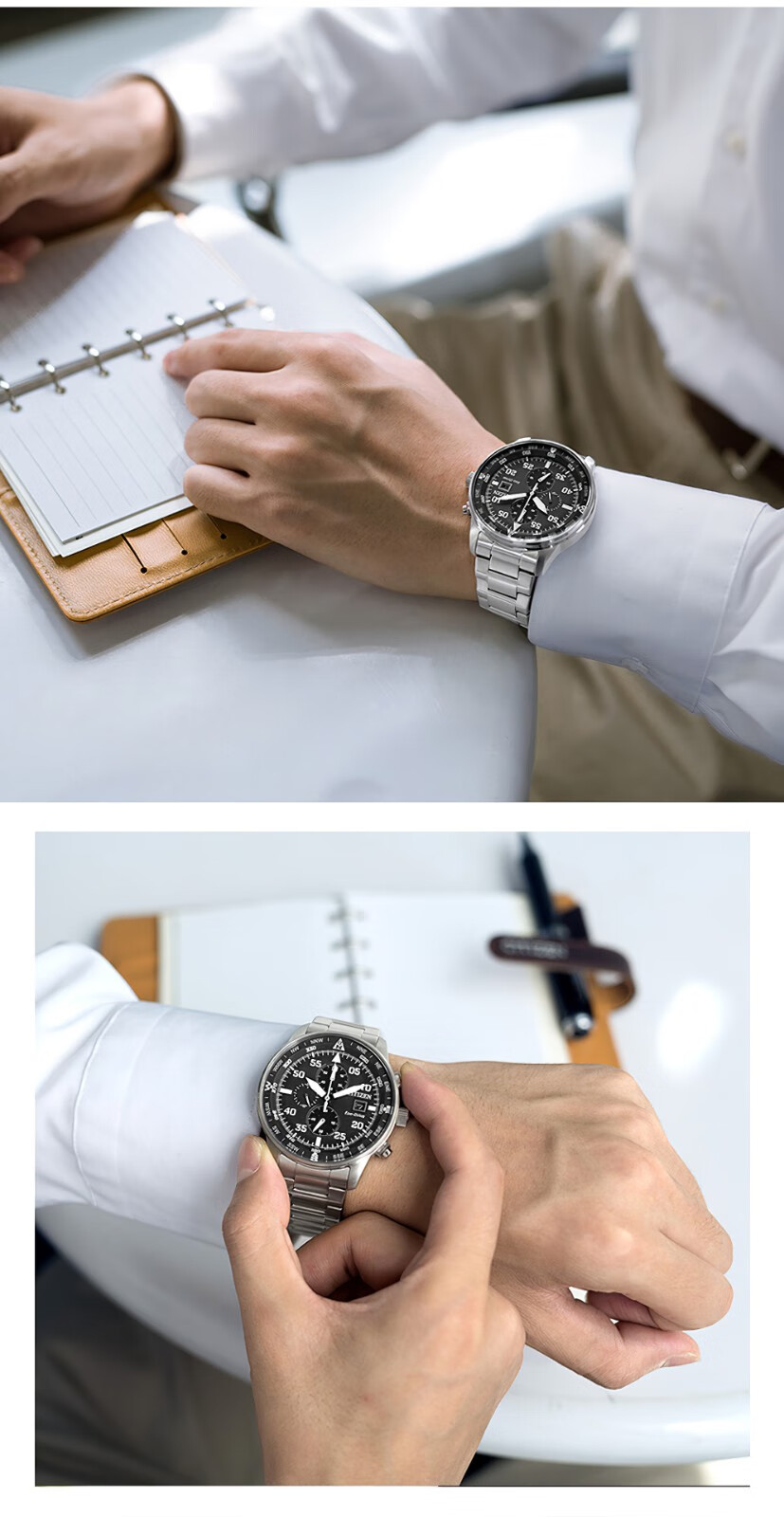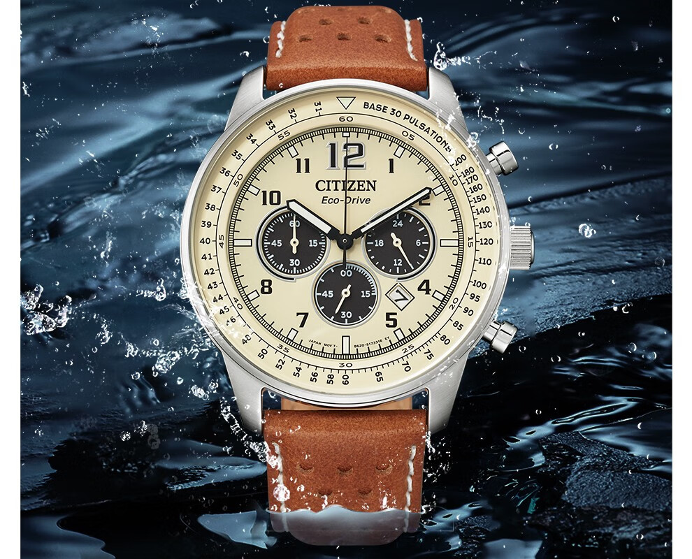 西铁城(CITIZEN)三眼计时防水光动能腕表商务运动休闲钢带/皮带男士手表 新款三眼蓝盘钢带AT2570-56L