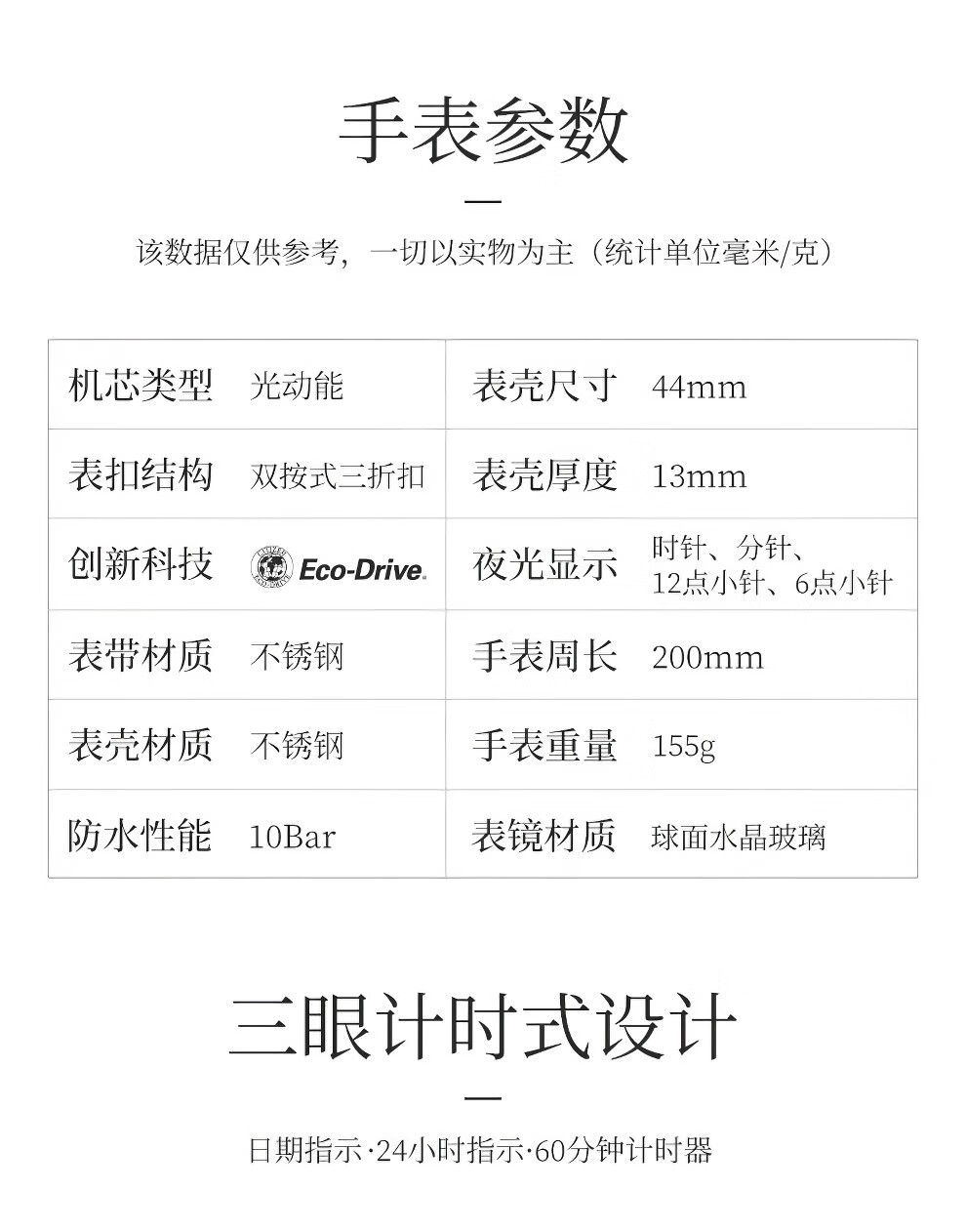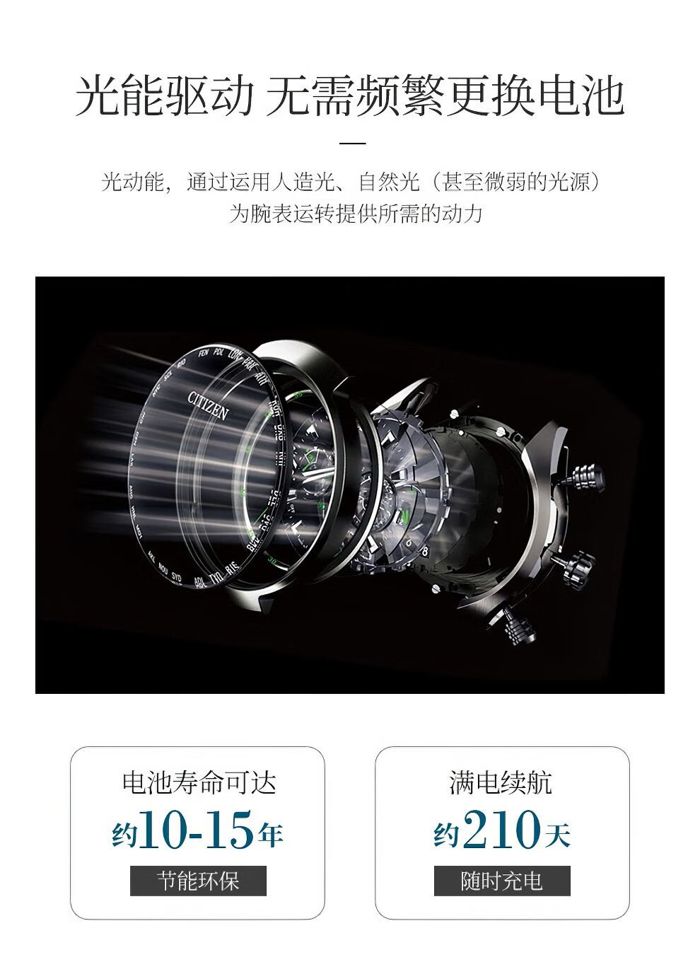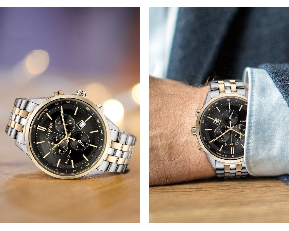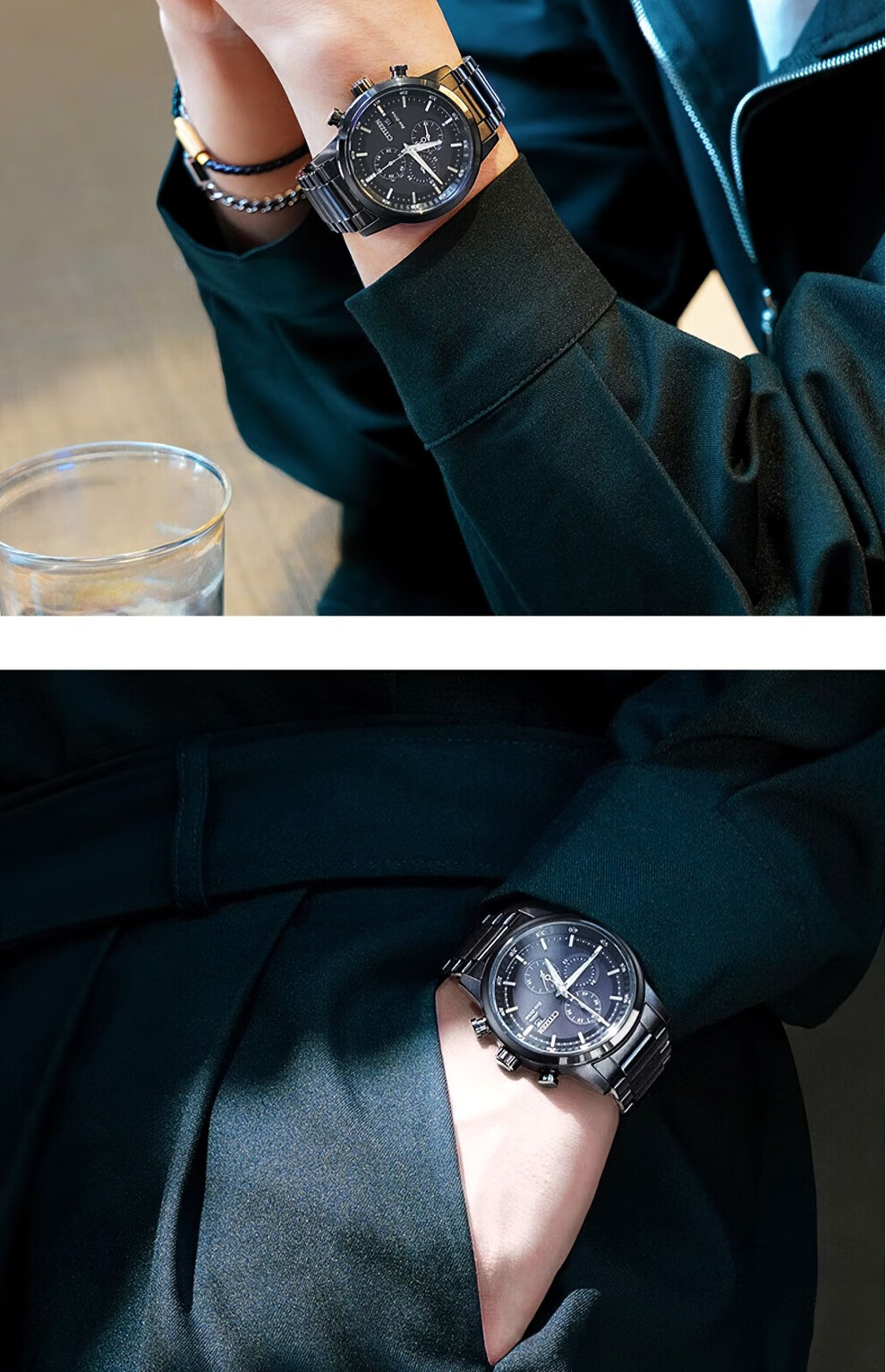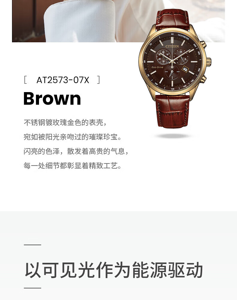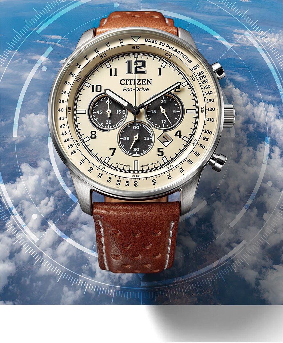 西铁城(CITIZEN)三眼计时防水光动能腕表商务运动休闲钢带/皮带男士手表 新款三眼蓝盘钢带AT2570-56L