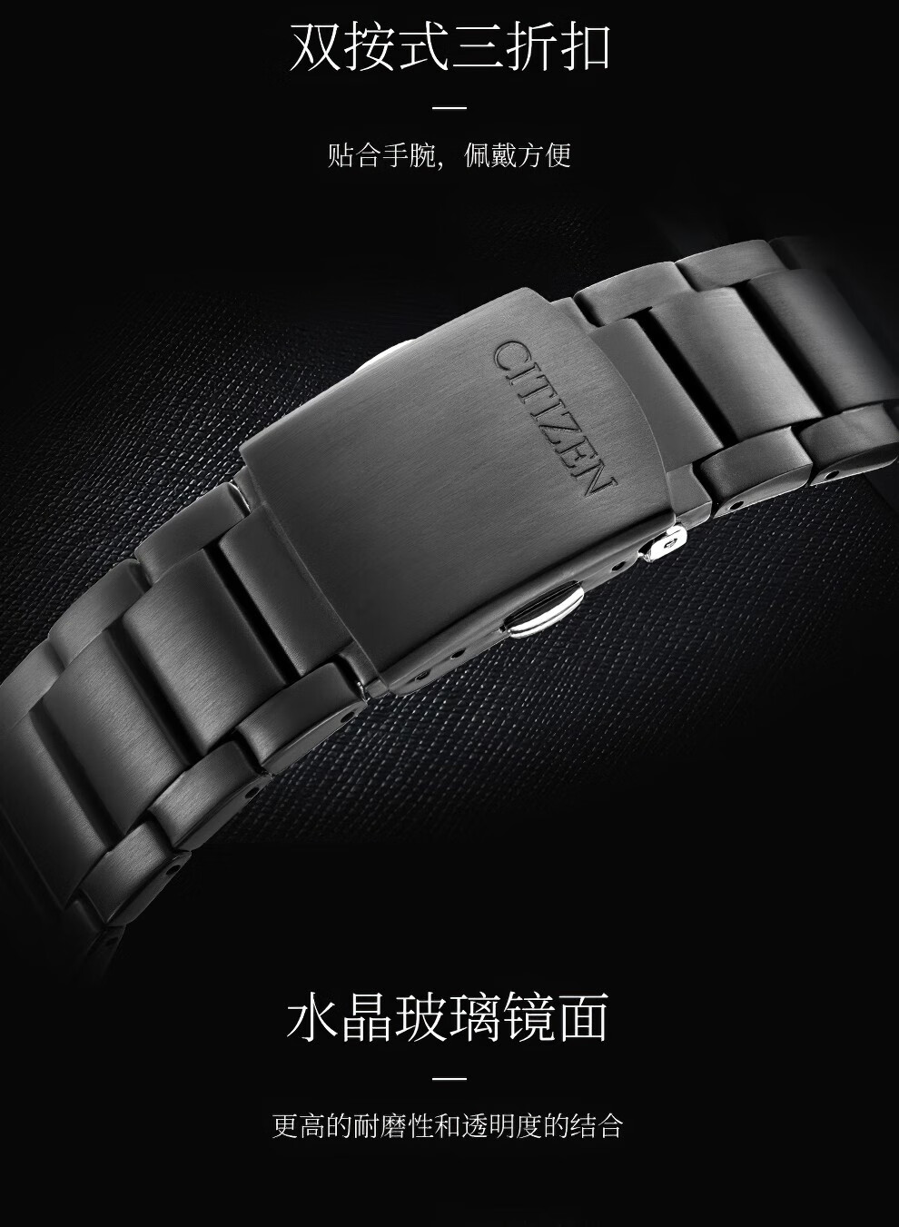 西铁城表带鳄鱼皮手表带男真皮光动能/蓝天使系列机械真皮适配链 黑带+银蝴蝶扣 配送工具针
