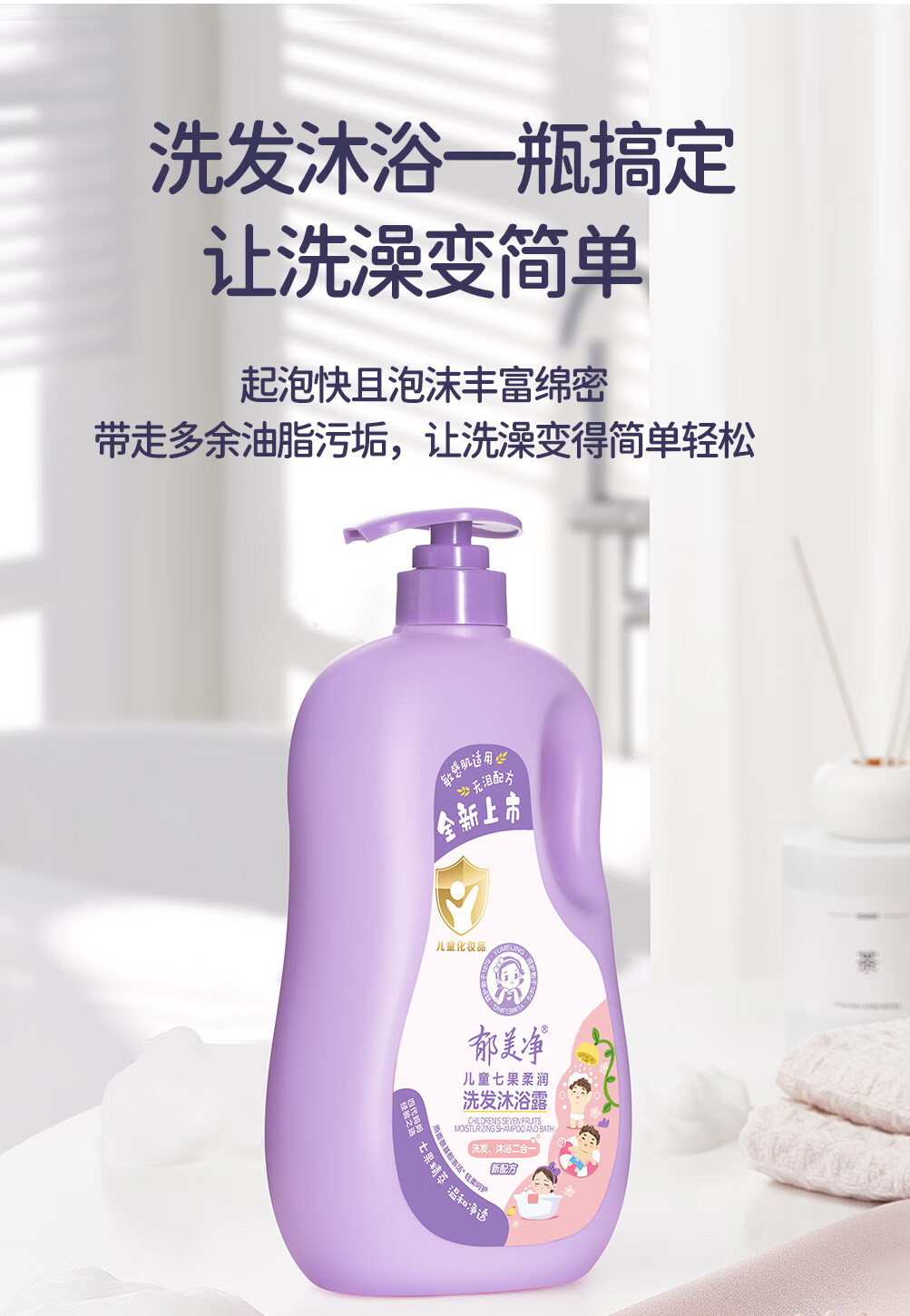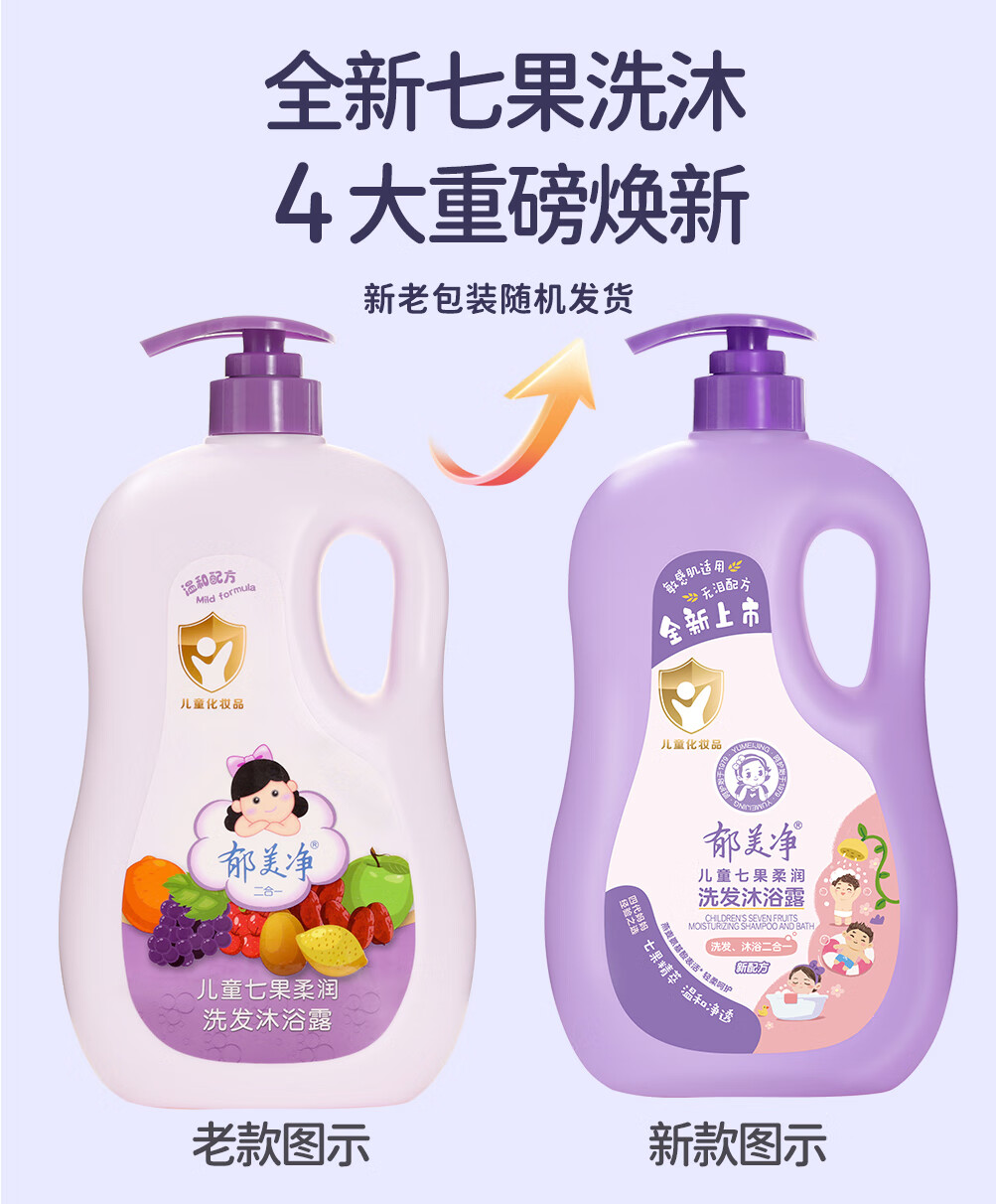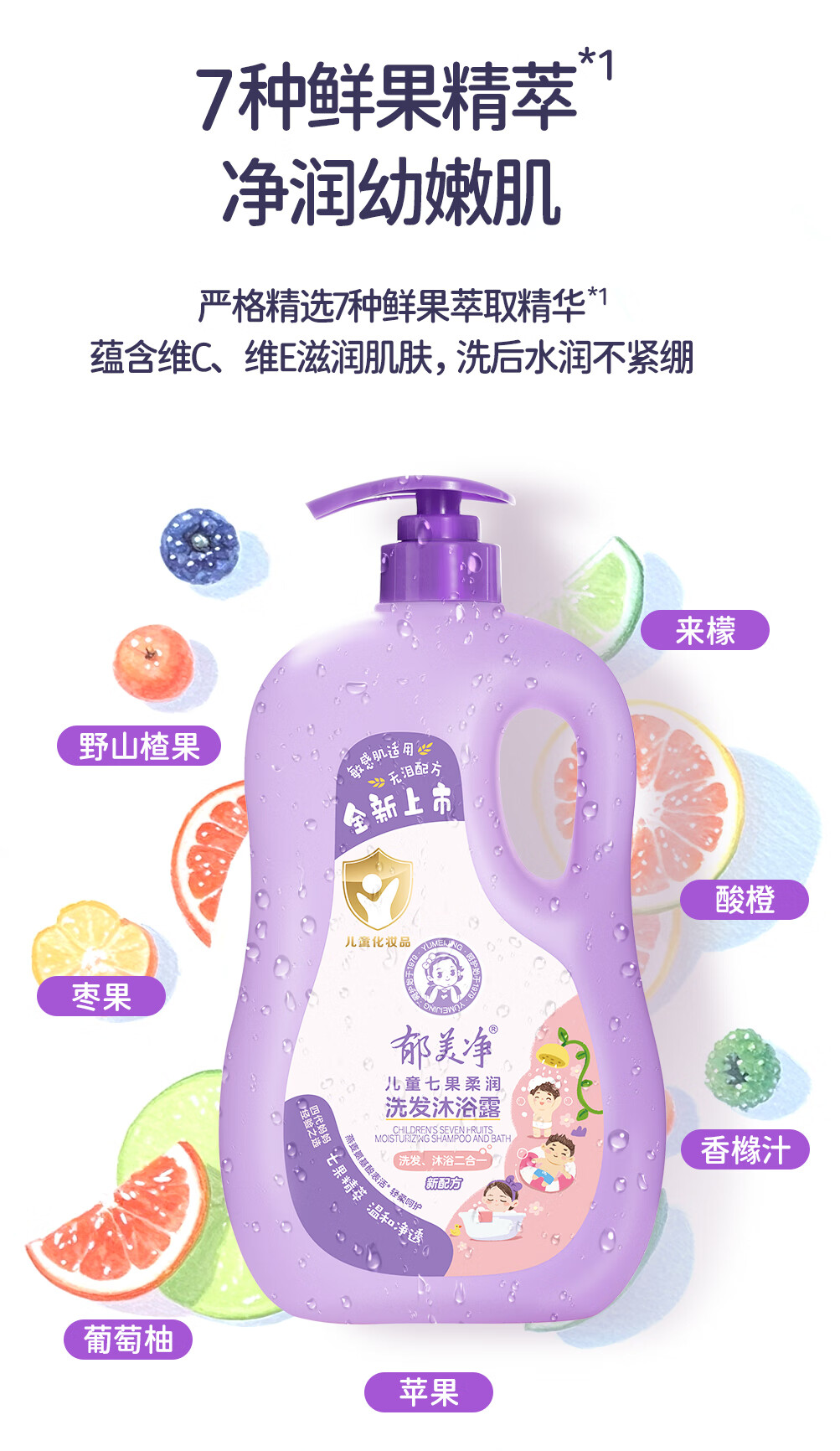 郁美净鲜奶七果儿童沐浴露洗发水二合一宝宝沐浴新老包装随机发货1kg