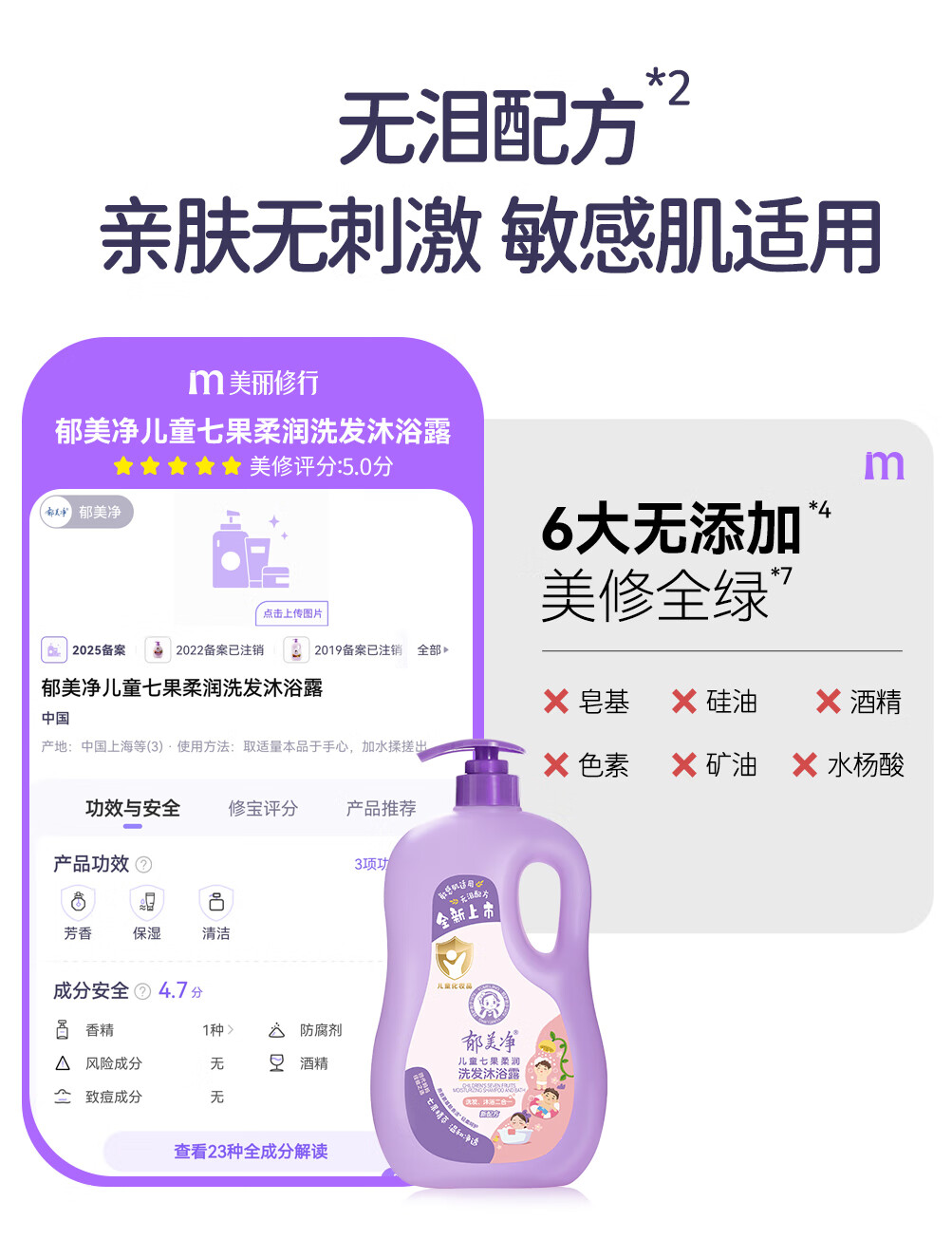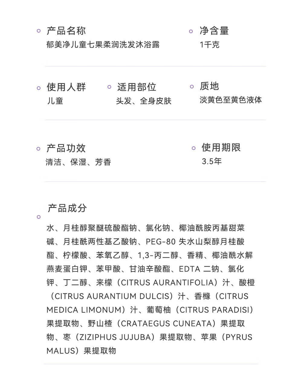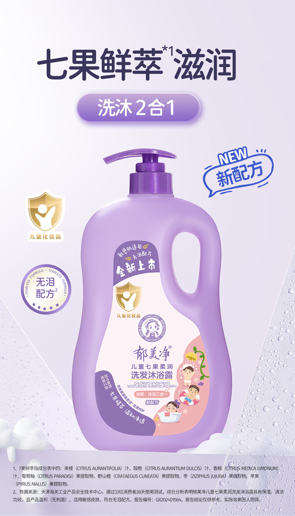 郁美净鲜奶七果儿童沐浴露洗发水二合一宝宝沐浴新老包装随机发货1kg