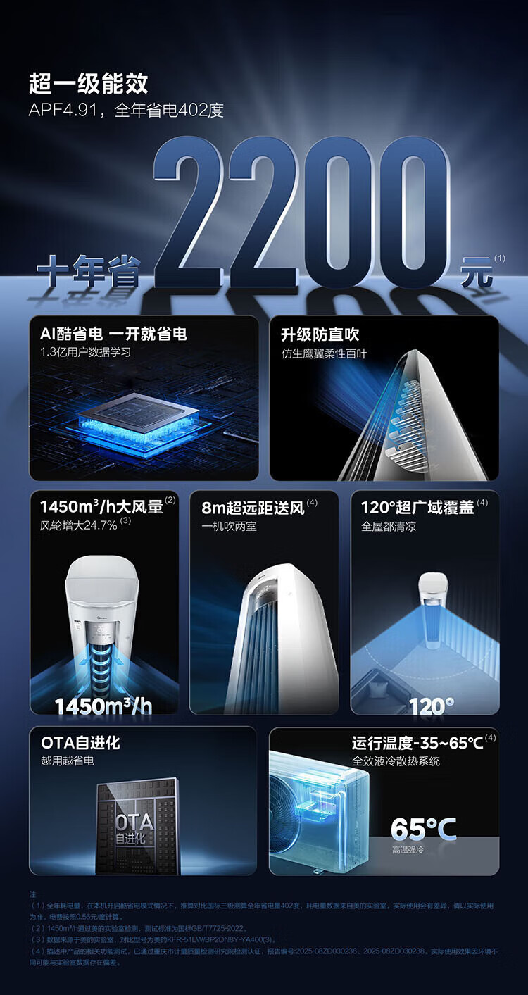 美的空调 酷省电Ultra 新一级能效 AI酷省电技术 客厅立式柜机 变频冷暖 以旧换新 国家补贴 大3匹 一级能效25年新款酷省电Ultra