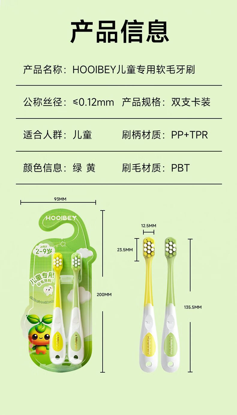 禾贝(HOOLBEY)儿童牙刷儿童2-3-6-9岁口腔清洁软毛防滑手柄宝宝牙刷2支装