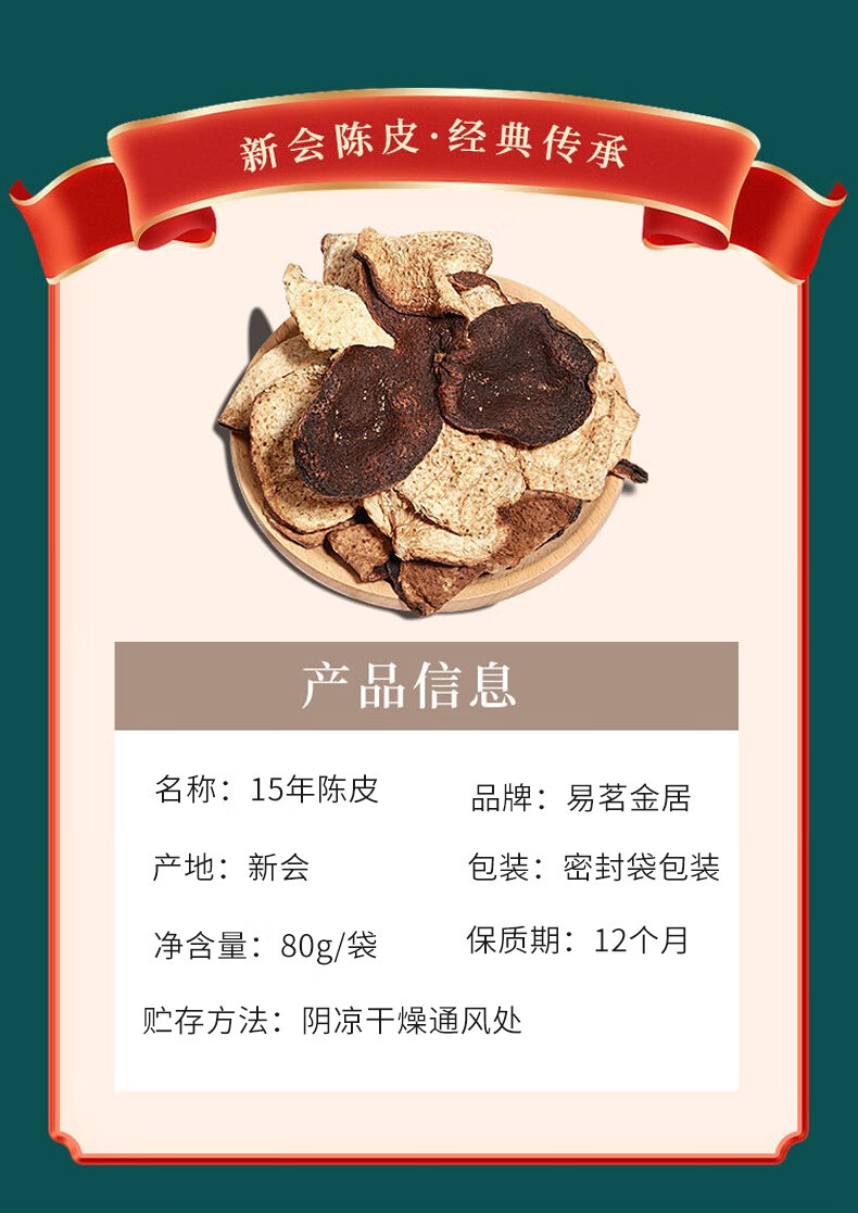 易茗金居 广东15年老陈皮 健康养生 日常下午茶 泡饮 25g*3袋