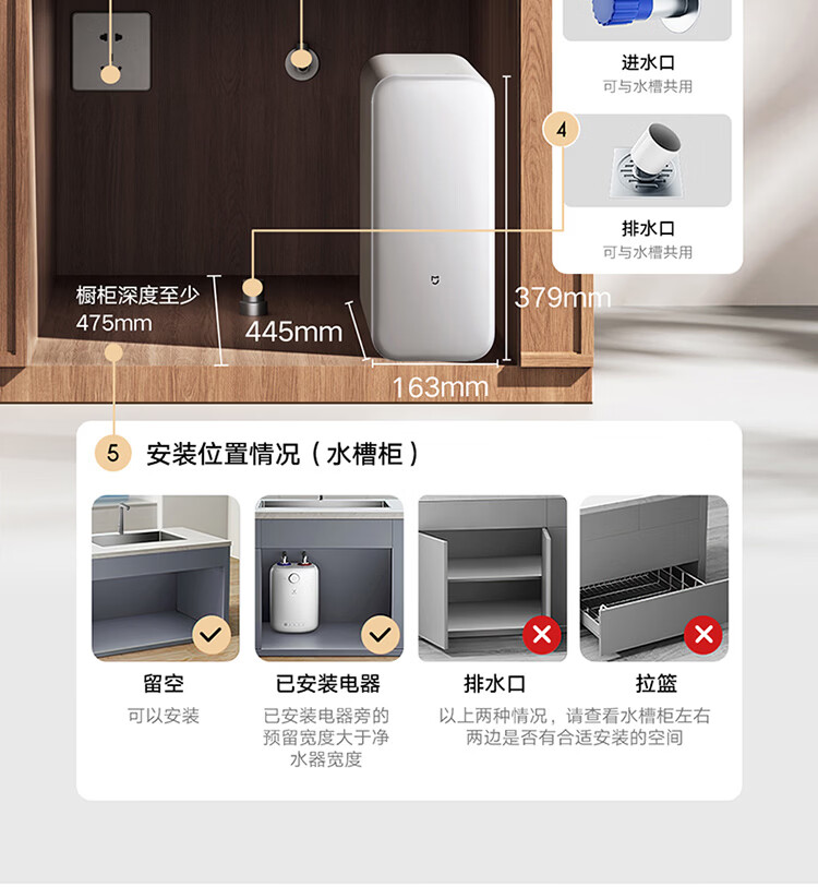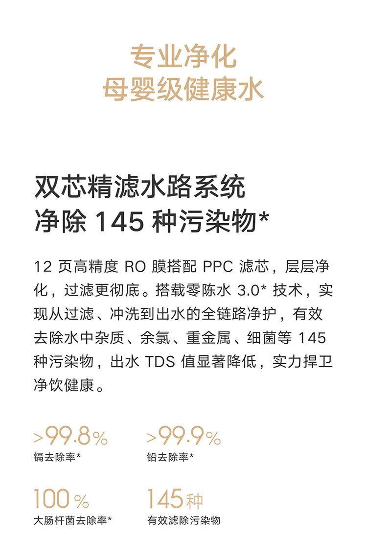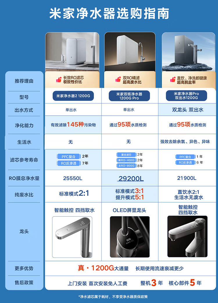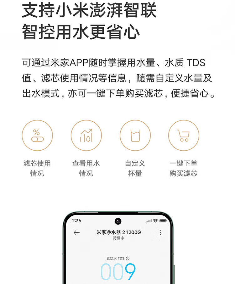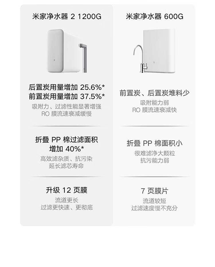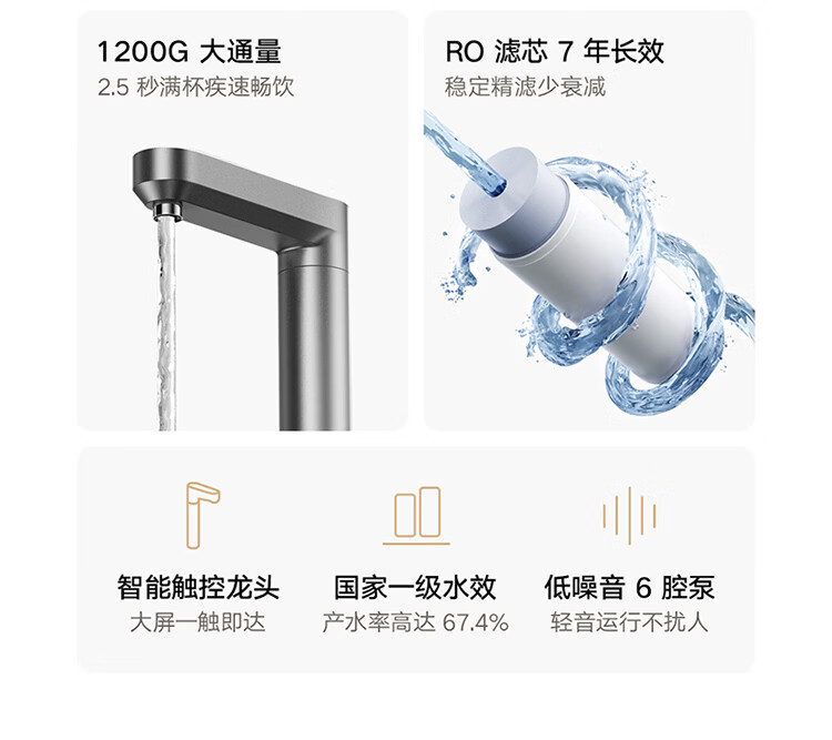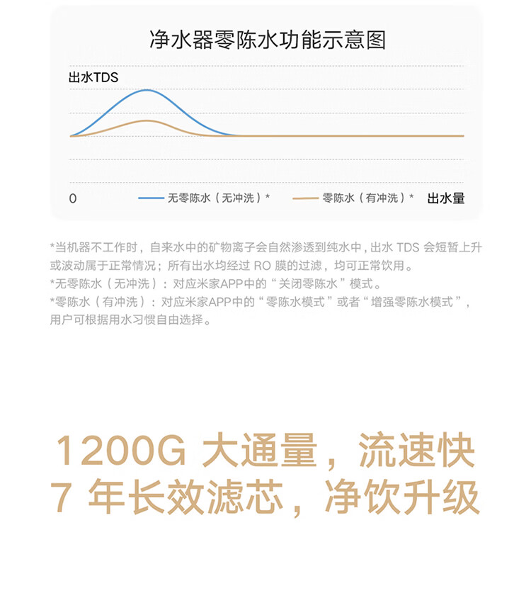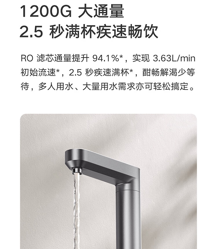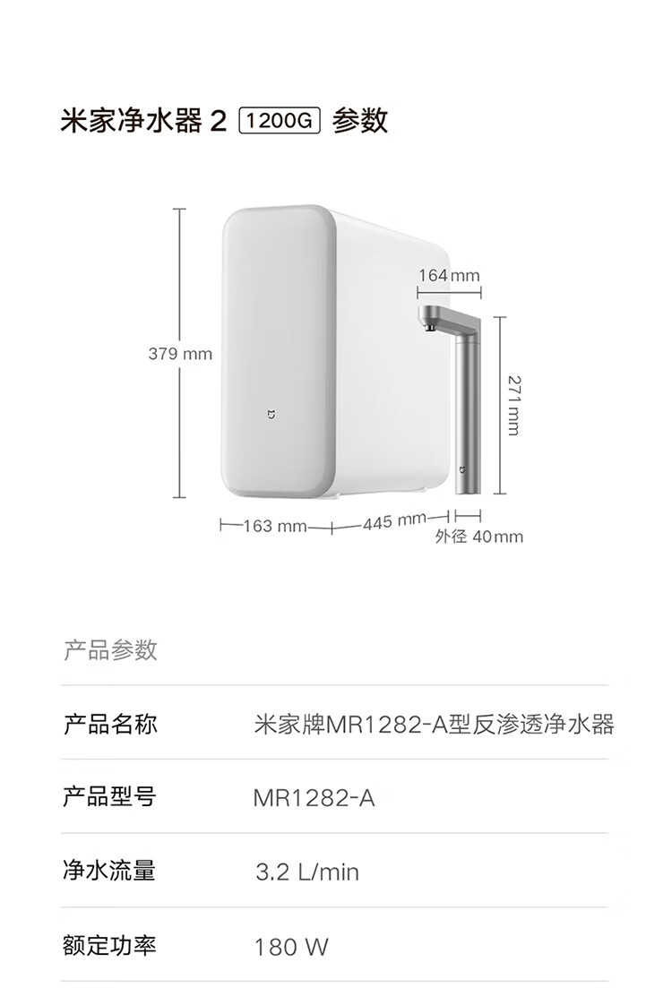 米家新品上市小米净水器2 1200G 7年长效RO 母婴级直饮水滤芯145种污染物 家用厨房台下净水机MR1282-A