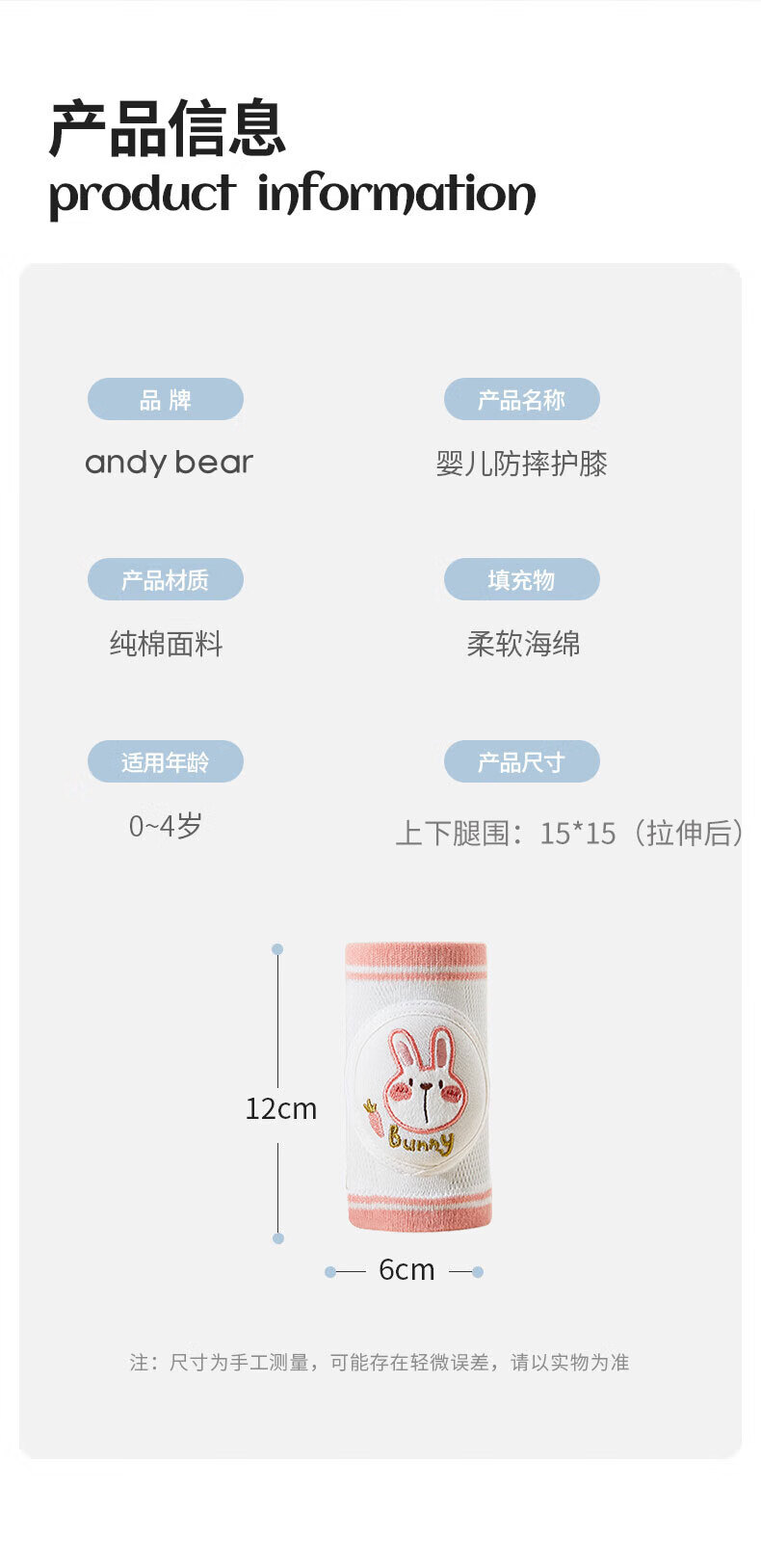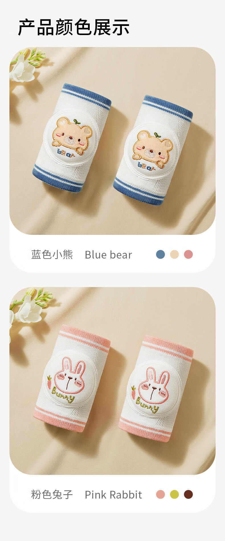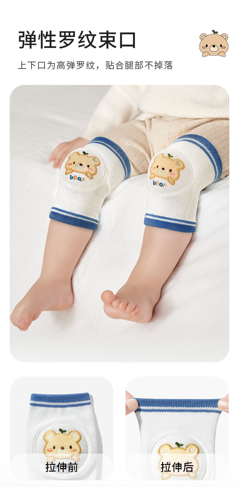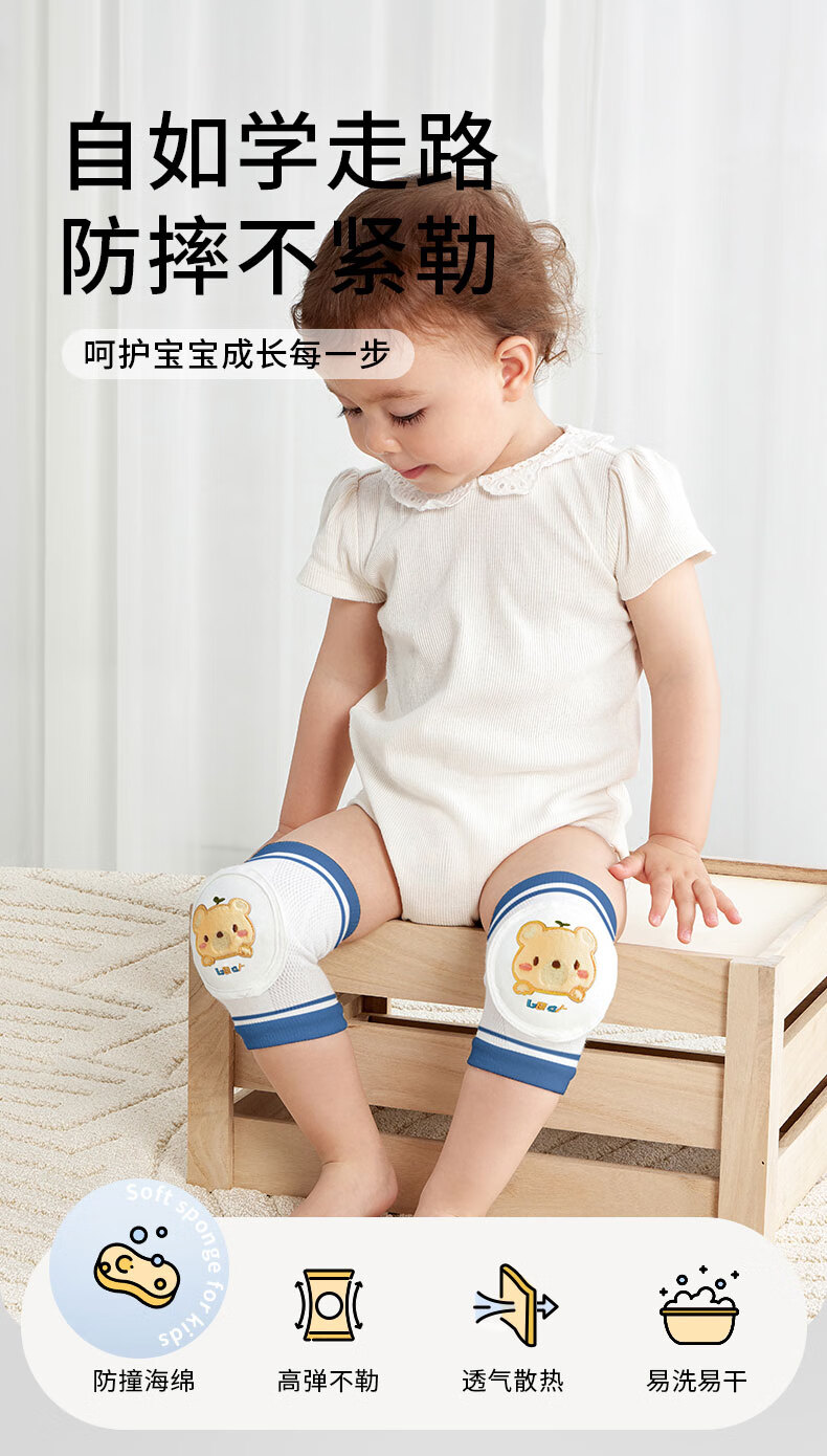 爱贝迪拉 婴儿护膝透气宝宝爬行护具儿童防摔学步膝盖学爬保护套垫