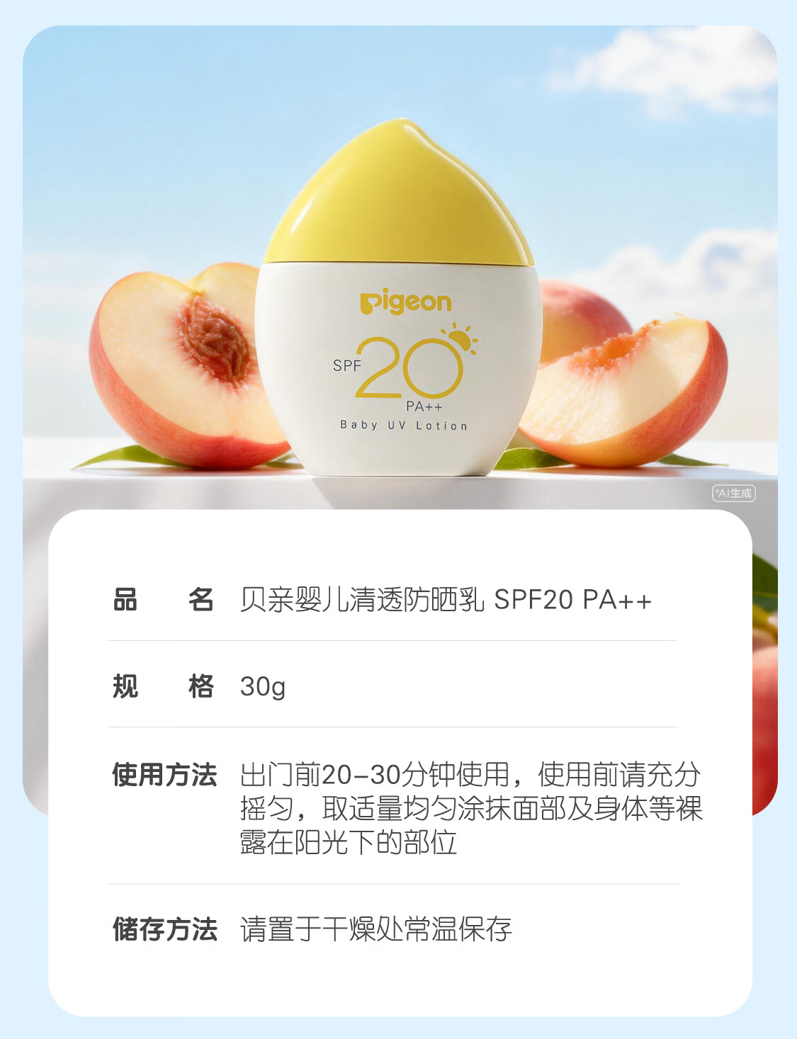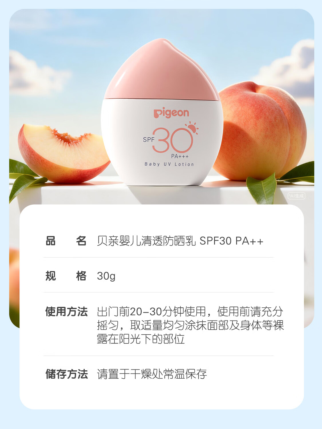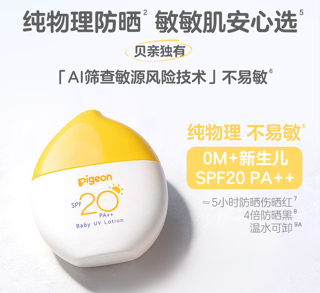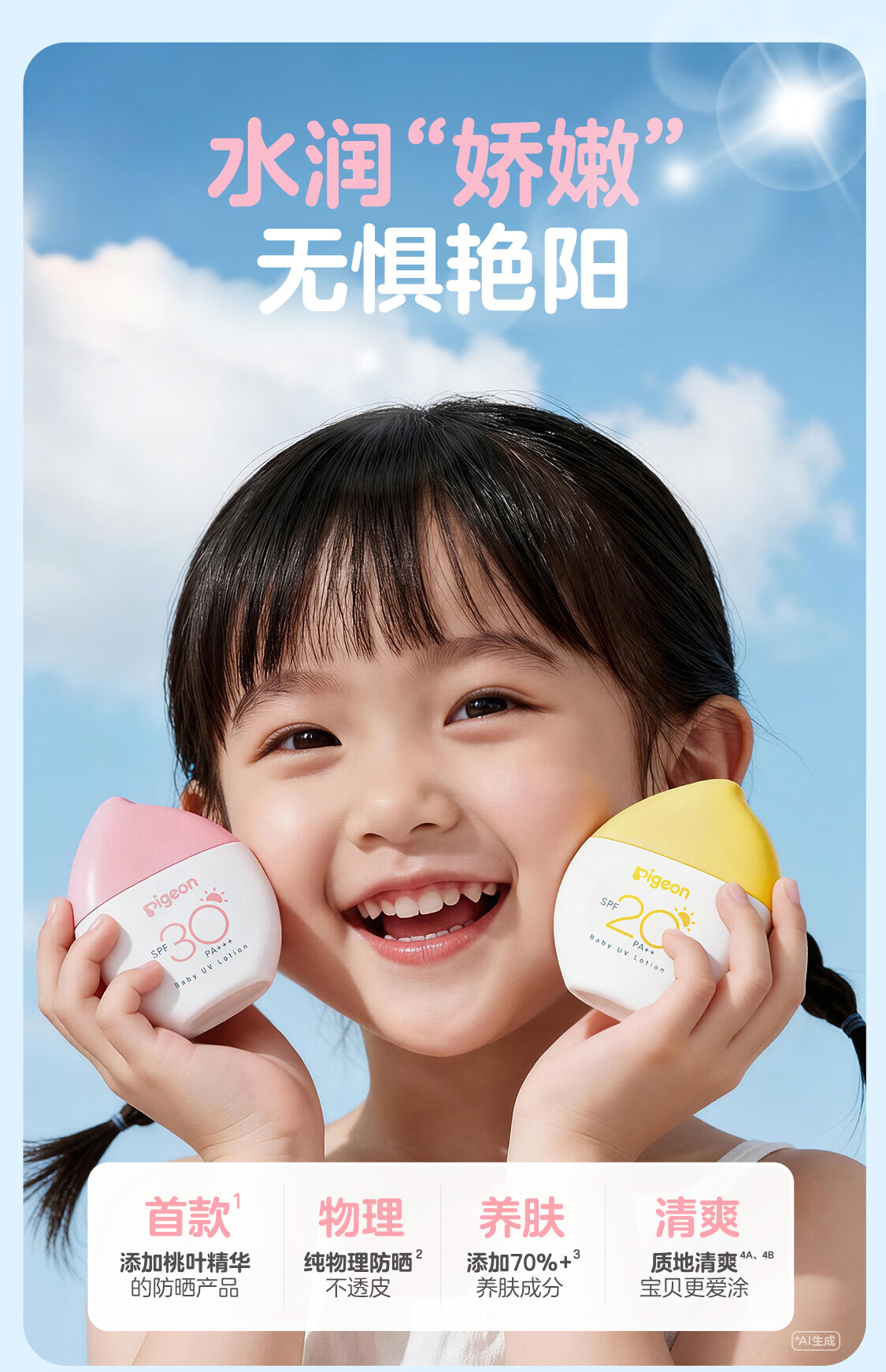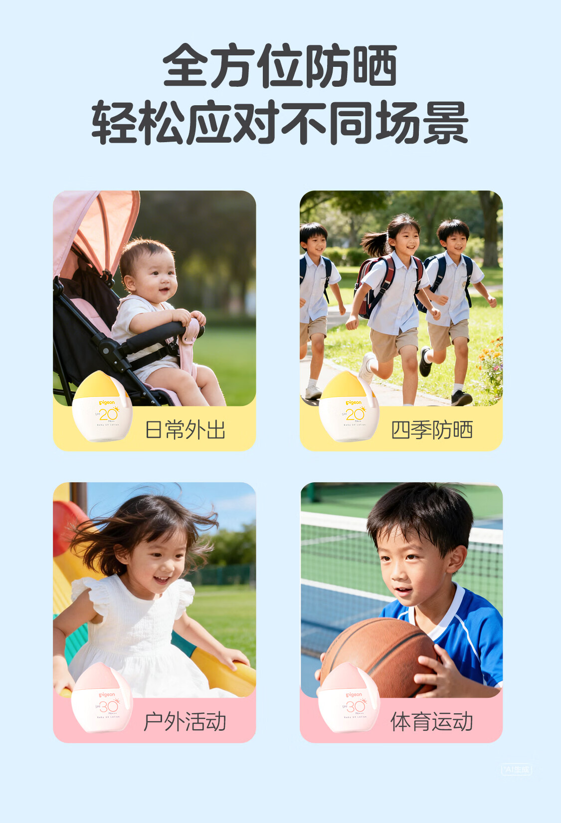 贝亲(Pigeon)儿童防晒霜隔离紫外线专用婴儿防晒敏肌专用霜物理防晒SPF30+ 30g