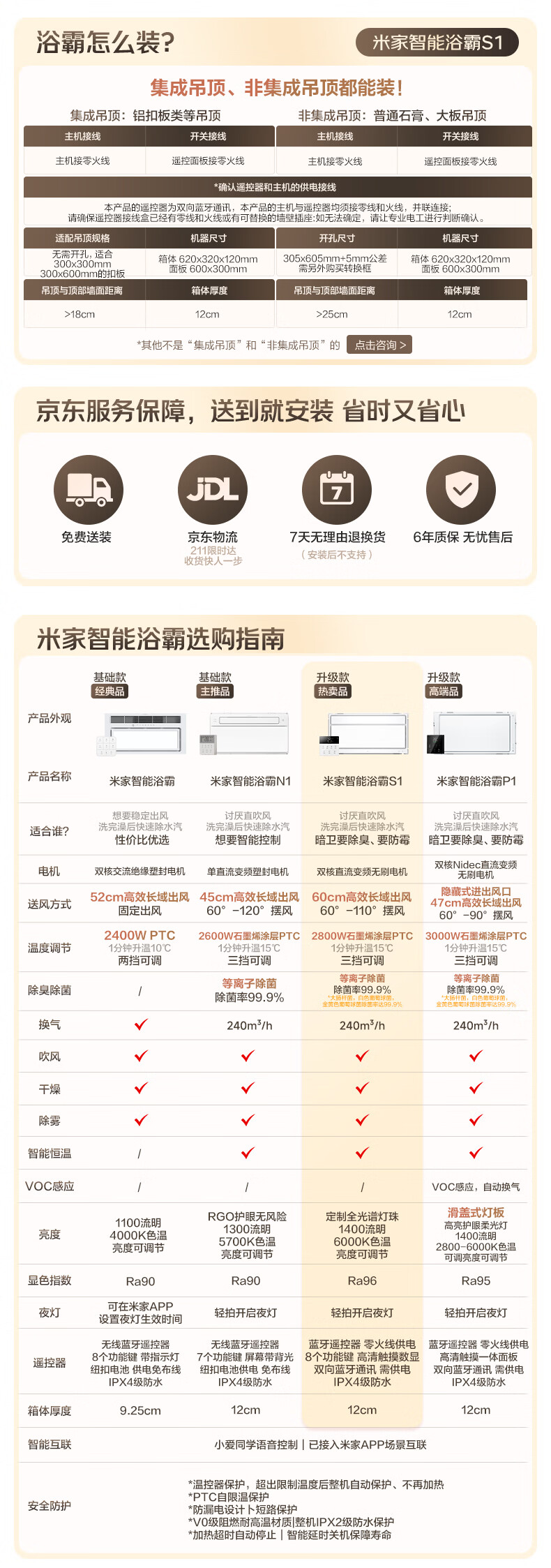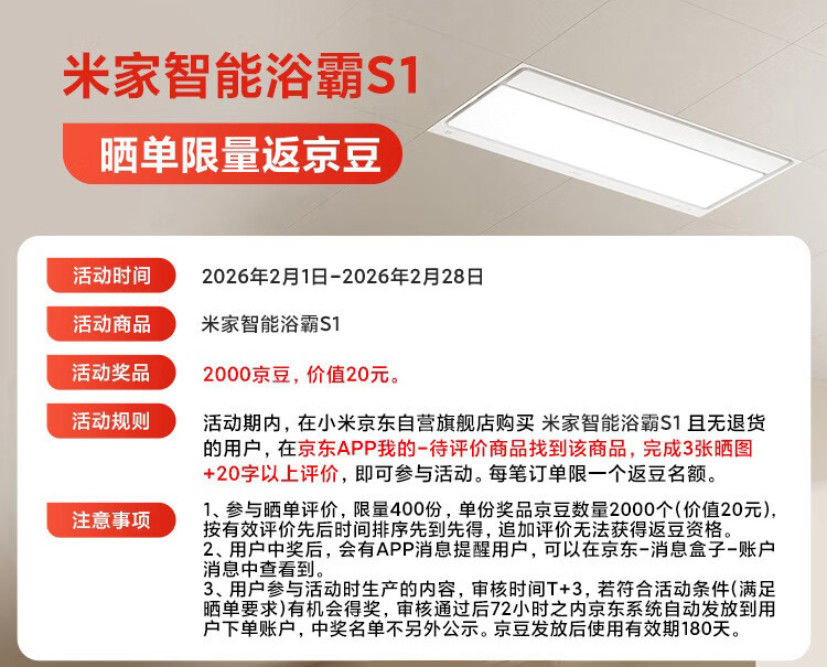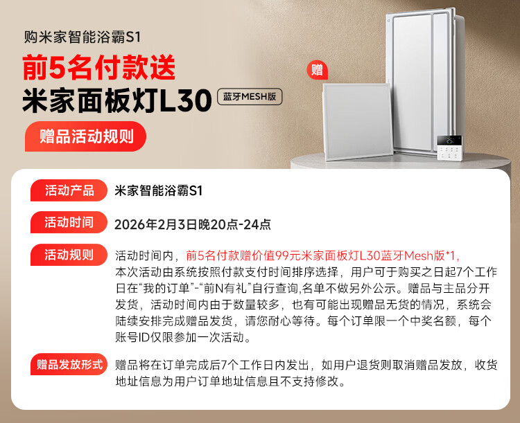 米家智能浴霸双核暖风控温恒温等离子除菌速热照明排气全光谱LED S1