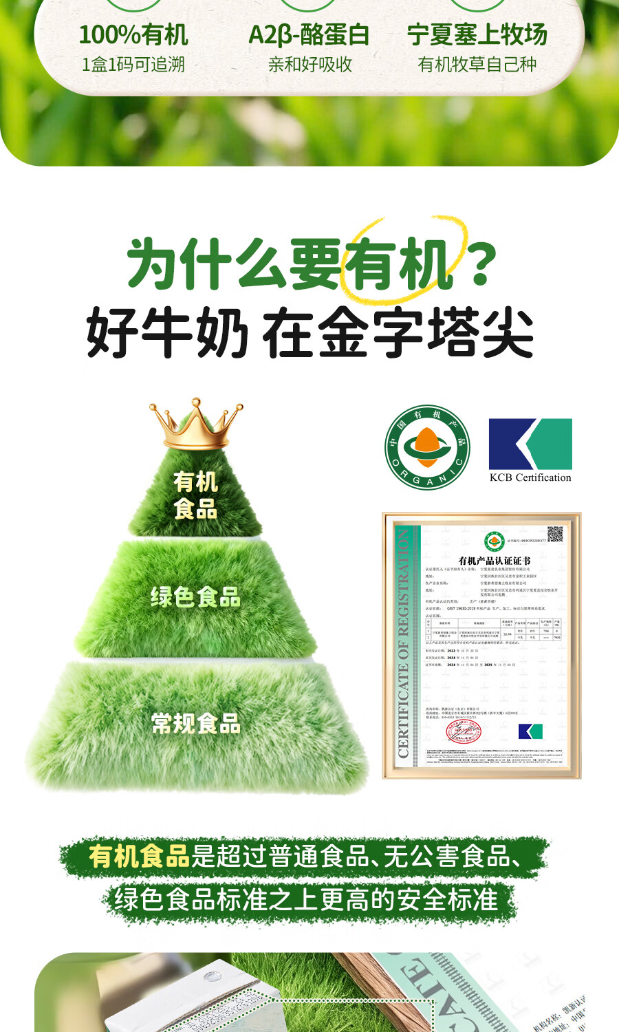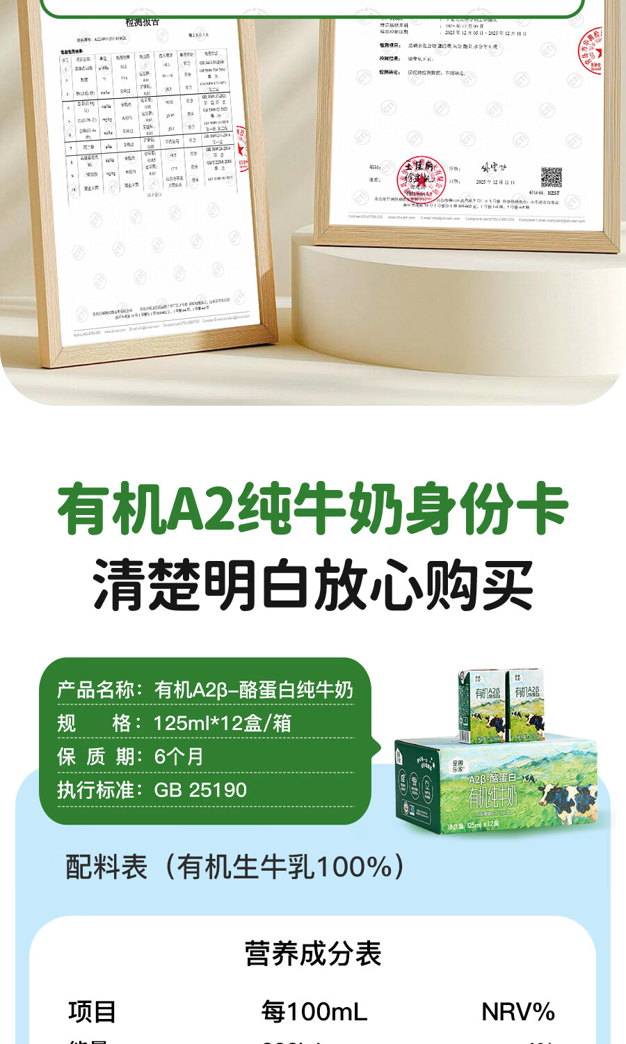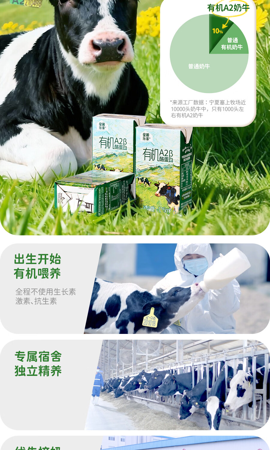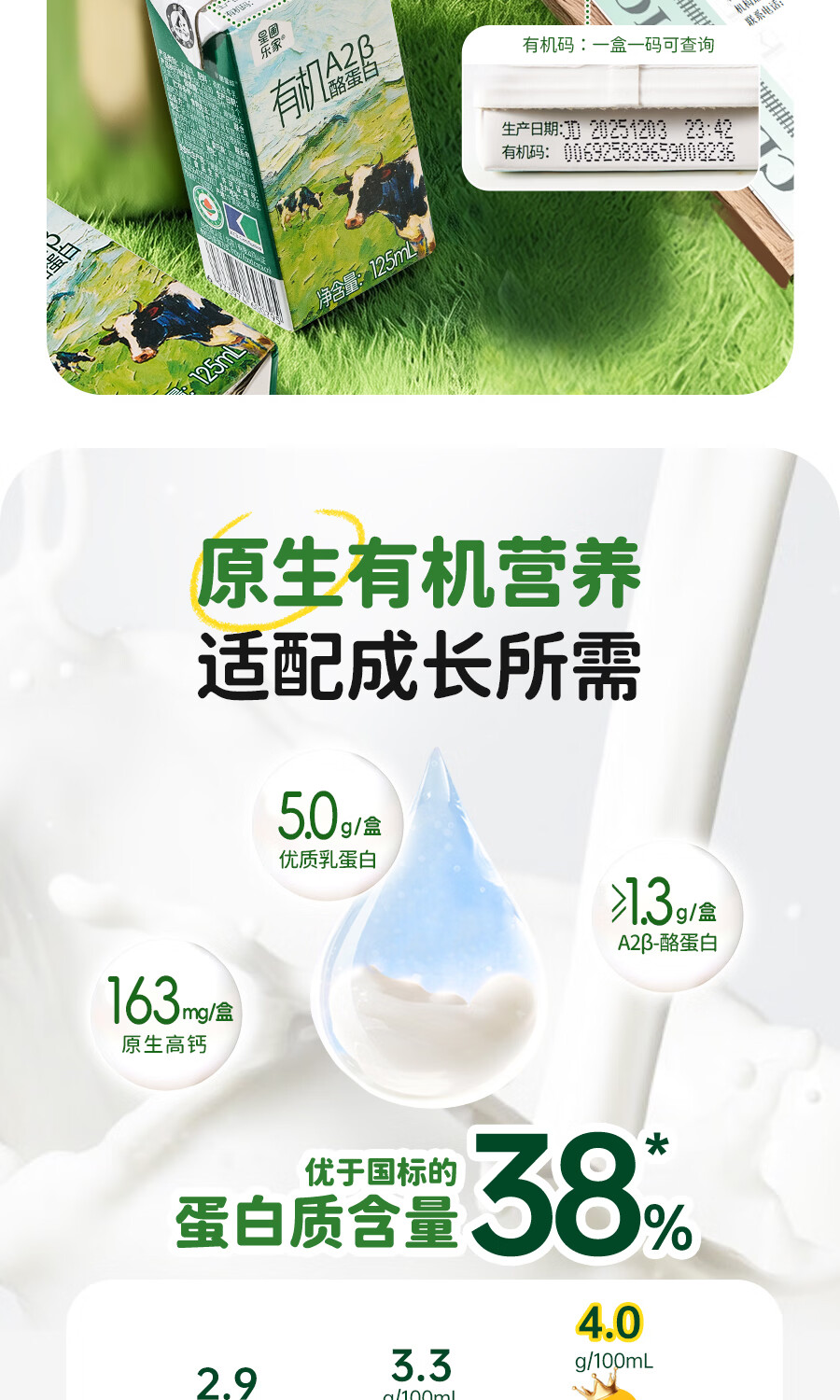 星圃乐家儿童有机A2纯牛奶5.0g优质乳蛋白/盒儿童早餐奶125ml*12盒 有机A2牛奶*2箱(24盒)