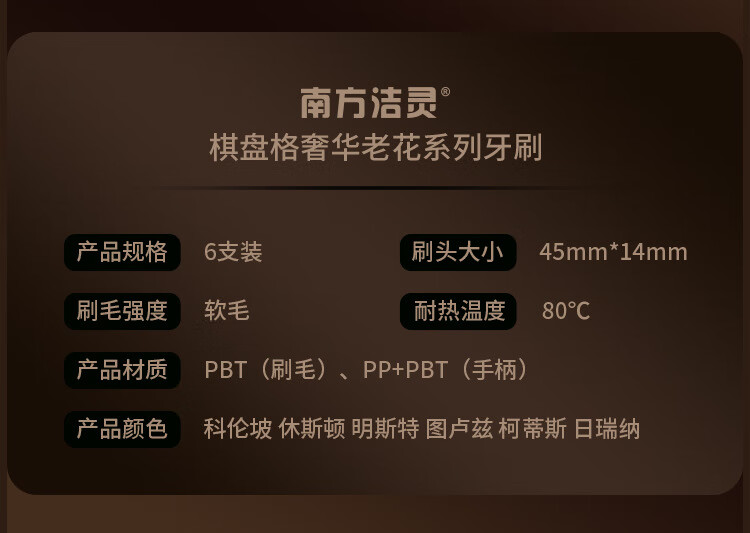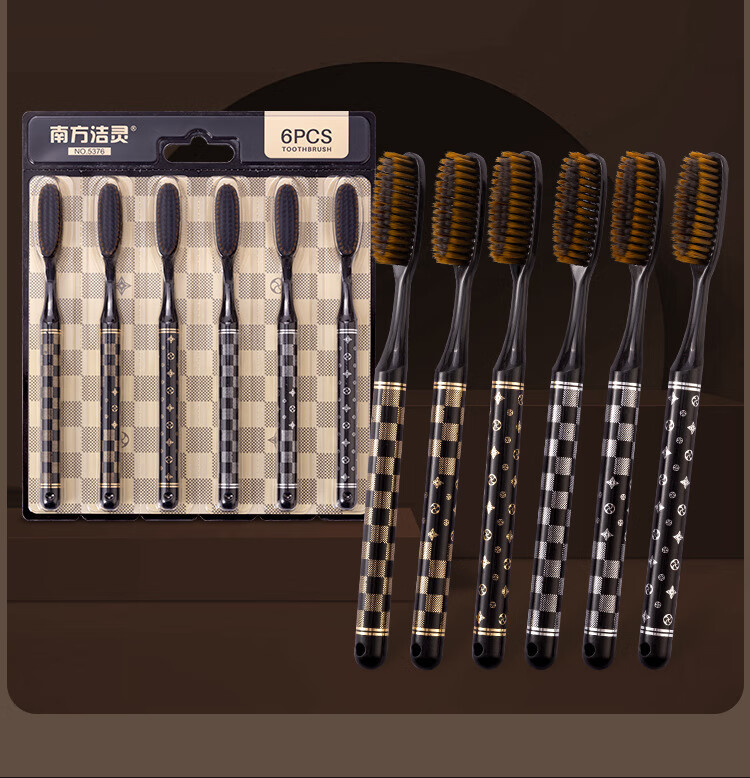 南方洁灵【优选直发】长头牙刷创新洁净加长刷头细丝软毛牙刷家用u型宽头 棋格长头软毛牙刷18支