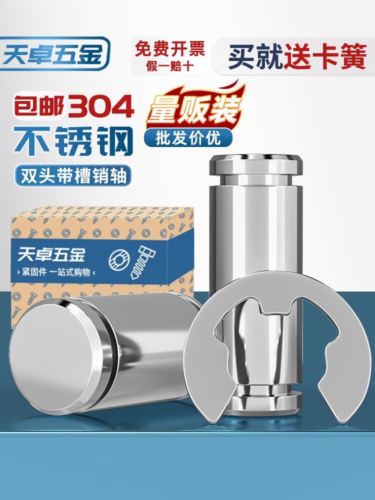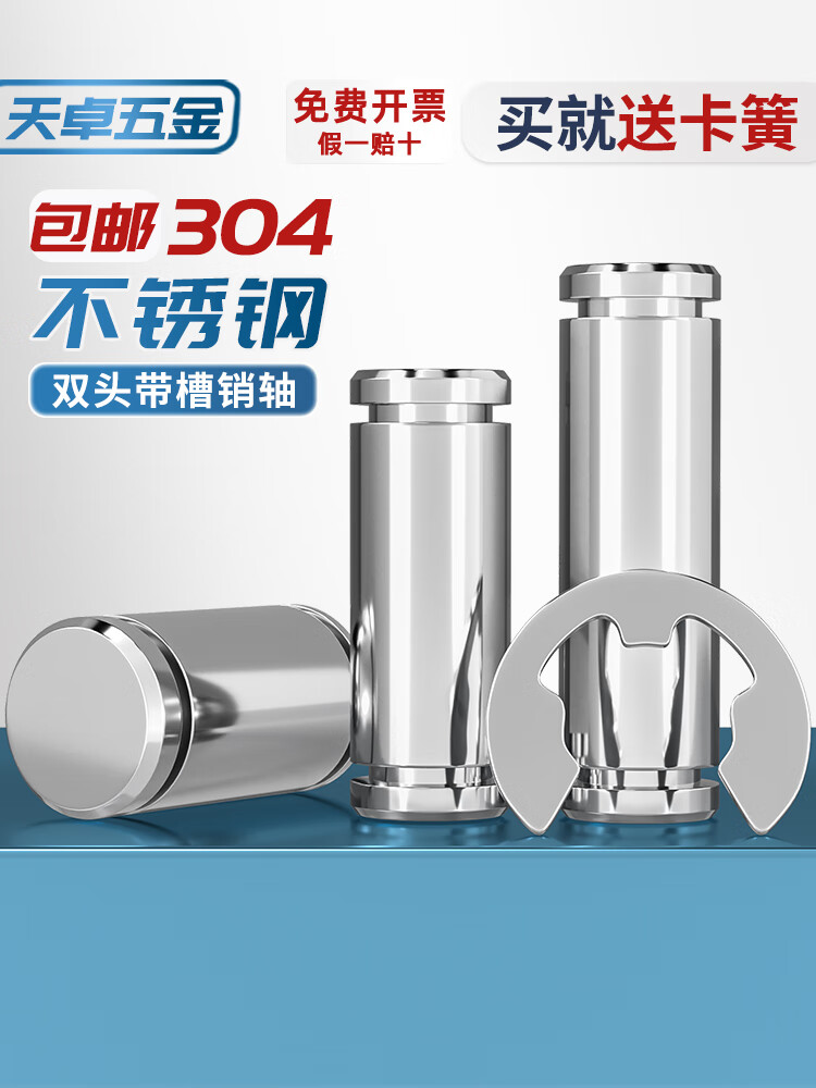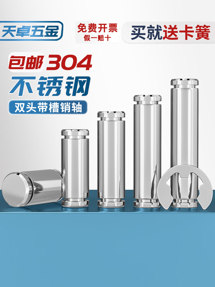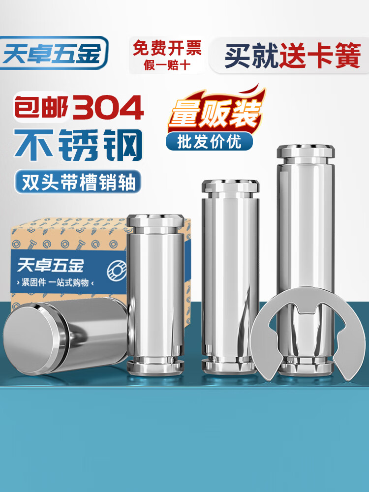 天卓五金304不锈钢带槽销轴两双头卡簧销轴定位圆柱插销钉MM3MM4M5M6M8M12 M3*12-15套